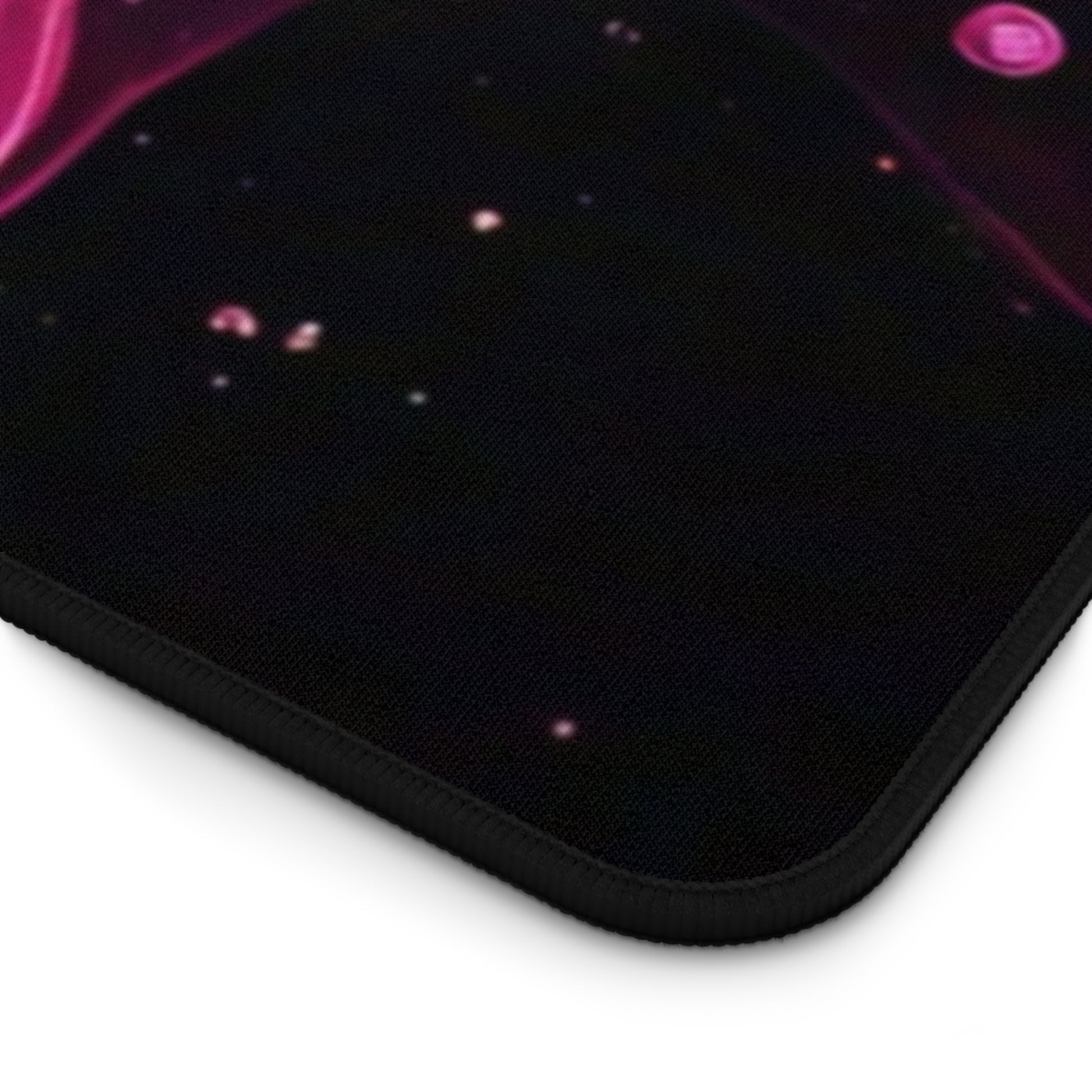 Elevate your workspace with the "Pink Nebula" Desk Mat. This eye-catching desk mat features a mesmerizing design of swirling pinks and blacks, reminiscent of a distant galaxy. Not only does it add a pop of color and personality to your desk, but it also provides a smooth, comfortable surface for your mouse and keyboard. Protect your desk while adding a touch of artistic flair with the Pink Nebula Desk Mat. Perfect for gamers, students, and anyone looking to enhance their work environment.