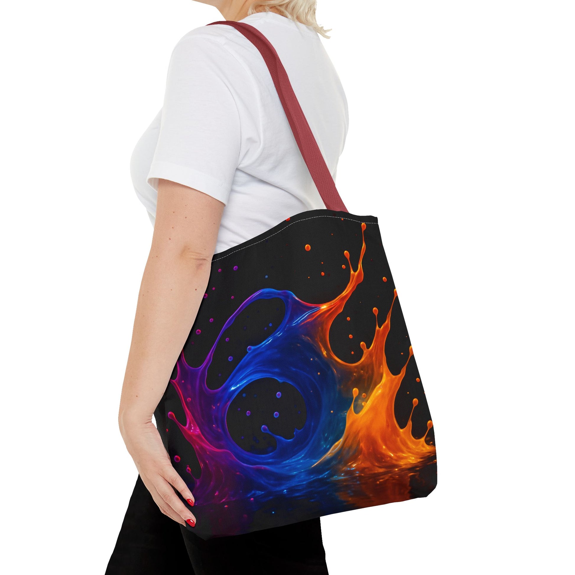 Elemental Fusion Tote Bag, Fire And Water Abstract Art Design, Vibrant Blue And Orange Splash Reusable Tote For Artists, Travel, And Everyday Use