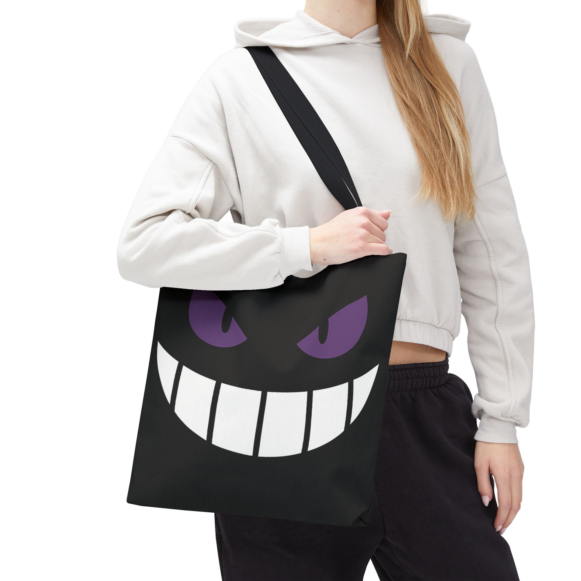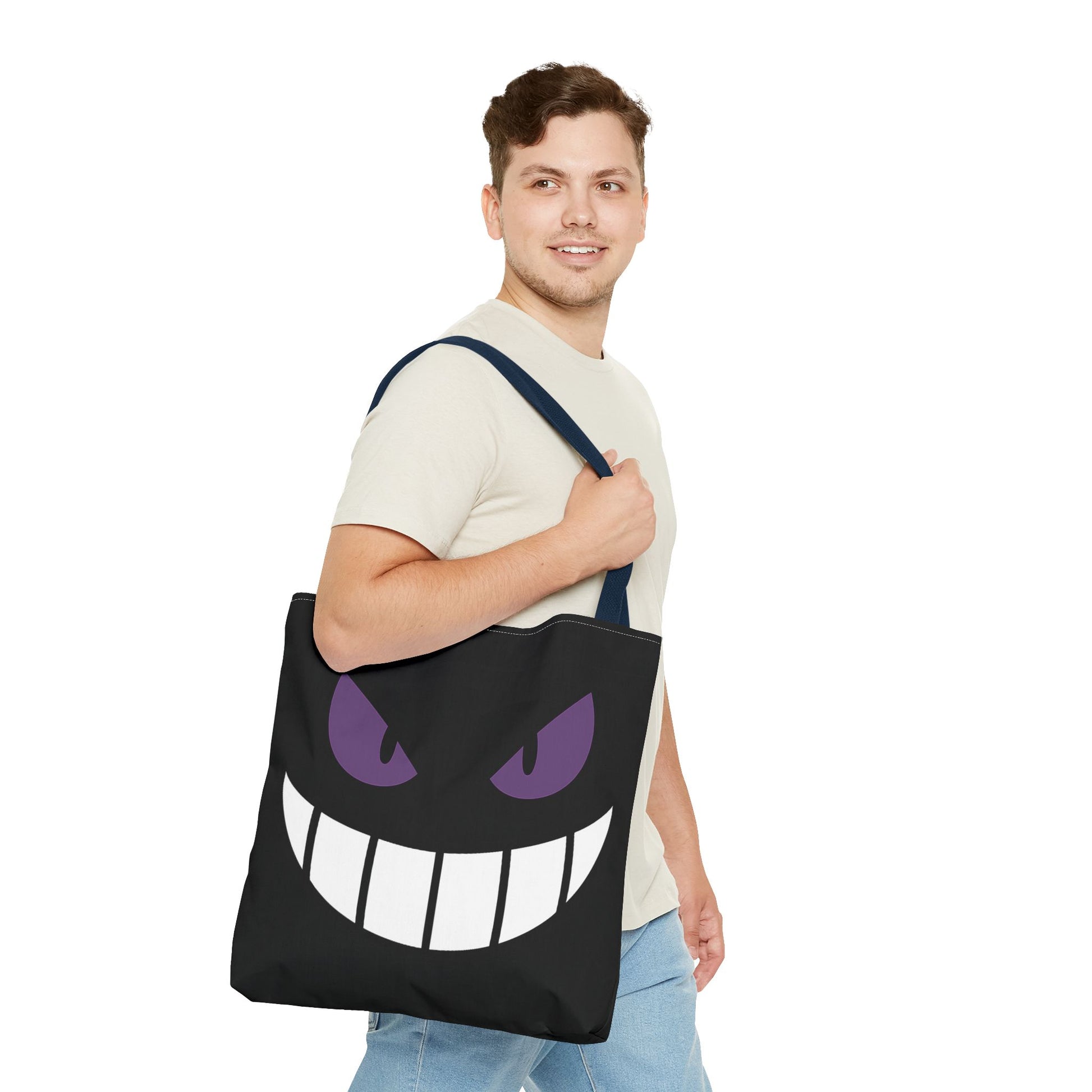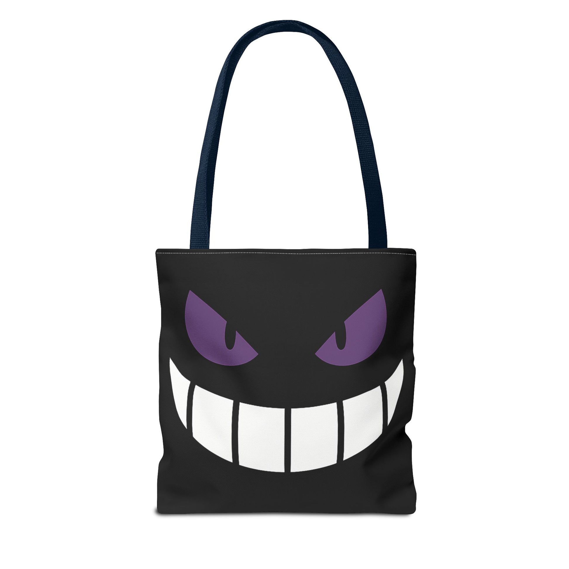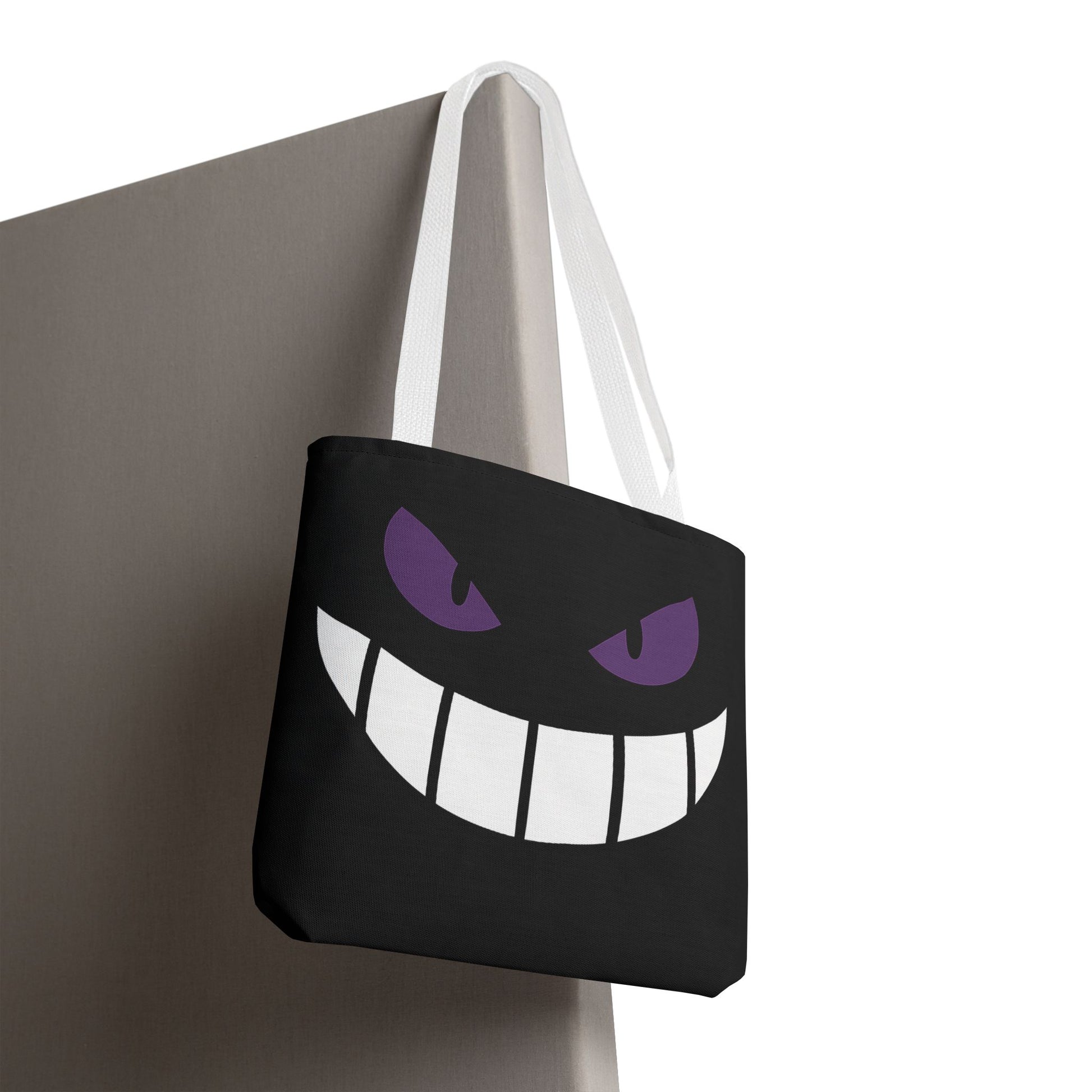 Show off your dark side with this Gothic Grinning Face Tote Bag, featuring bold purple eyes and a wide sinister smile. A spooky yet stylish accessory, this tote is perfect for Halloween, gothic fashion, or everyday errands with a creepy twist.