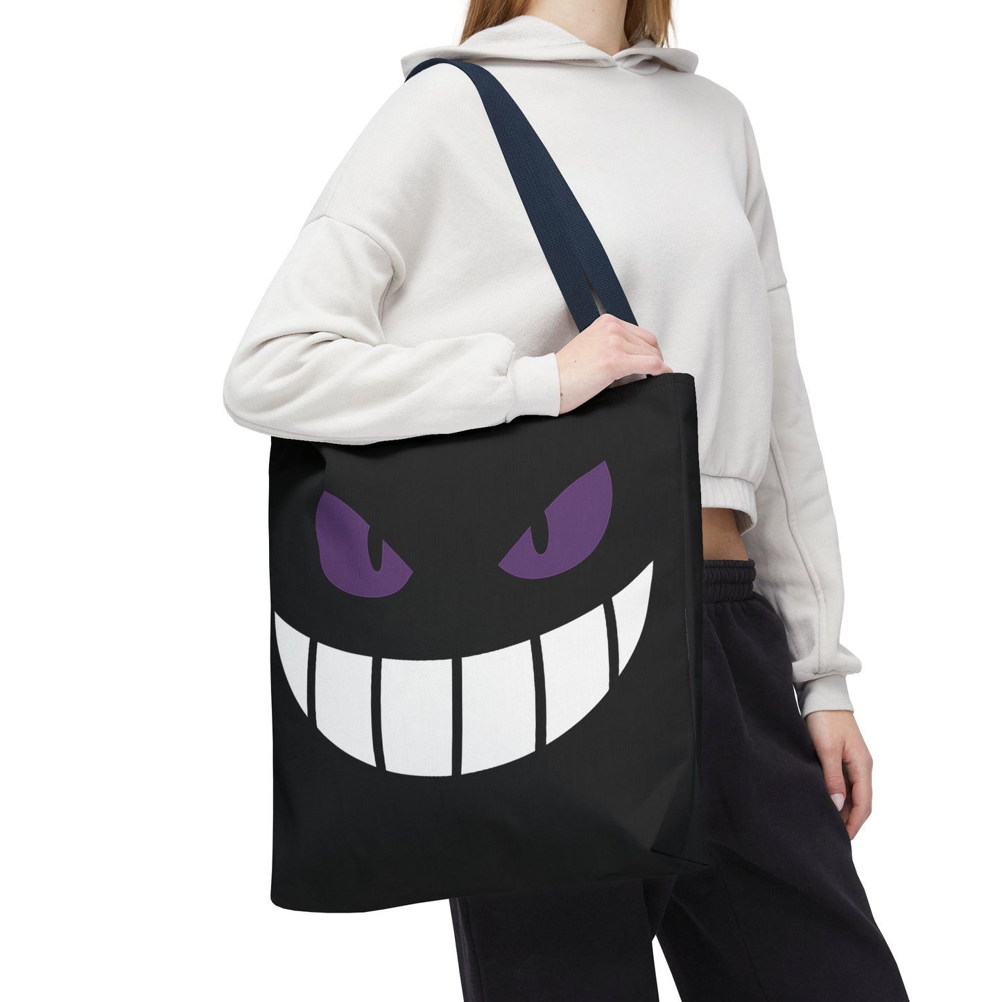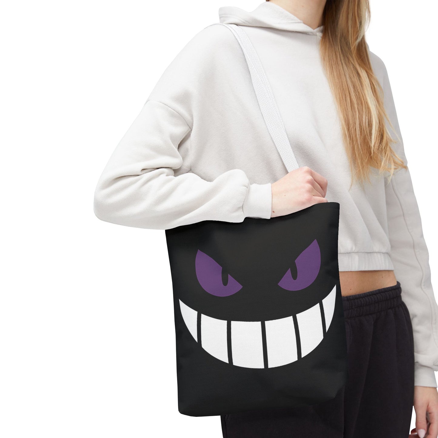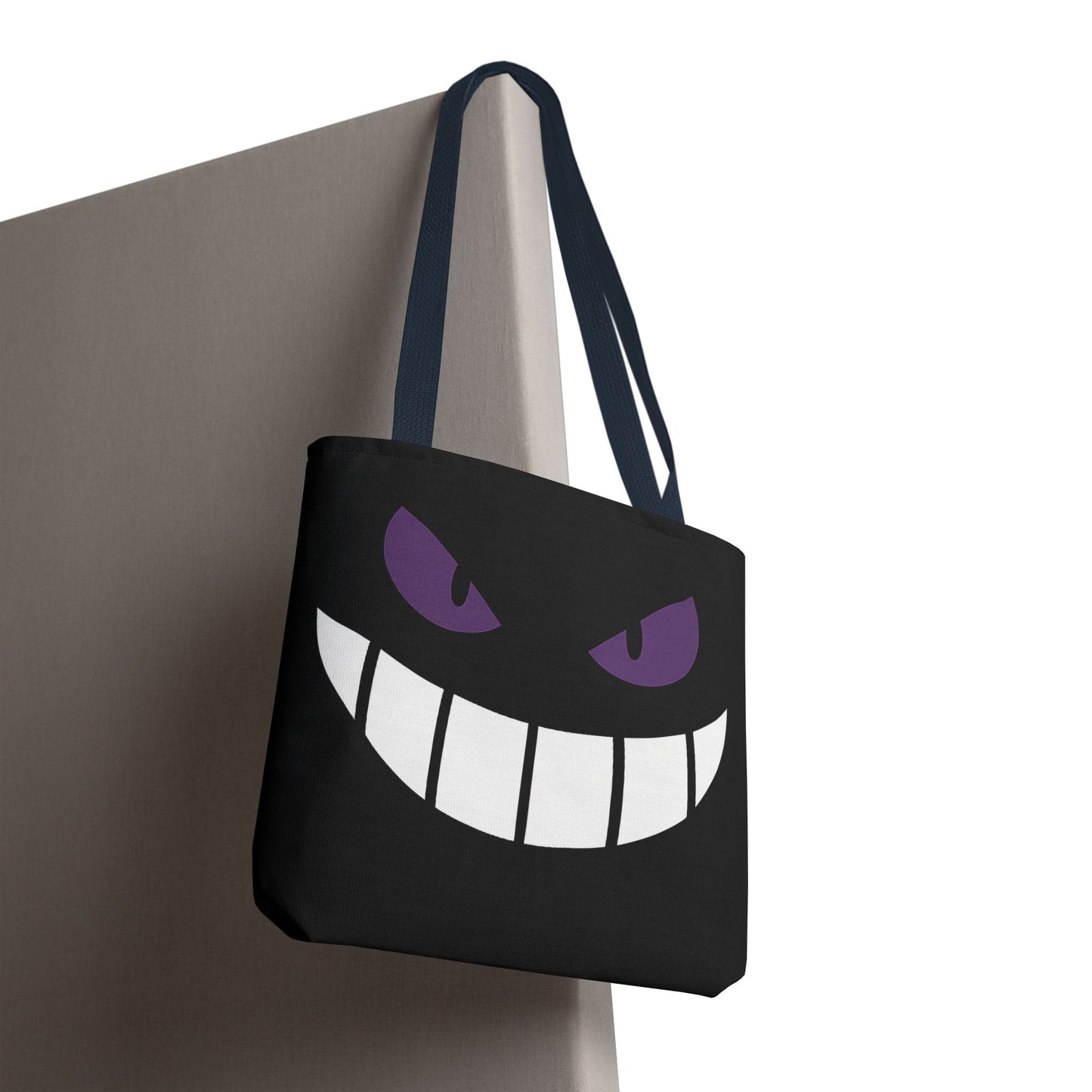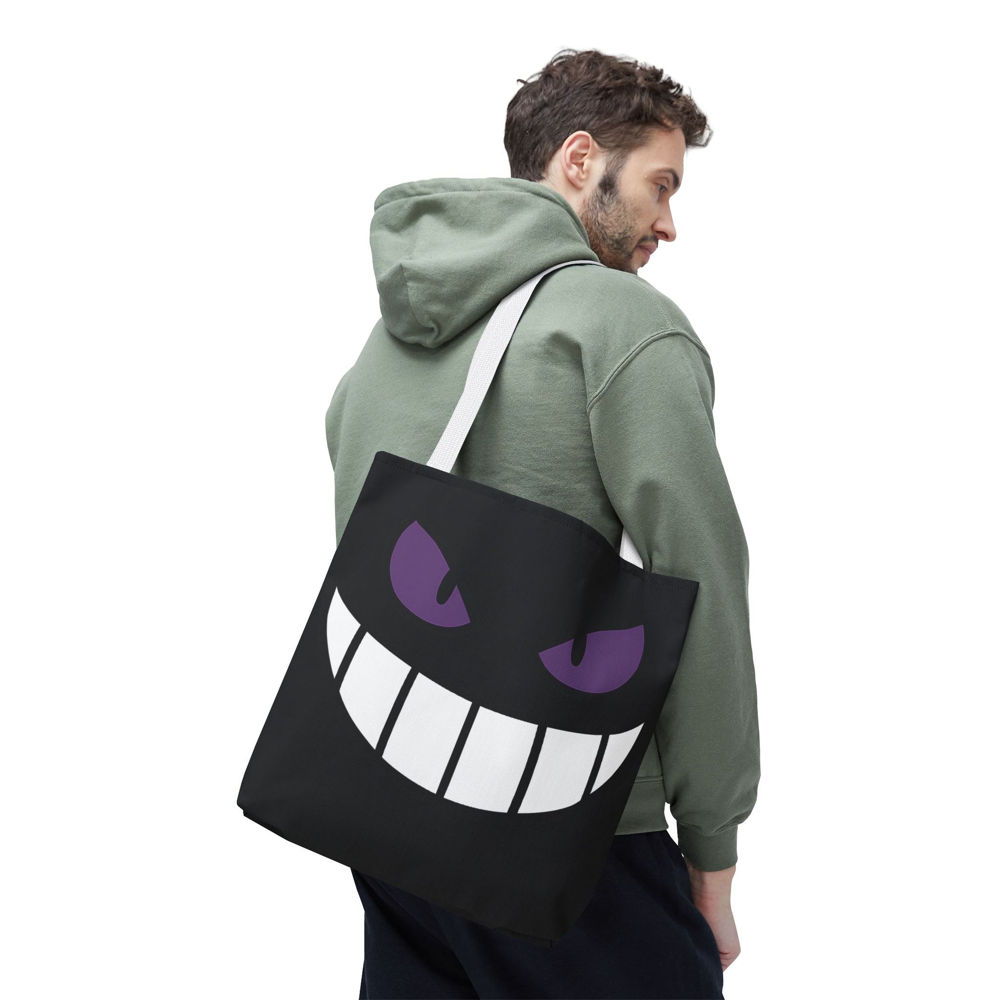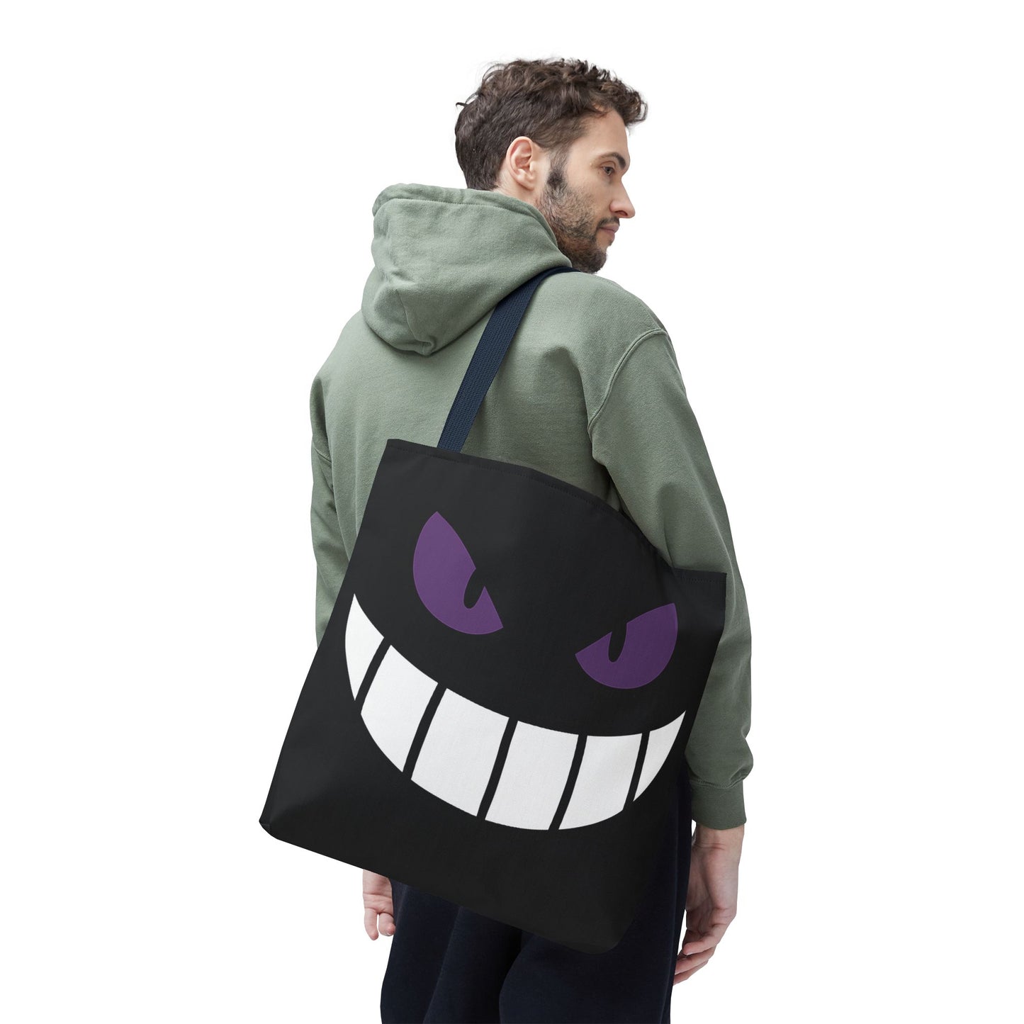 Show off your dark side with this Gothic Grinning Face Tote Bag, featuring bold purple eyes and a wide sinister smile. A spooky yet stylish accessory, this tote is perfect for Halloween, gothic fashion, or everyday errands with a creepy twist.