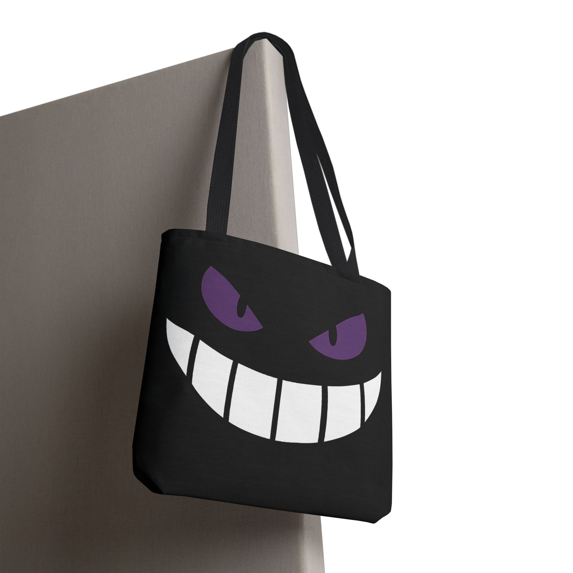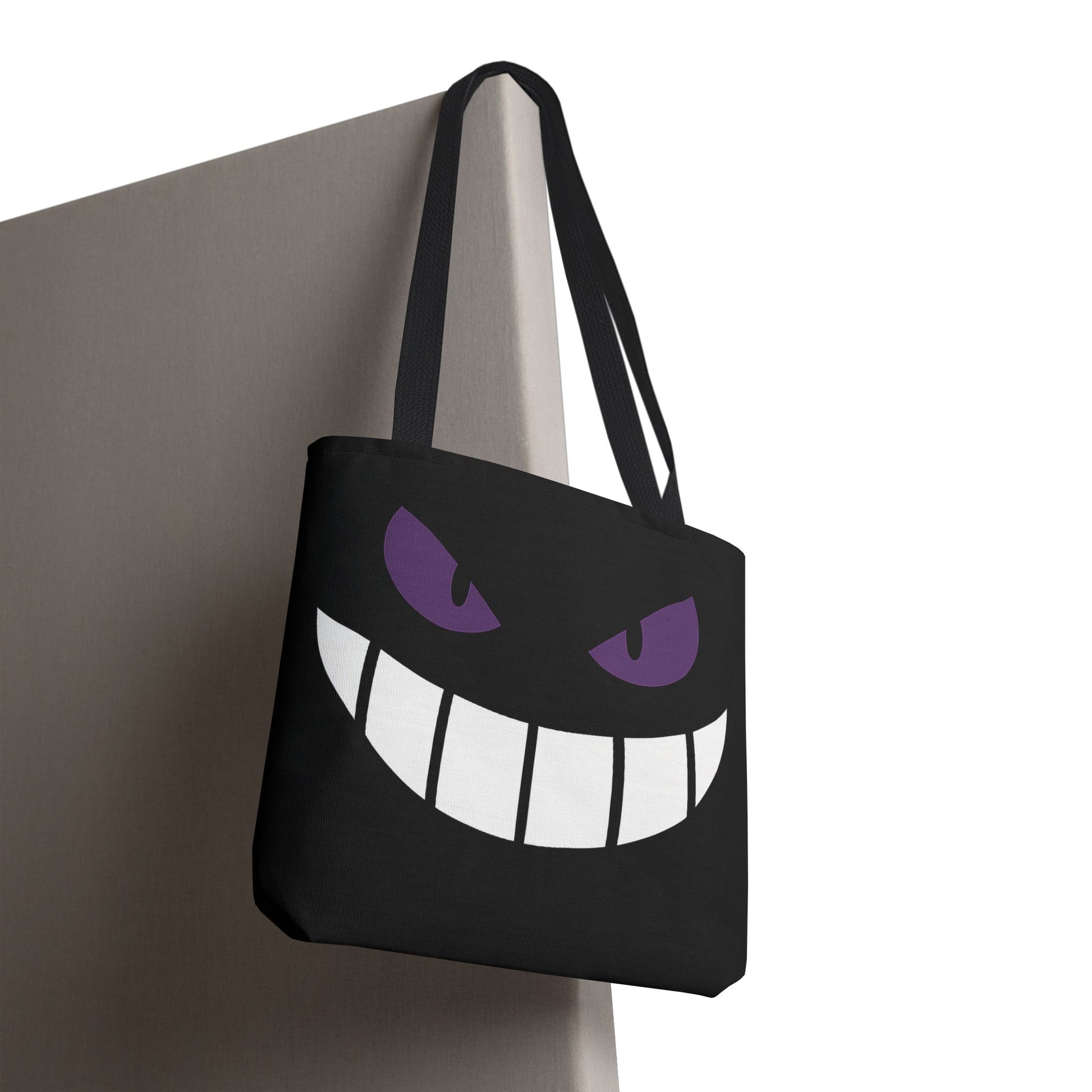 Evil Grin Tote Bag, Spooky Purple Eyes Reusable Shopping Bag, Creepy Cute Halloween Tote, Gothic Horror Canvas Bag, Gamer Room Accessory