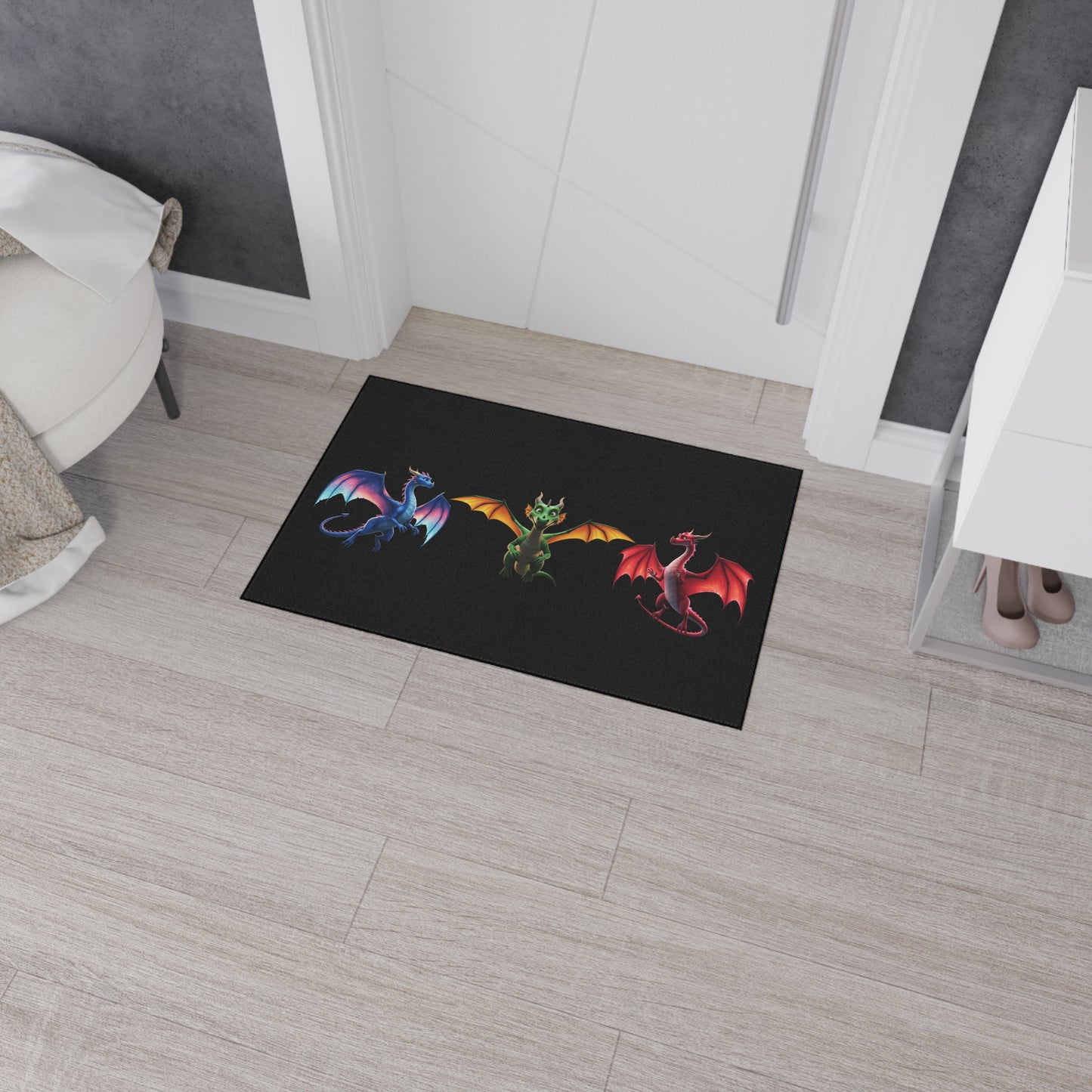 Fantasy Dragon Floor Mat - Non‑Slip Game Room Rug with Blue, Green and Red Dragons, Kids Room Decor, Durable Entrance Welcome Mat
