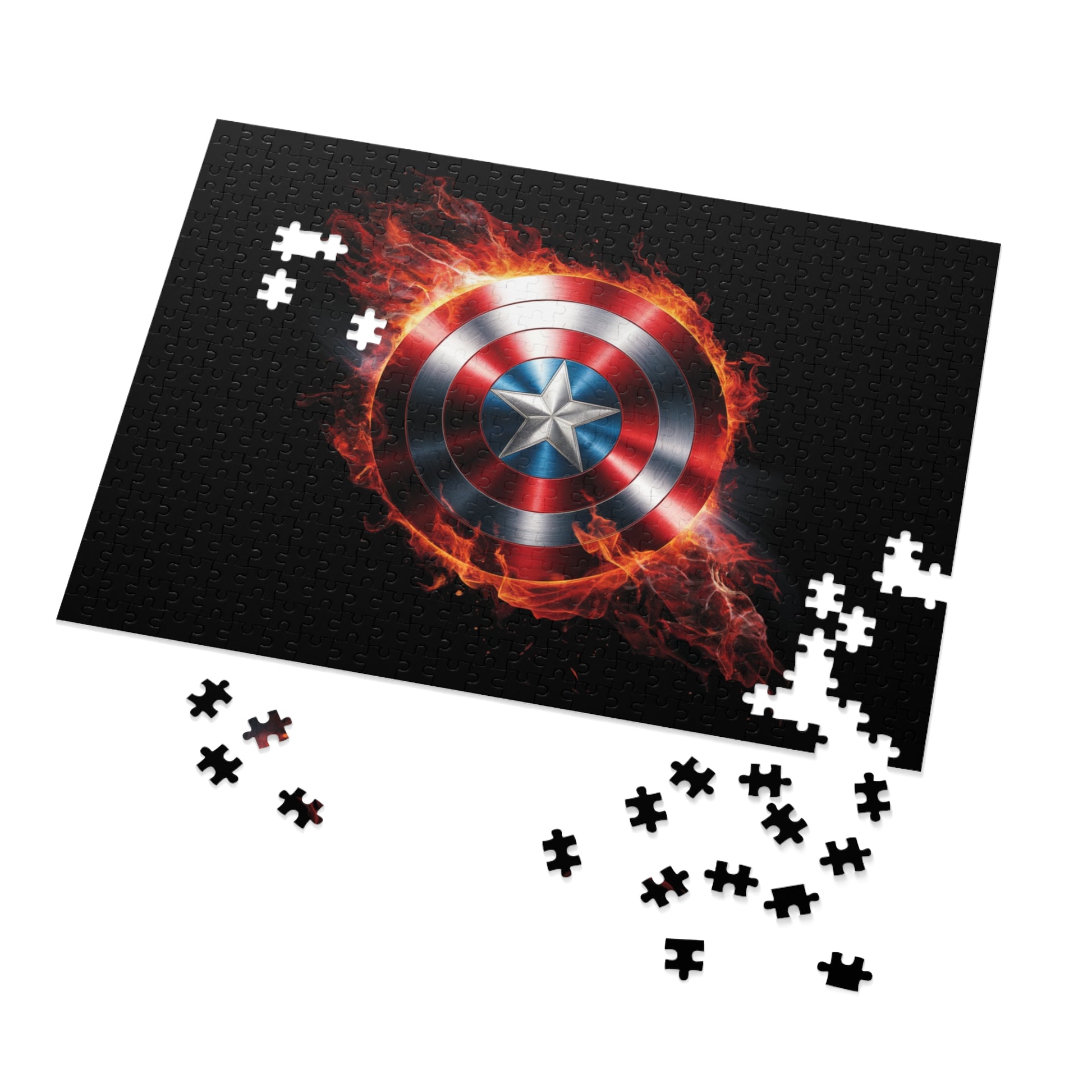 Fire & Shield Jigsaw Puzzle with Tin | Marvel-Inspired Home Décor