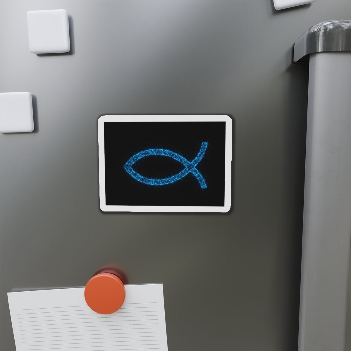 Fish Symbol Die-Cut Magnet Blue Bioluminescent Design Christian Magnet Spiritual Decor Kitchen Decoration Faith Magnet