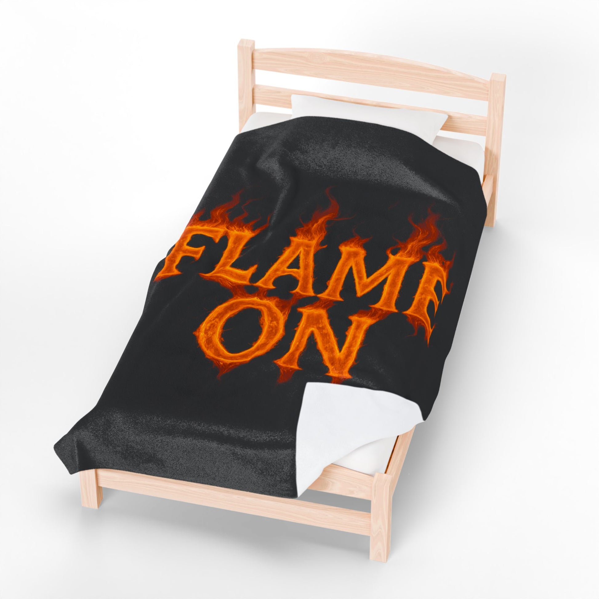Ignite your space with bold style and blazing comfort! This “Flame On” blanket features fiery typography that turns up the heat—perfect for comic lovers, action fans, or anyone who appreciates dramatic design and cozy vibes.