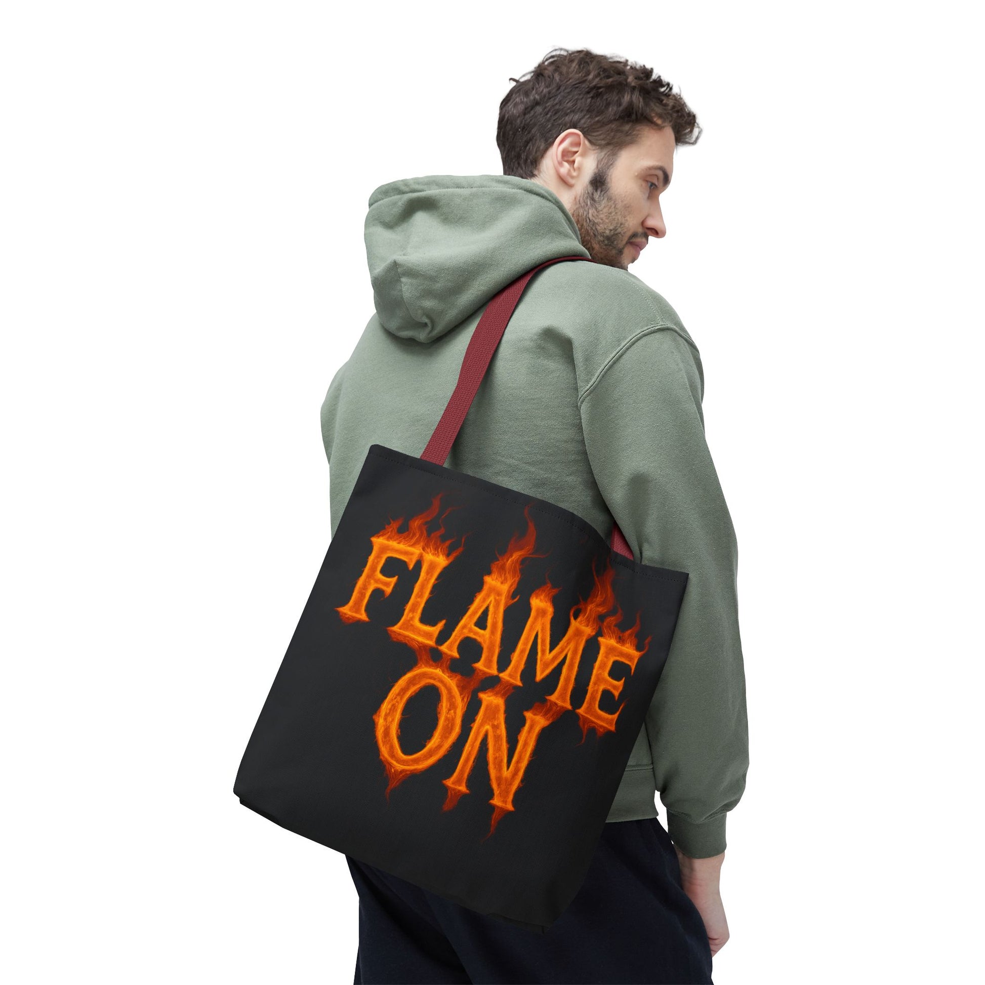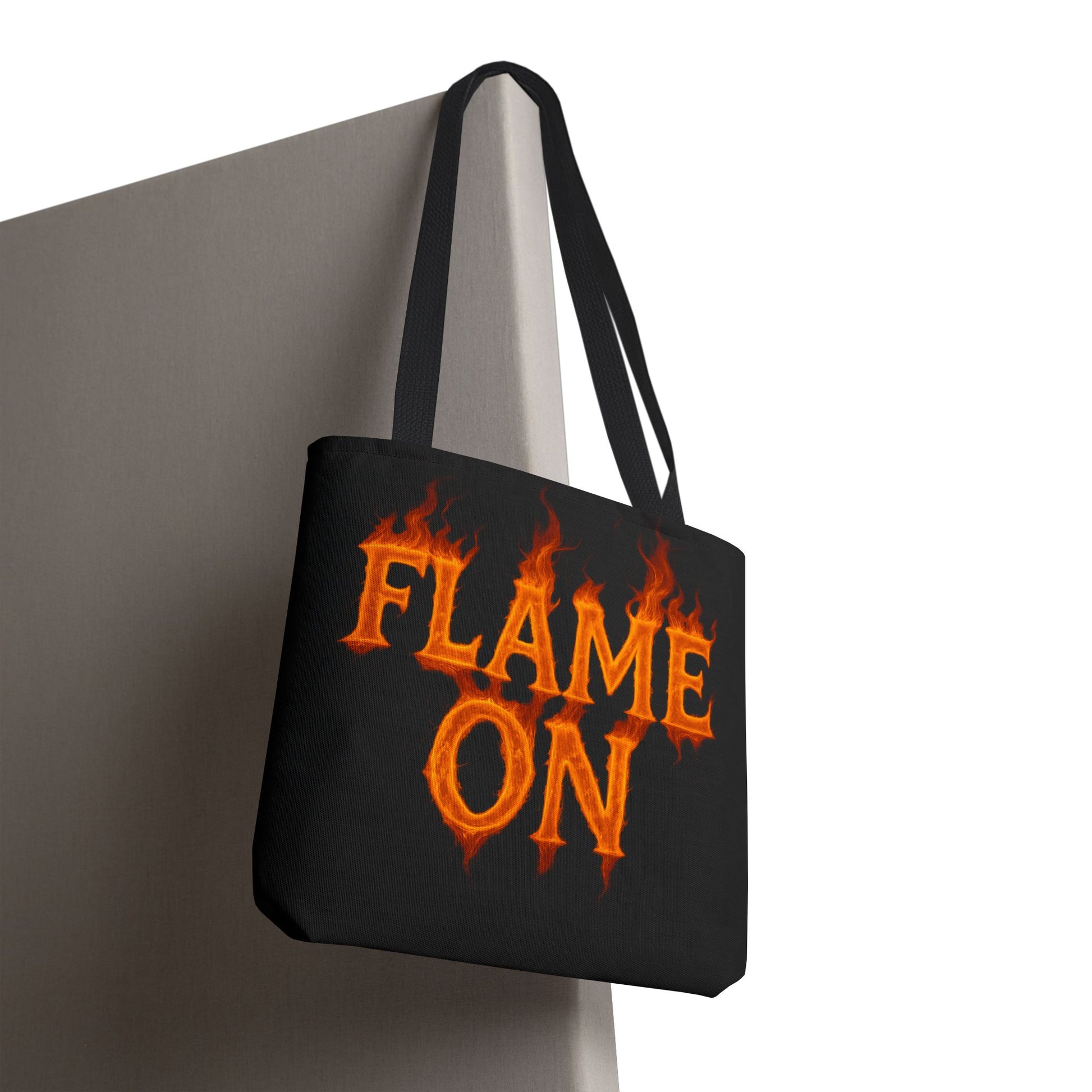 urn up the heat on your style with this bold “Flame On” tote bag.