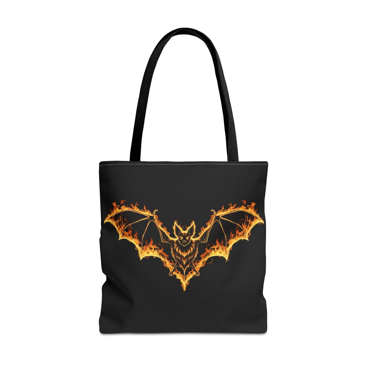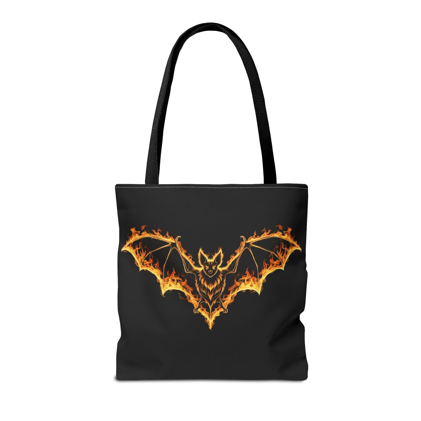 Flaming Bat Tote Bag, Gothic Halloween Canvas Tote, Fiery Wing Bat Design Tote, Spooky Season Accessory, Gothic Gift Tote