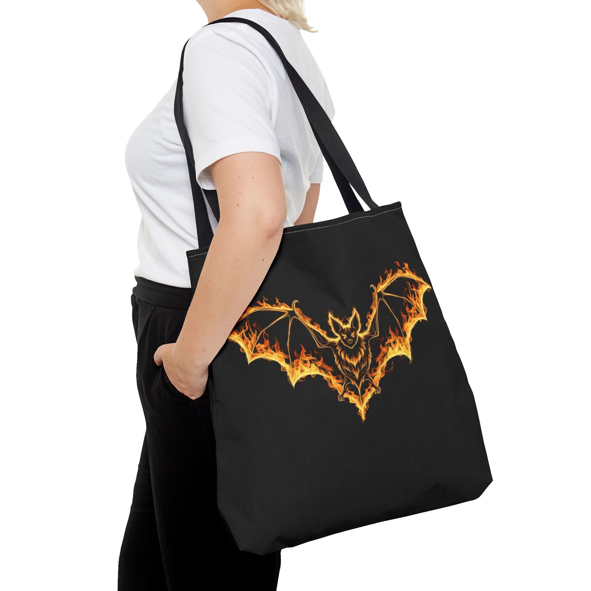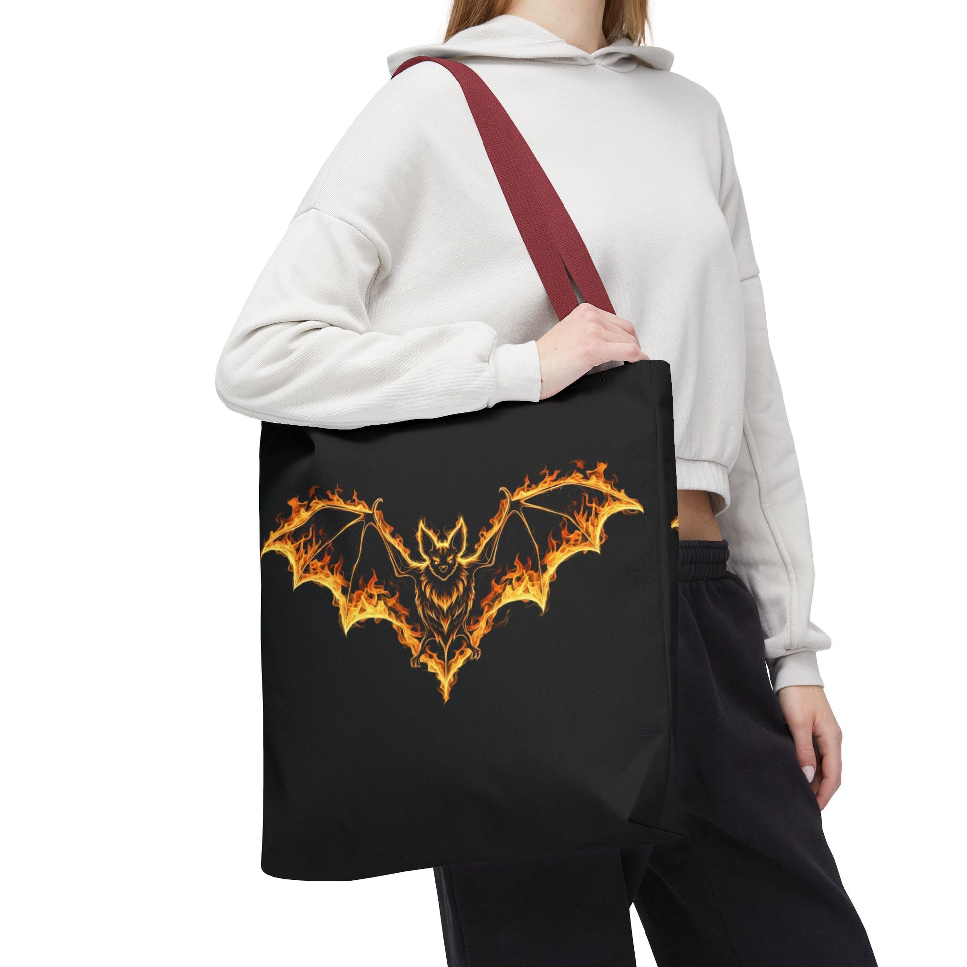 Striking flame-wing bat artwork makes this tote a true statement piece.
