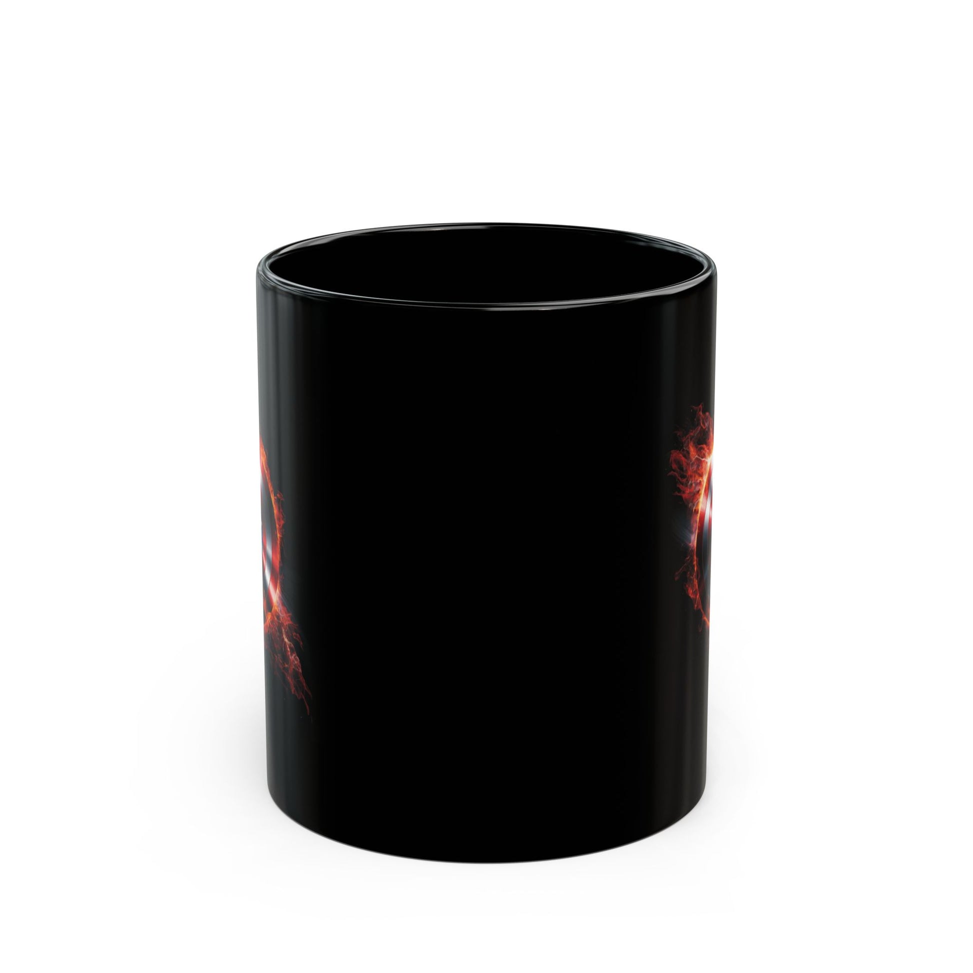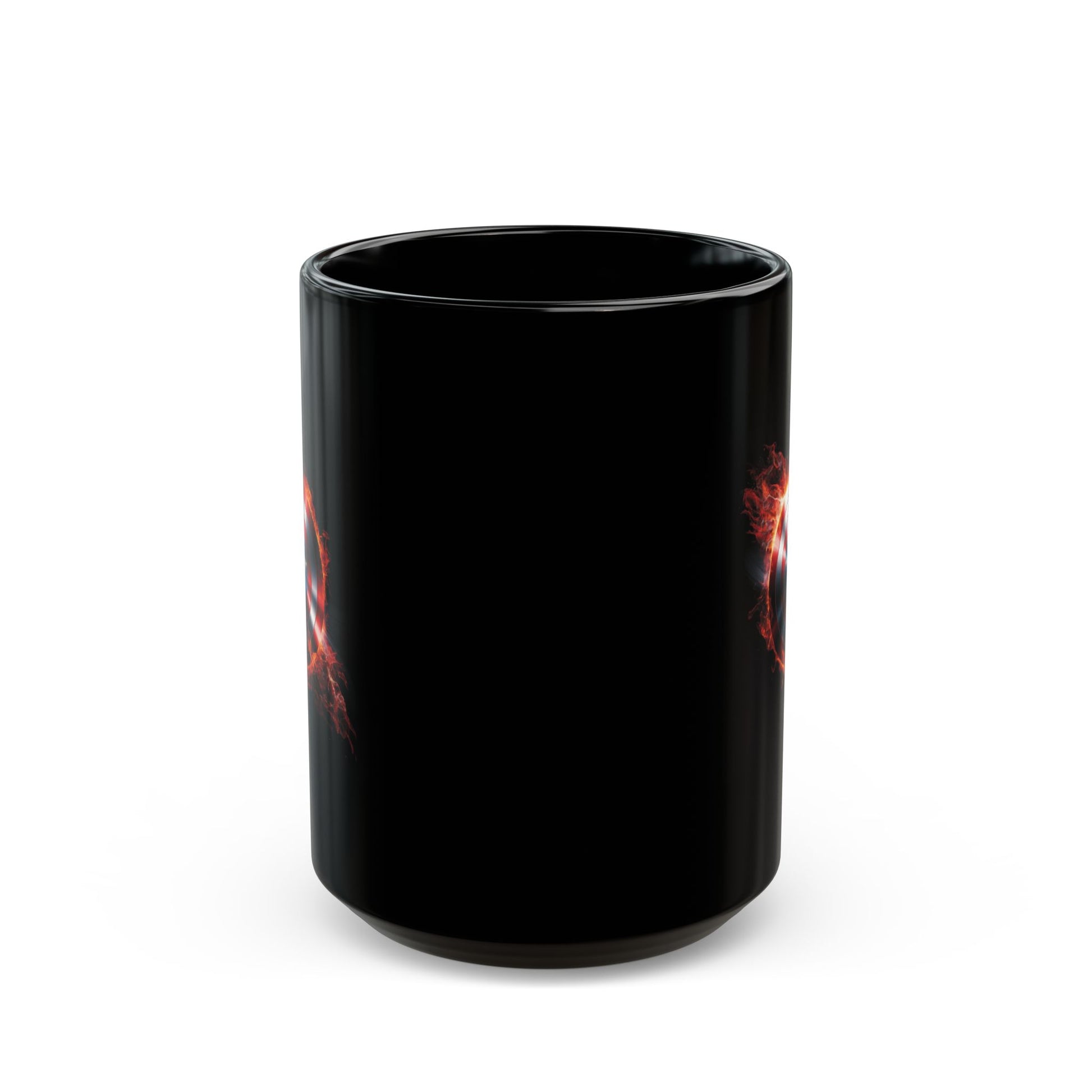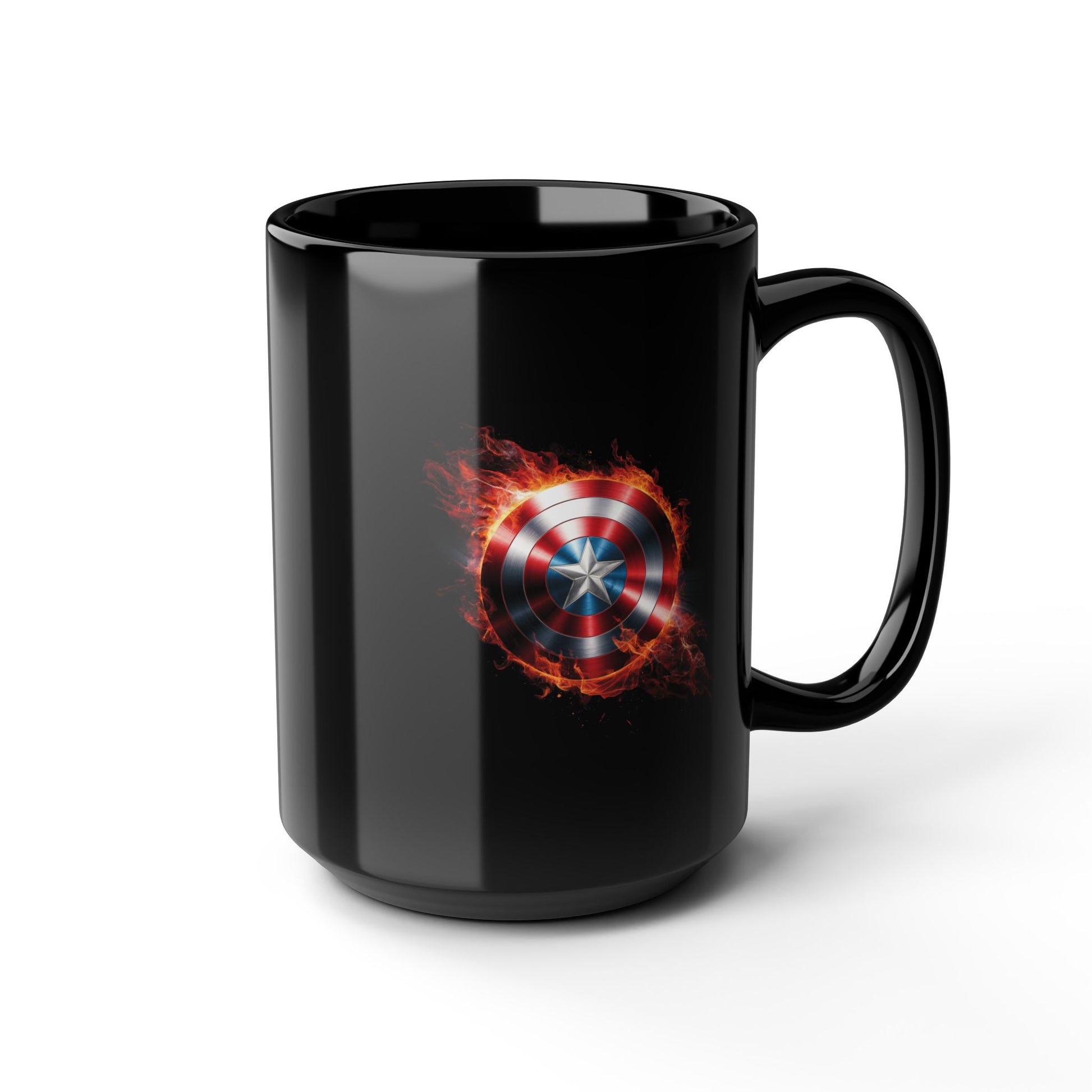 Flaming Shield Emblem Mug - Fiery Red White Blue Star Coffee Cup, Metal-Inspired Symbol Design, Bold Hero Vibes Gift for Fans and Coffee Lovers