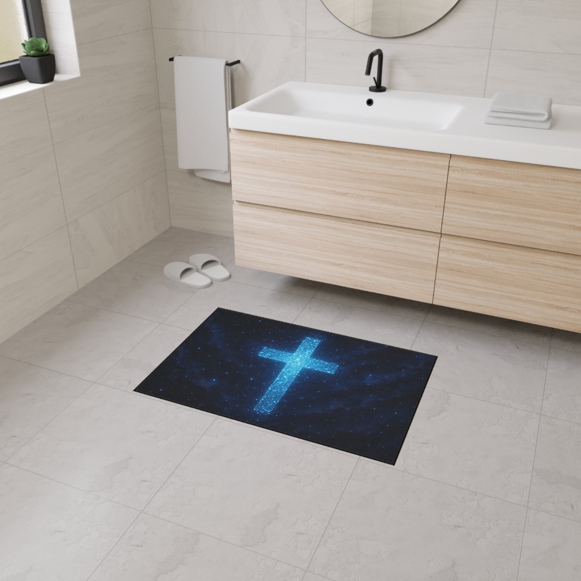 Floor Mat - Bioluminescent Cross Design Christian Decor Religious Welcome Mat Spiritual Door Mat Inspirational Rug