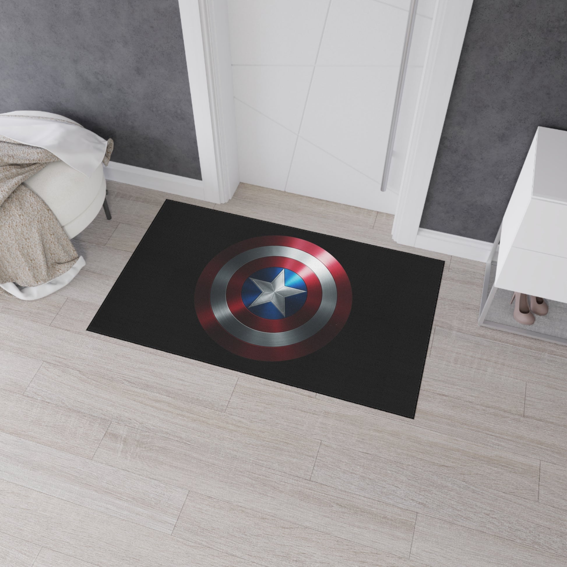 A fun Captain America Shield floor mat, perfect for Marvel fans to add a touch of superhero vibes to their home. This heavy-duty floor mat is durable and non-slip, making it suitable for high-traffic areas. Ideal for comic book lovers and superhero enthusiasts, this floor mat is great for everyday use and can be a unique gift for birthdays or holidays.