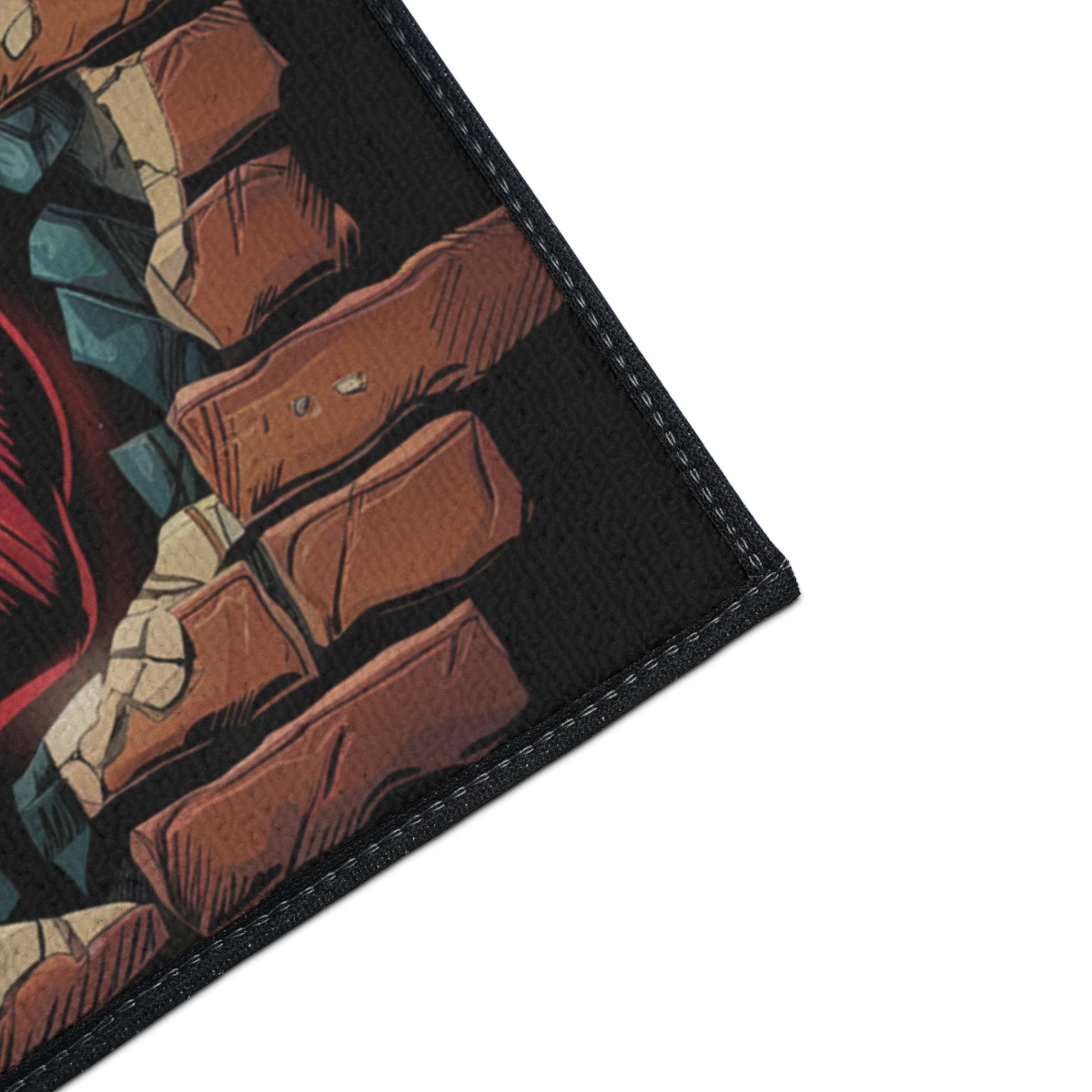 A fun floor mat featuring a red fist smashing through the wall, adding a playful and quirky touch to your home decor. Perfect for Marvel lovers and those who appreciate unique design elements. Ideal for adding a pop of color and personality to any room. Great for celebrating birthdays, housewarmings, or any special occasions.