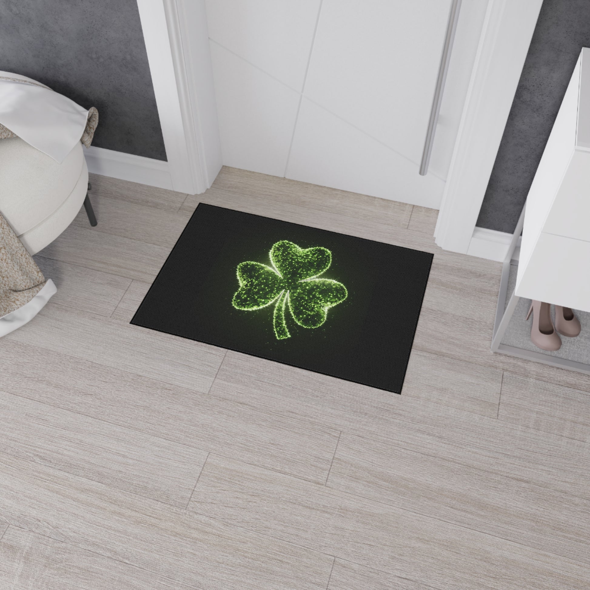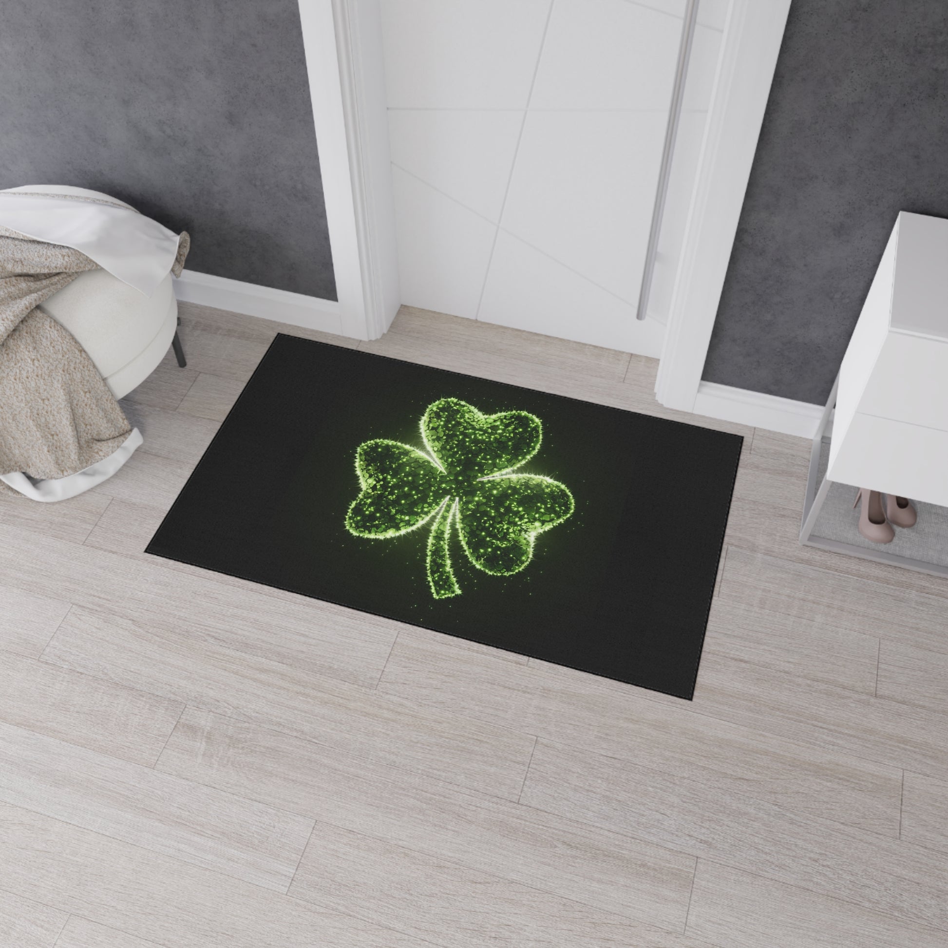 Bring some luck and fun to your home with this heavy duty floor mat featuring a shiny shamrock. The vibrant colors and durable materials make it perfect for adding a touch of personality while keeping your floors clean and safe. Ideal for those who love St. Patrick's Day or want to add a pop of color to their home decor.