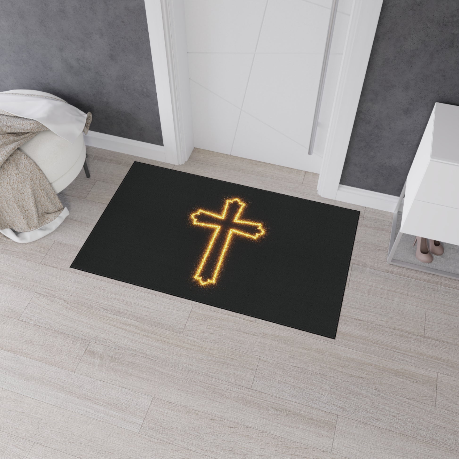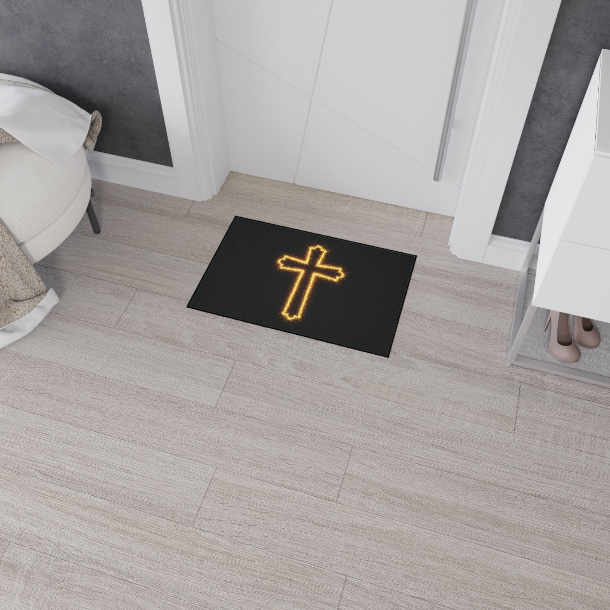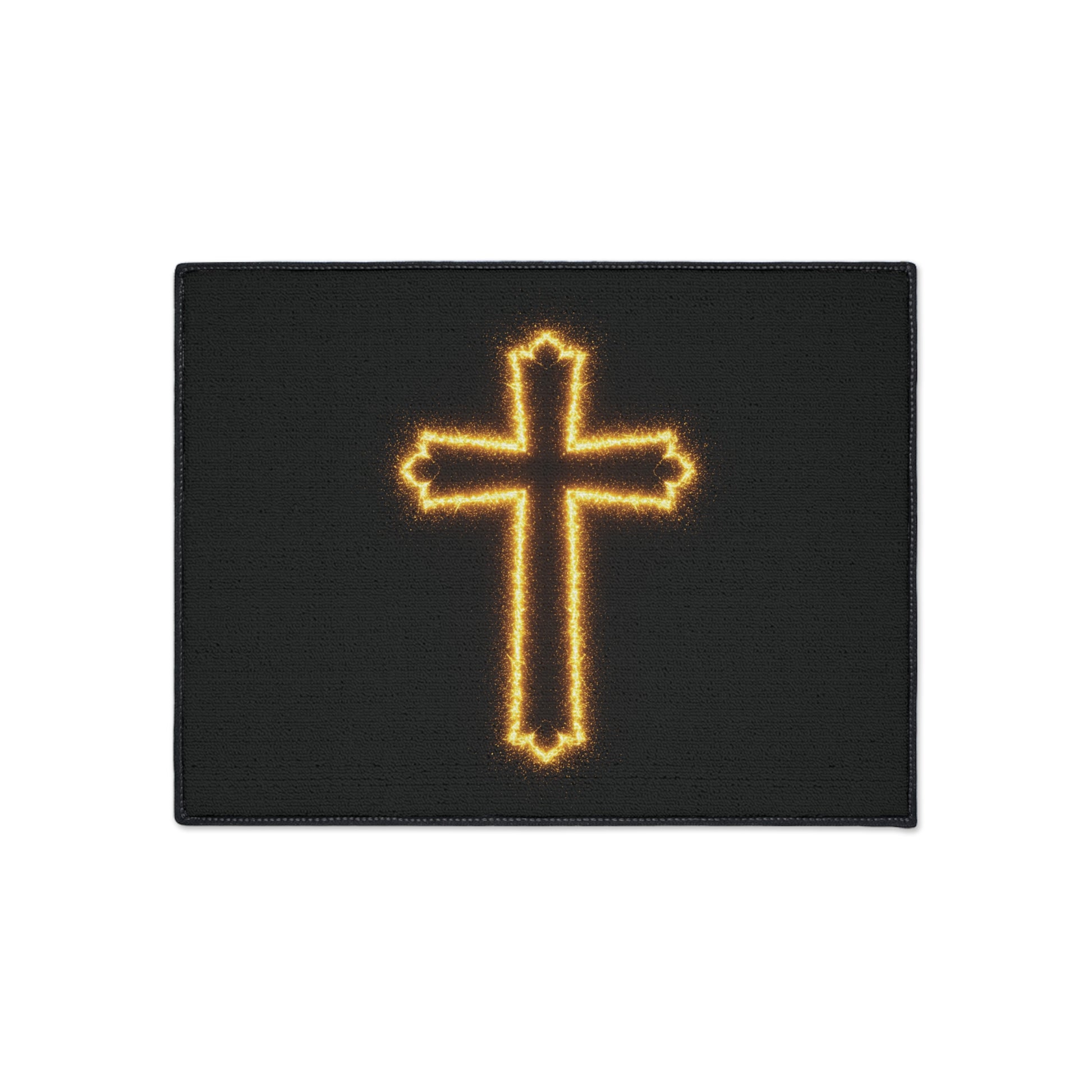 A fun floor mat with a glowing cross design, perfect for adding a touch of whimsy to your home decor. This heavy-duty floor mat is ideal for use in entryways, kitchens, and bathrooms. The vibrant colors and durable materials make it a great addition to any home. This floor mat is relevant for religious holidays, home decor enthusiasts, and those looking to add a unique touch to their space.
