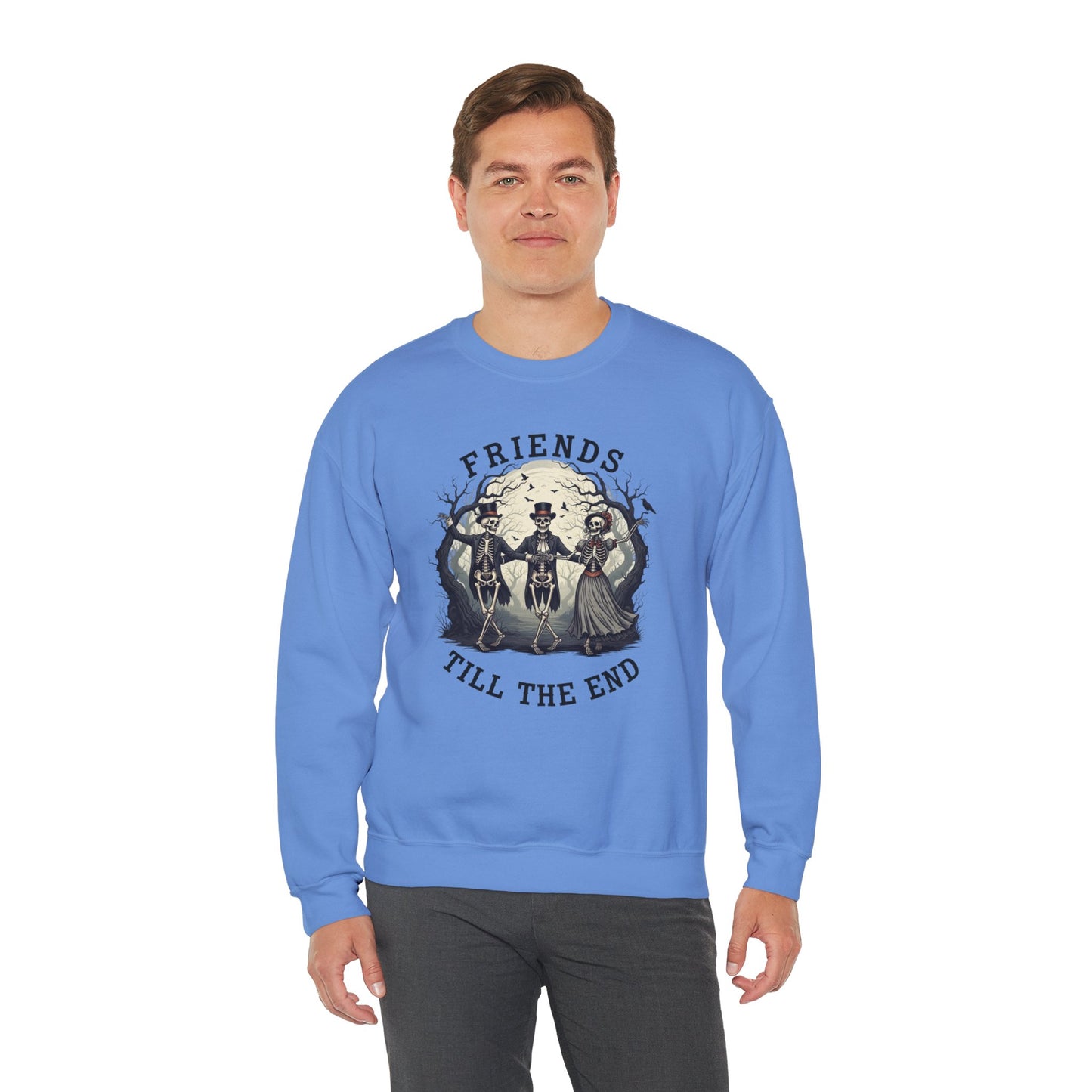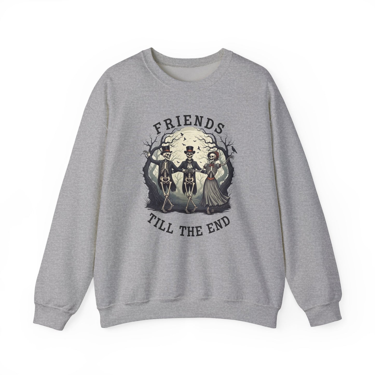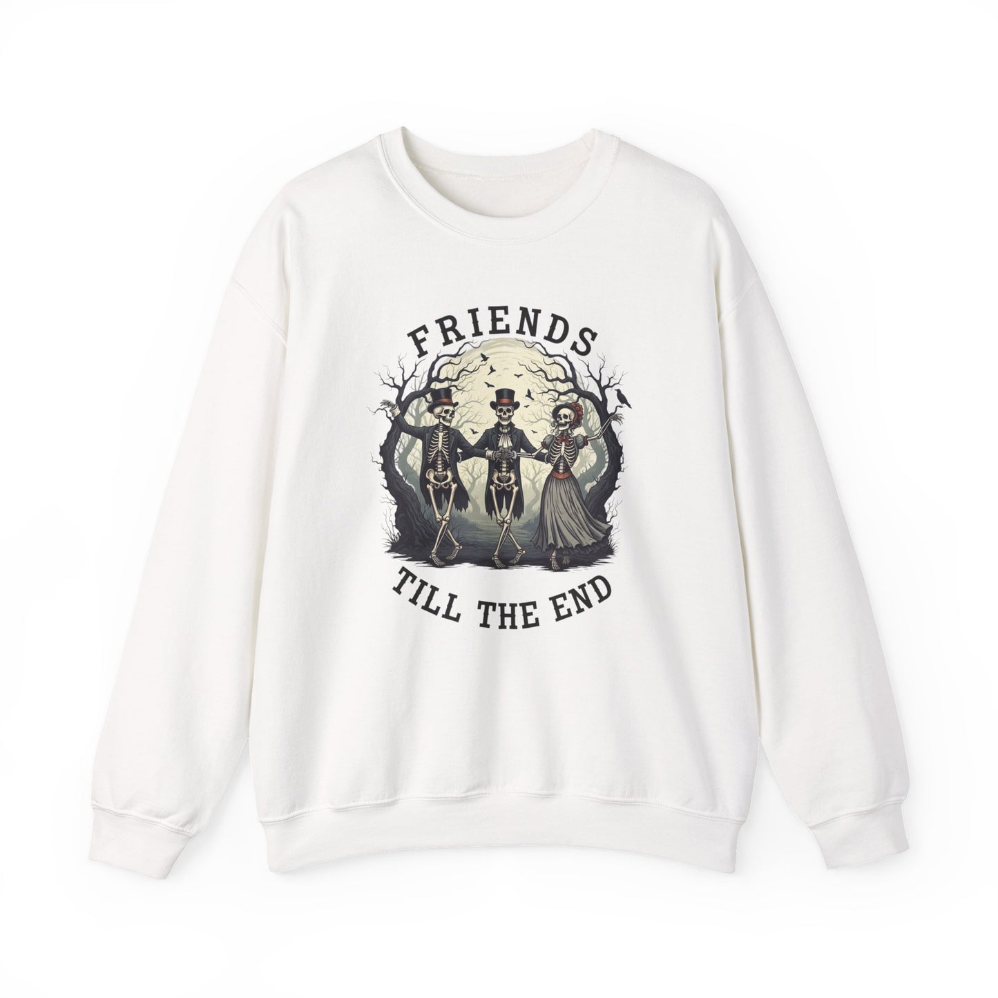Friends Till The End Skeleton Sweatshirt | Dancing Skeletons Halloween Crewneck | Spooky Fall Graphic Pullover Gift for Bestie