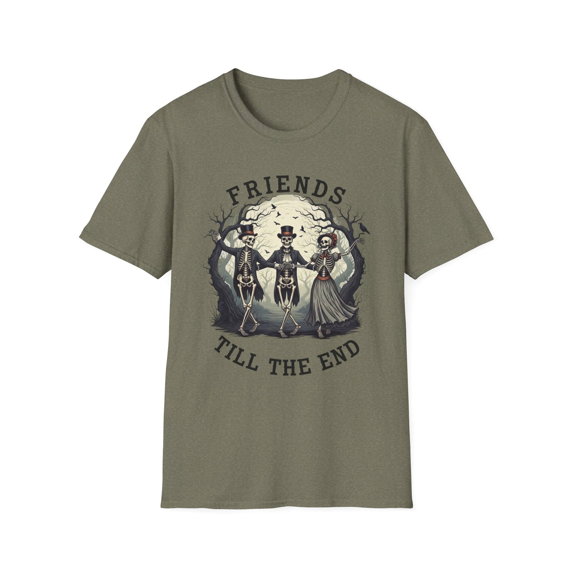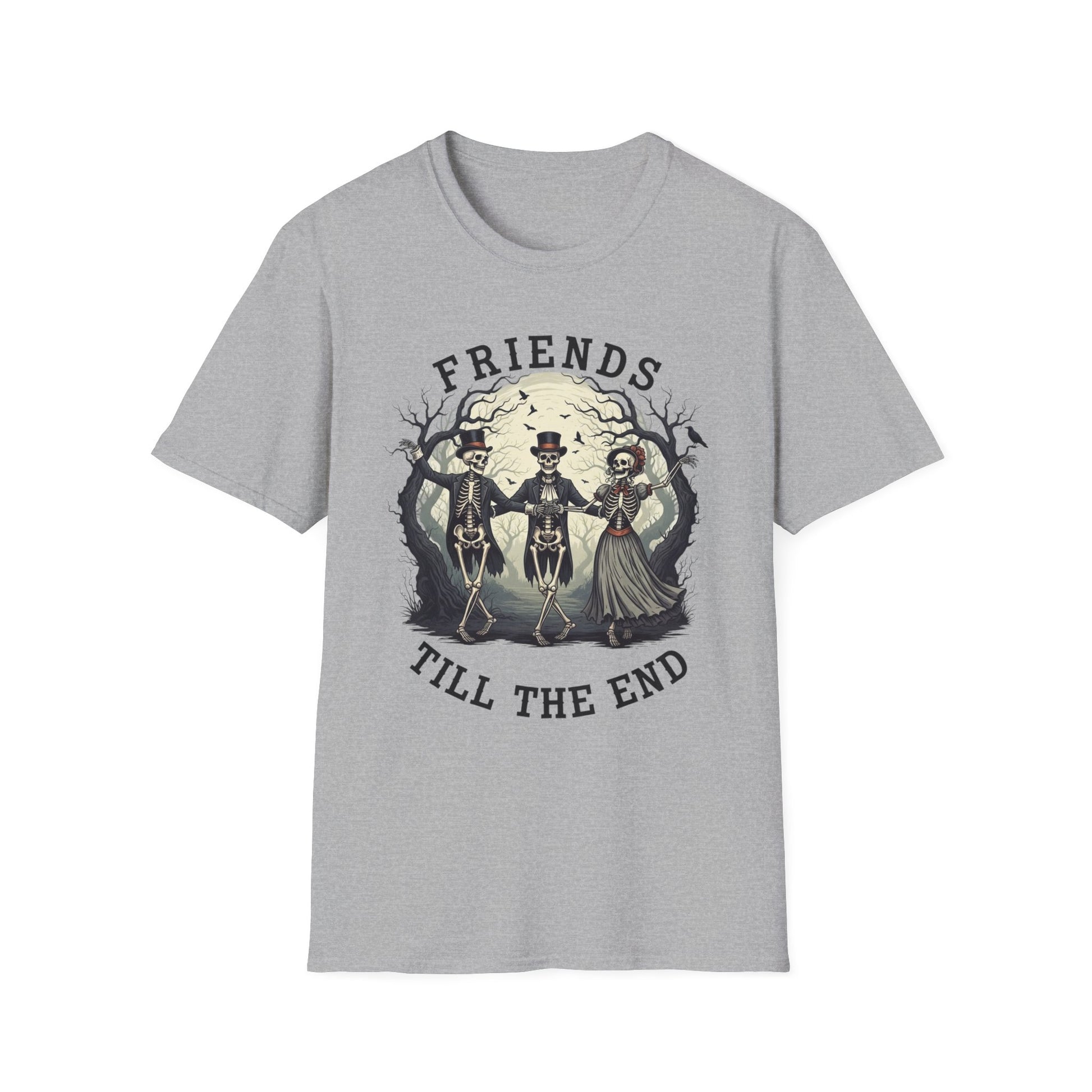 Friends Till The End Skeleton Tee | Dancing Skeleton Friends Shirt | Halloween Gothic BFF Gift | Unisex Heather Grey Graphic T-Shirt