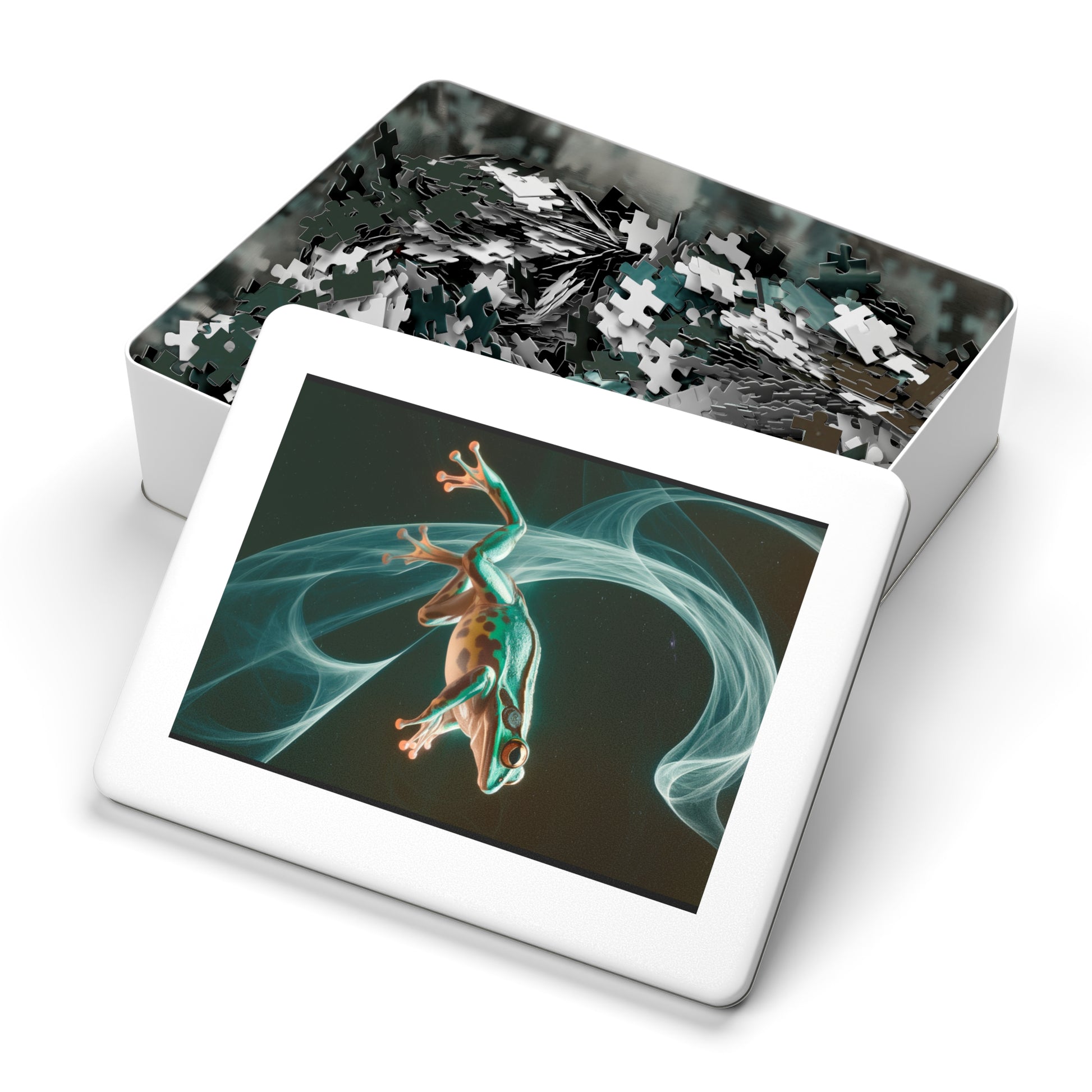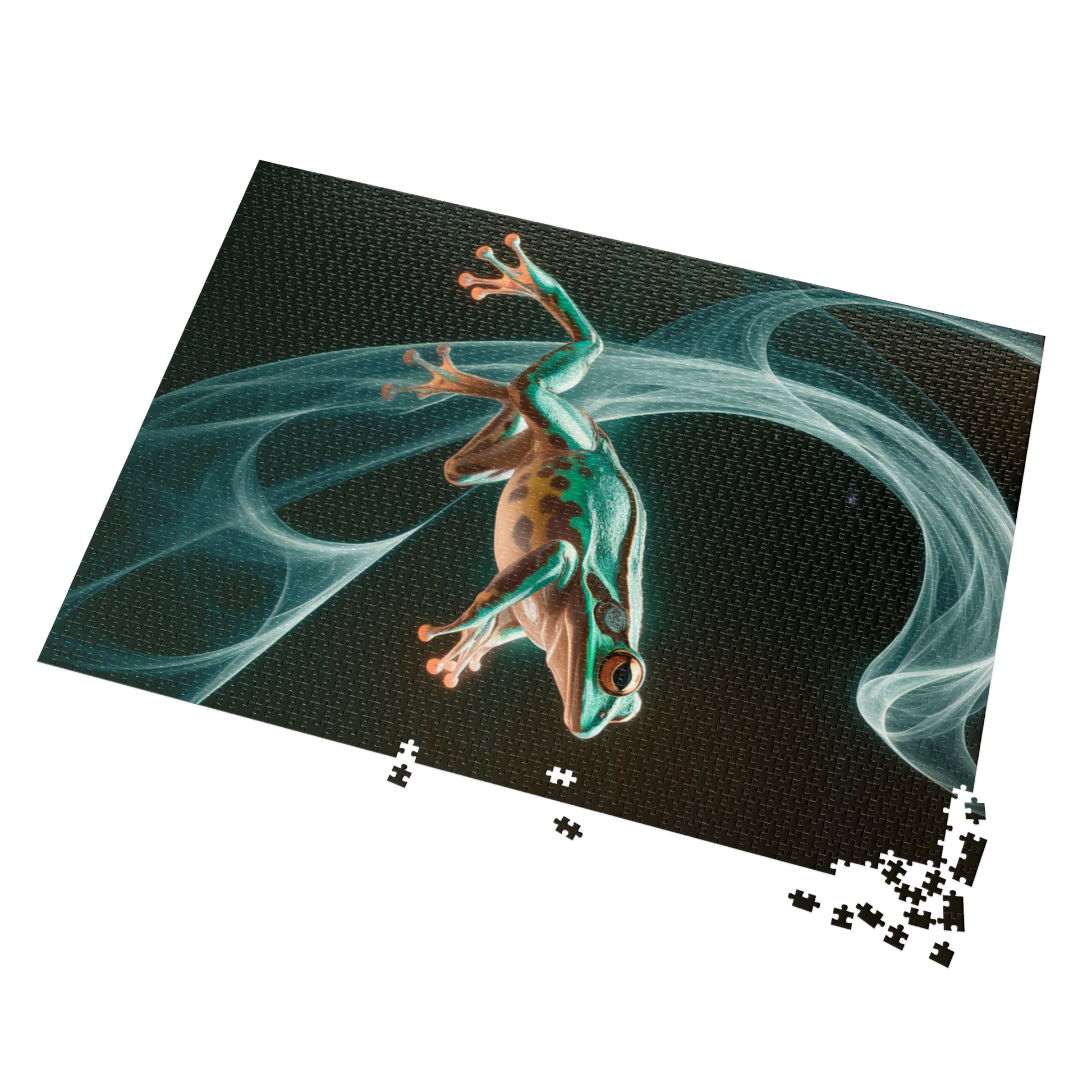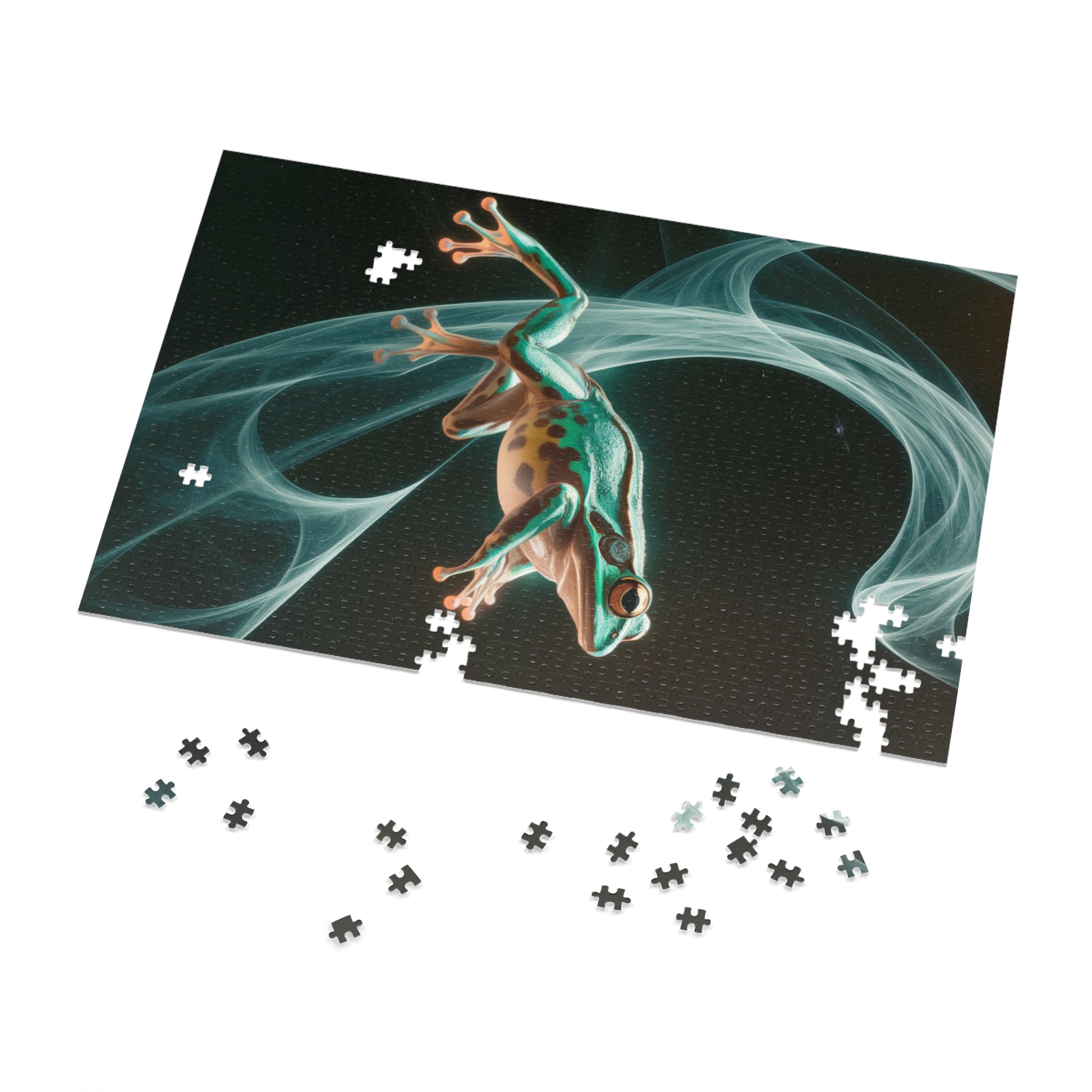 A fun frog-themed jigsaw puzzle with vibrant colors and a glossy finish. Perfect for puzzle enthusiasts looking for a unique and entertaining challenge. Ideal for gifting during holidays, birthdays, or any special occasions.