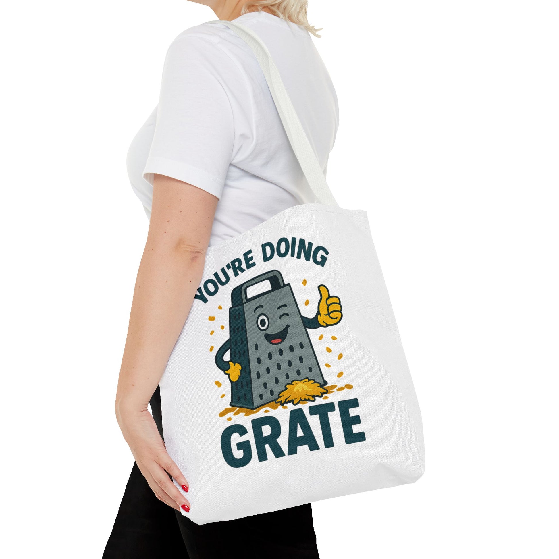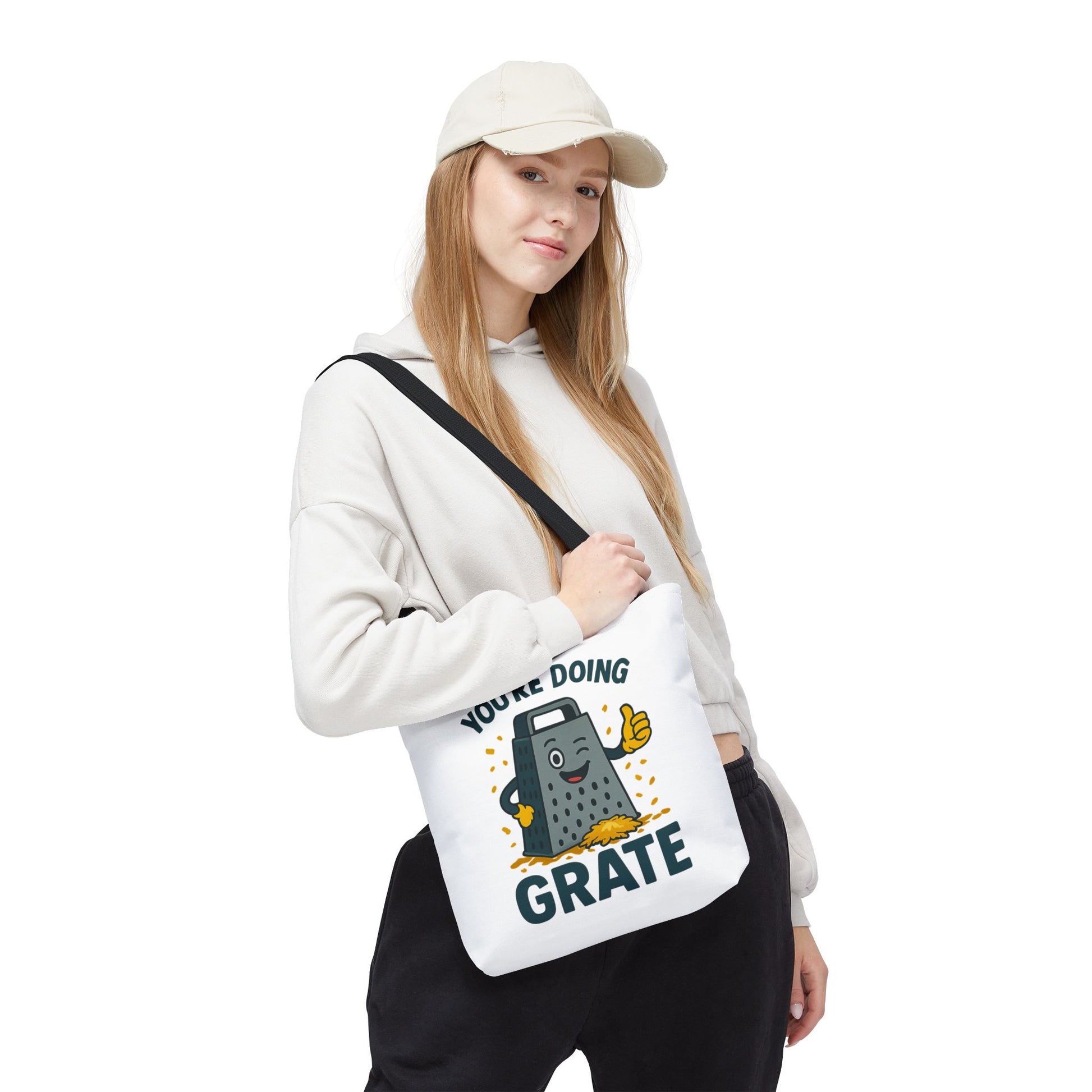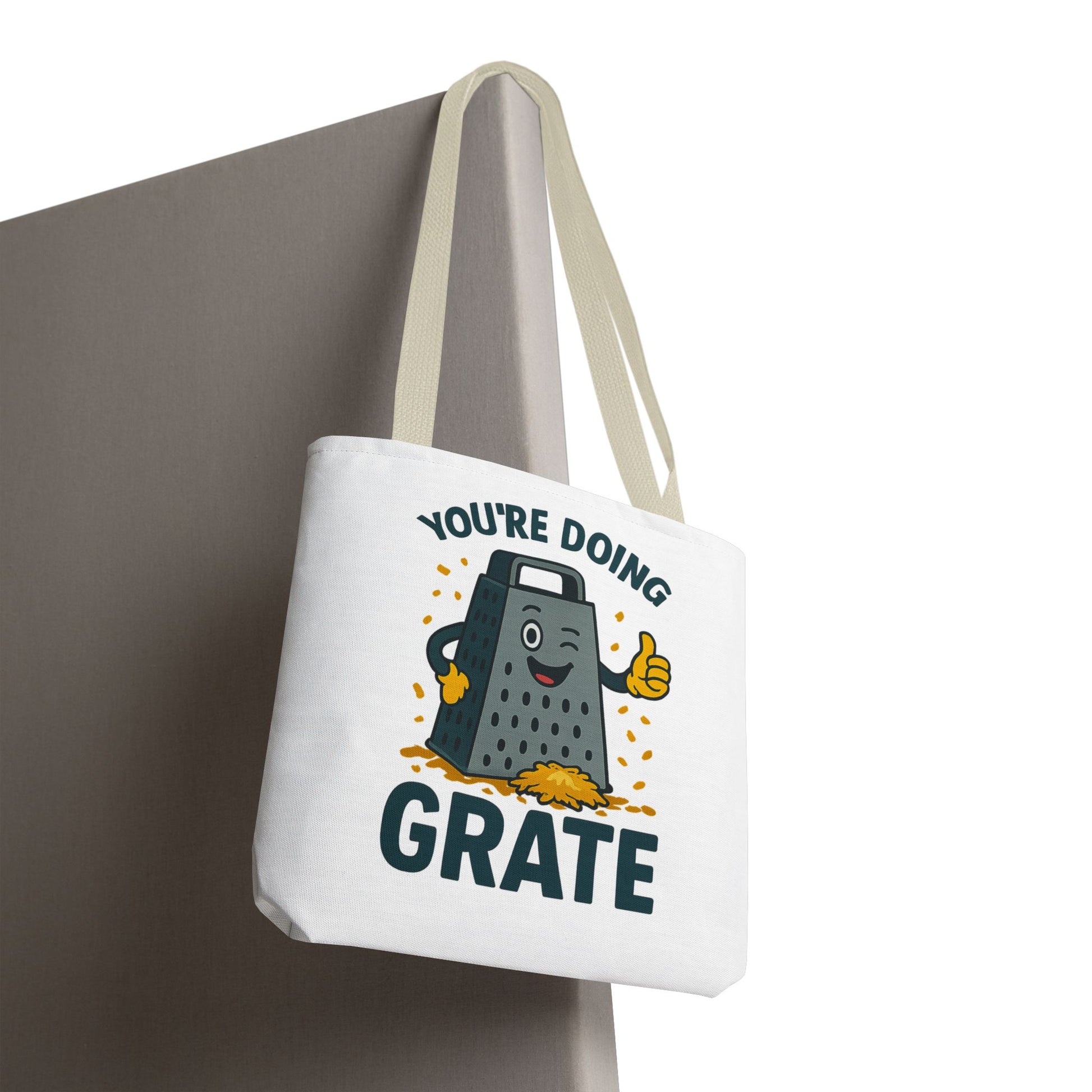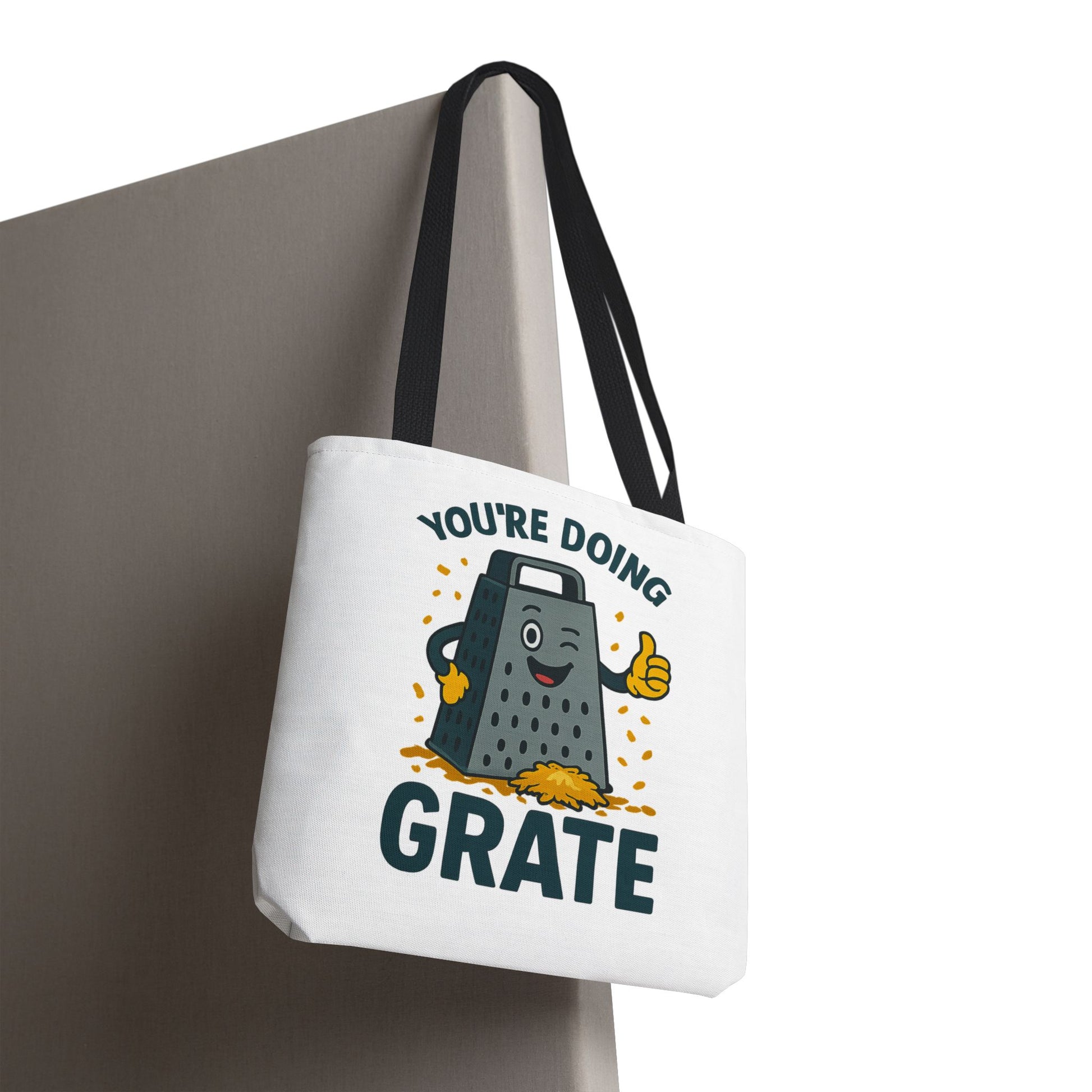 Cheer someone on while carrying all the things with this adorable “You’re Doing Grate” tote bag!