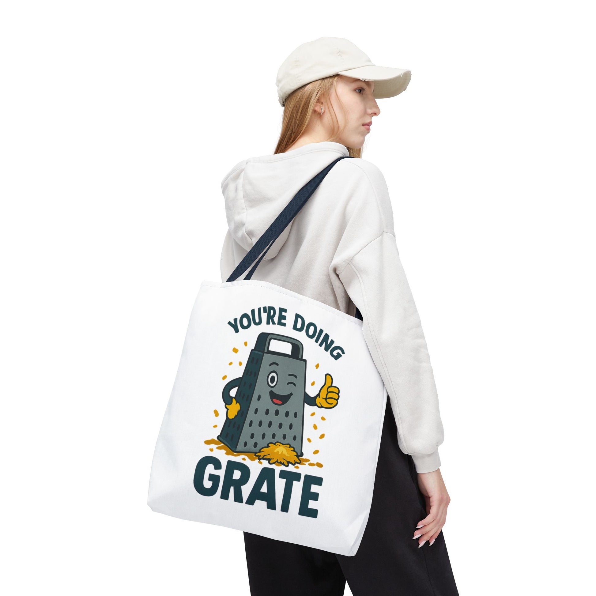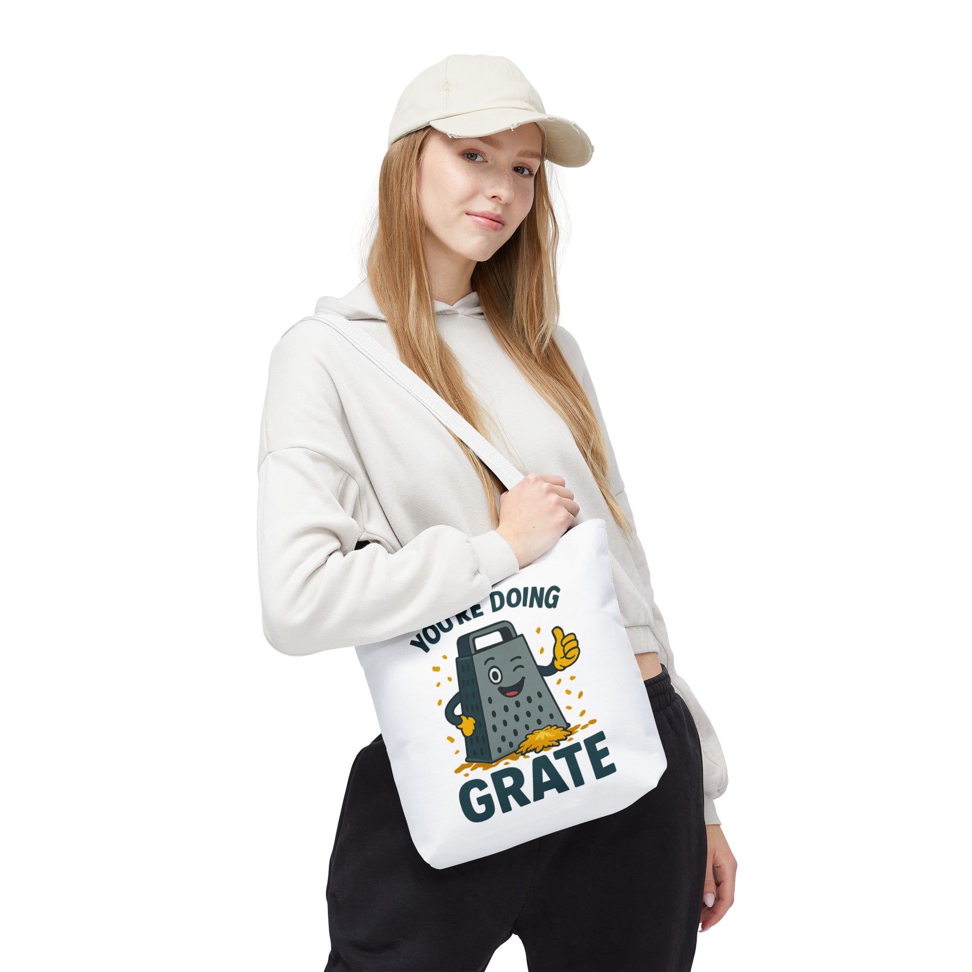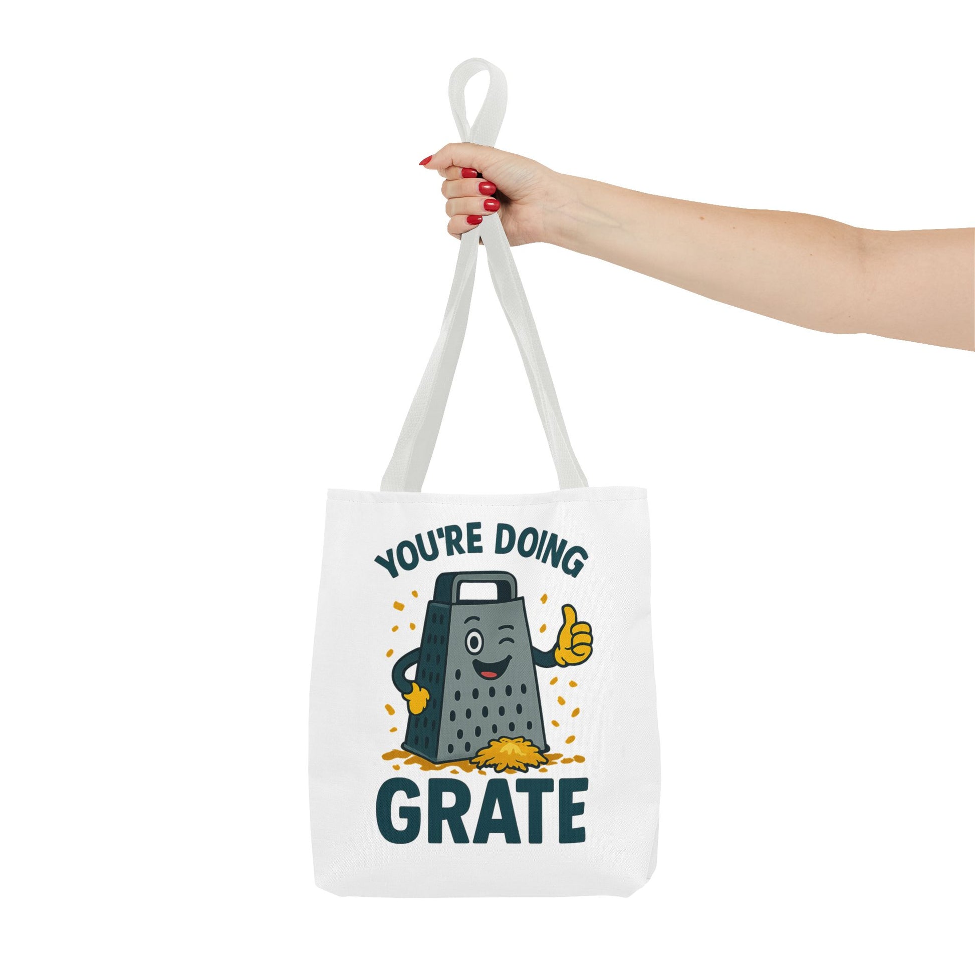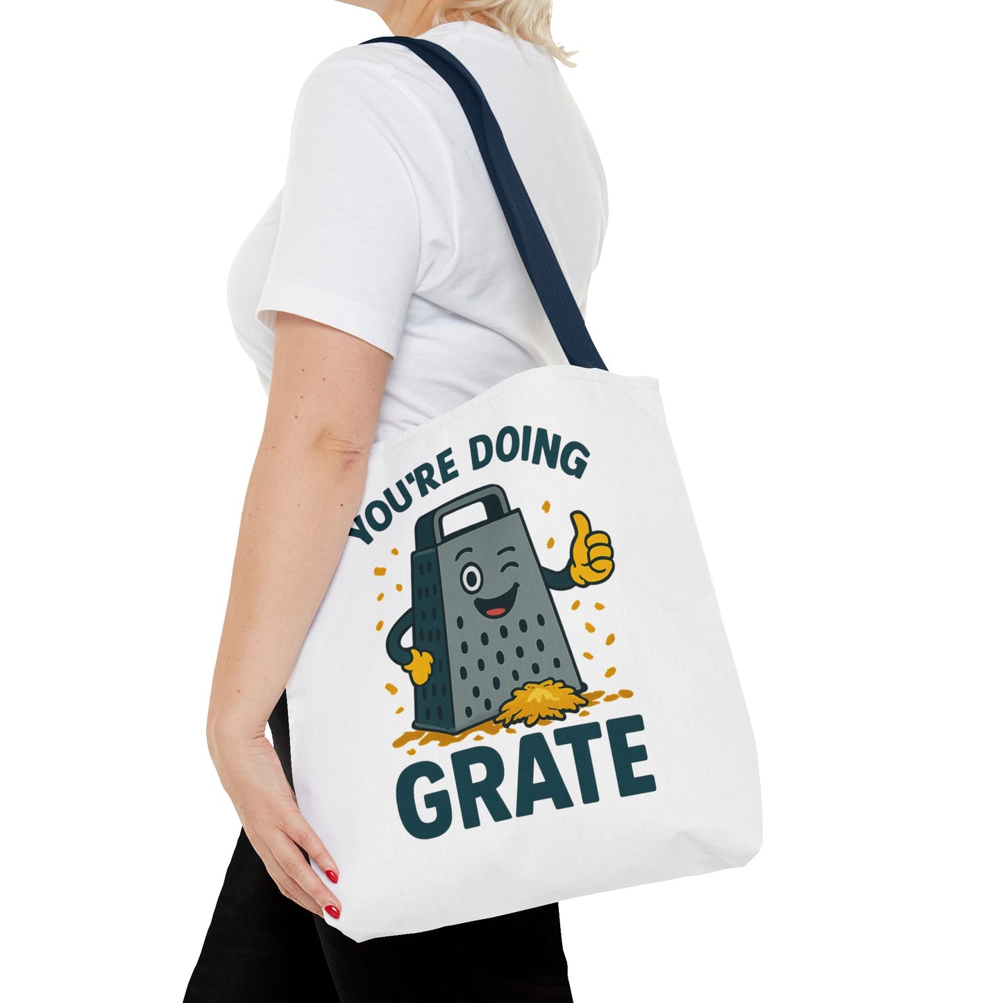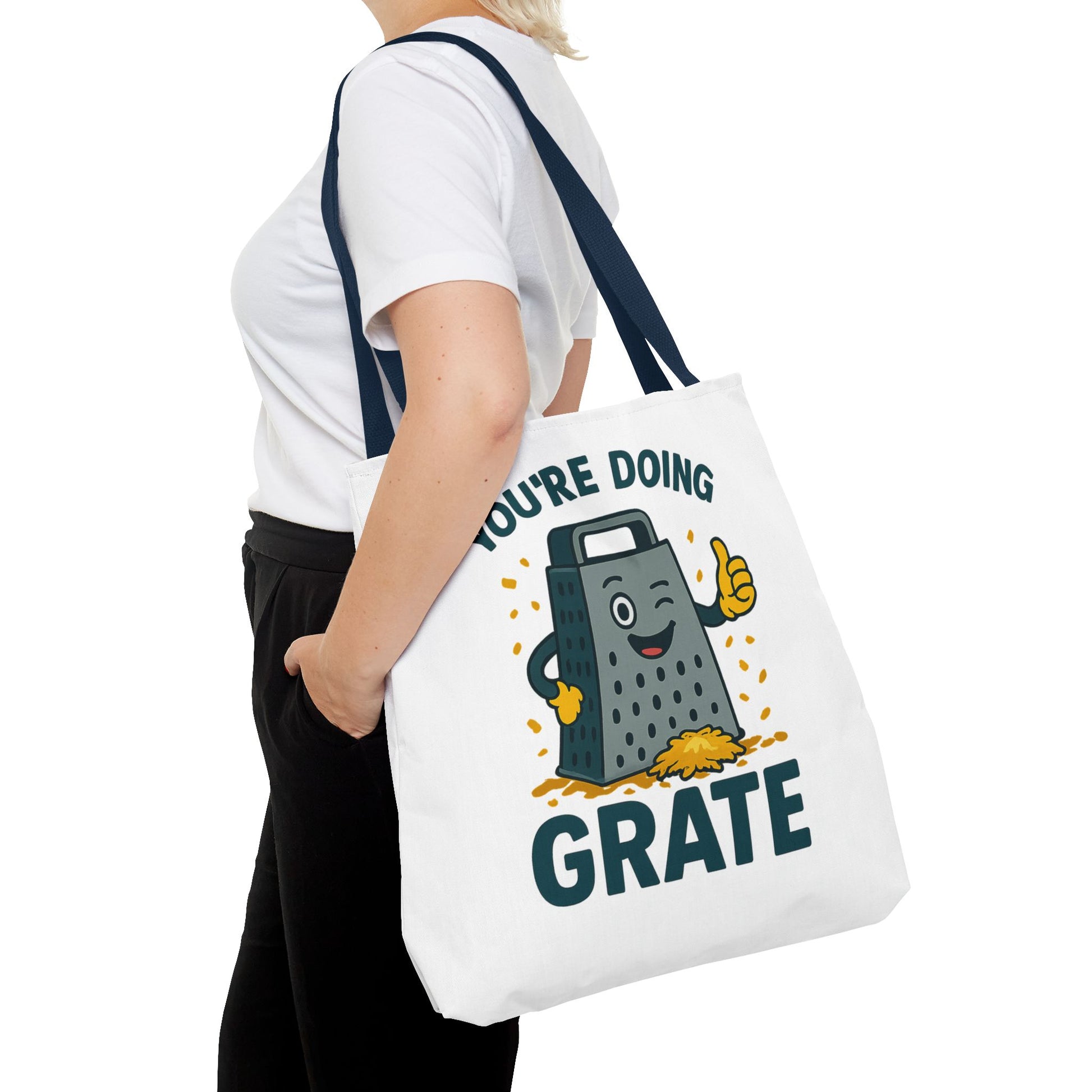 Cheer someone on while carrying all the things with this adorable “You’re Doing Grate” tote bag!