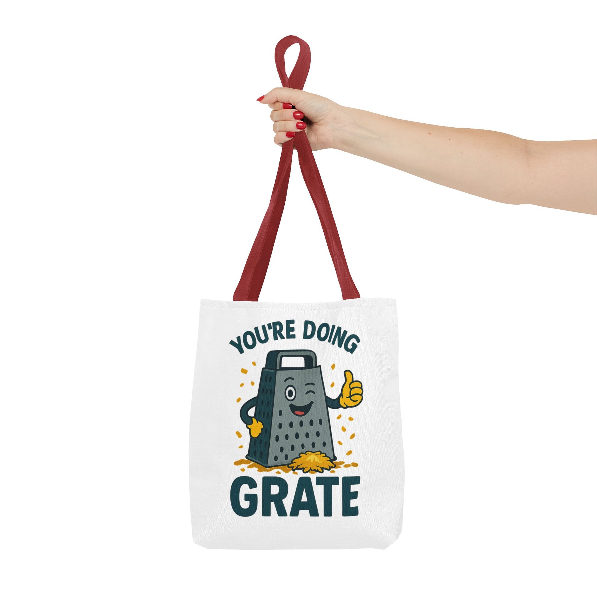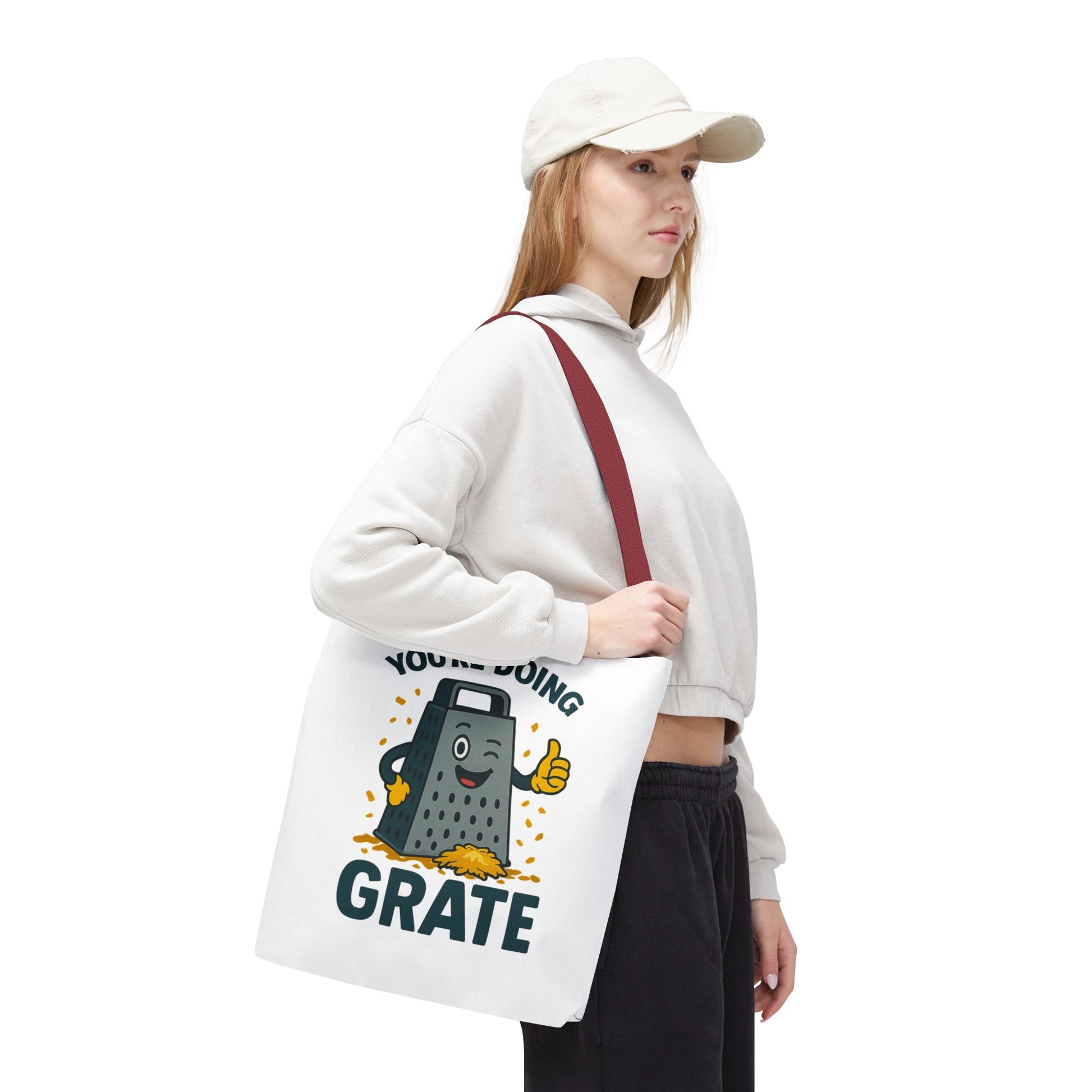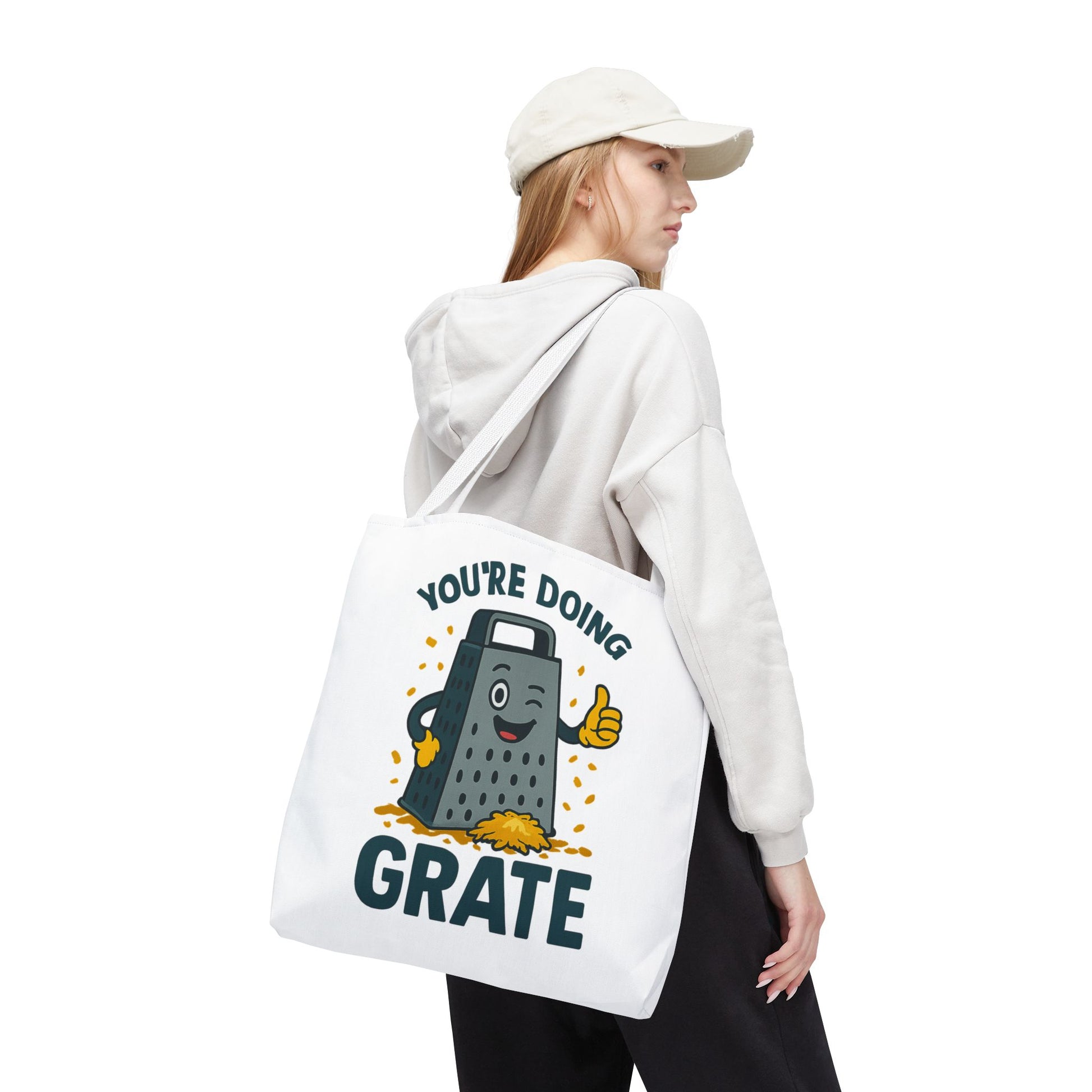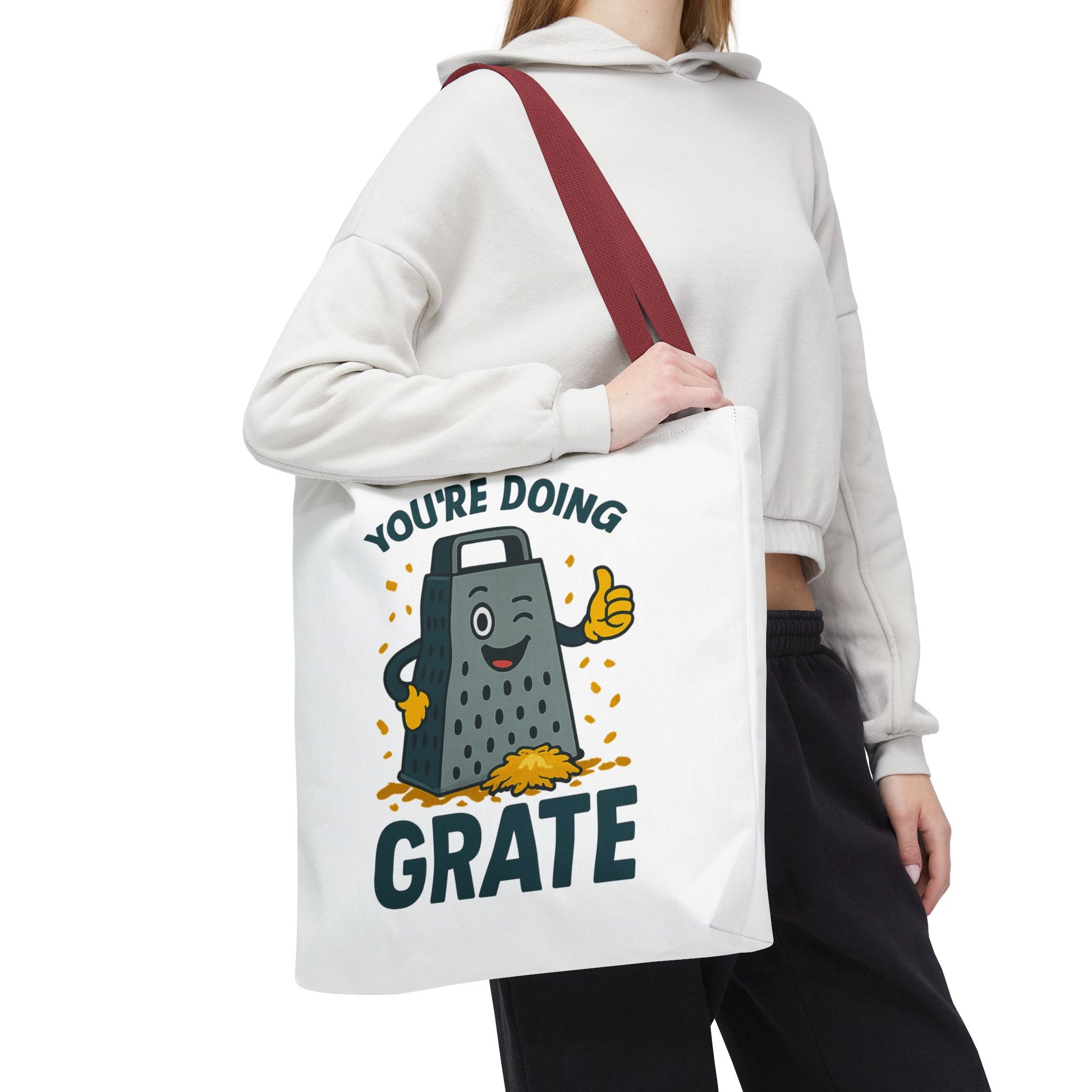 Cheer someone on while carrying all the things with this adorable “You’re Doing Grate” tote bag!