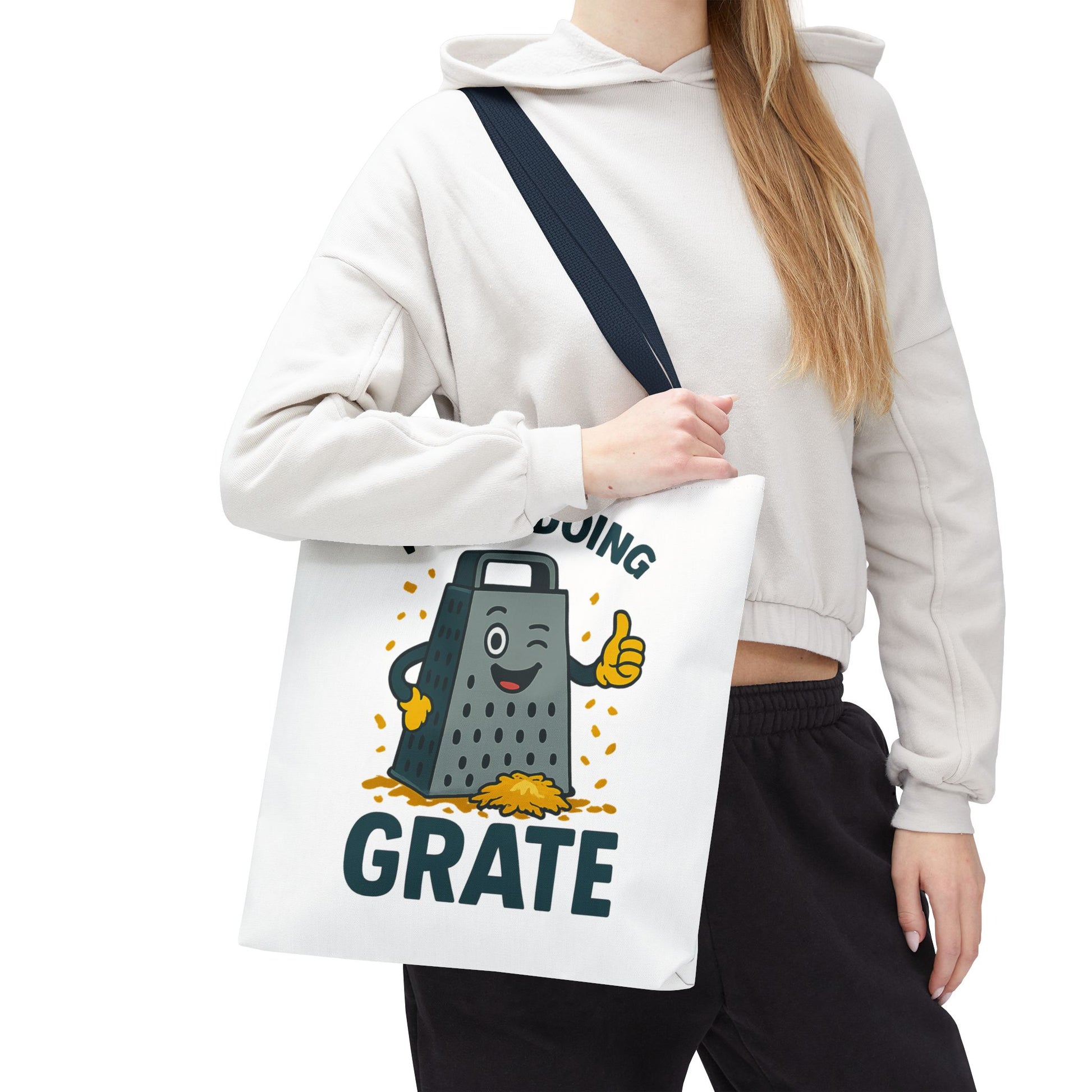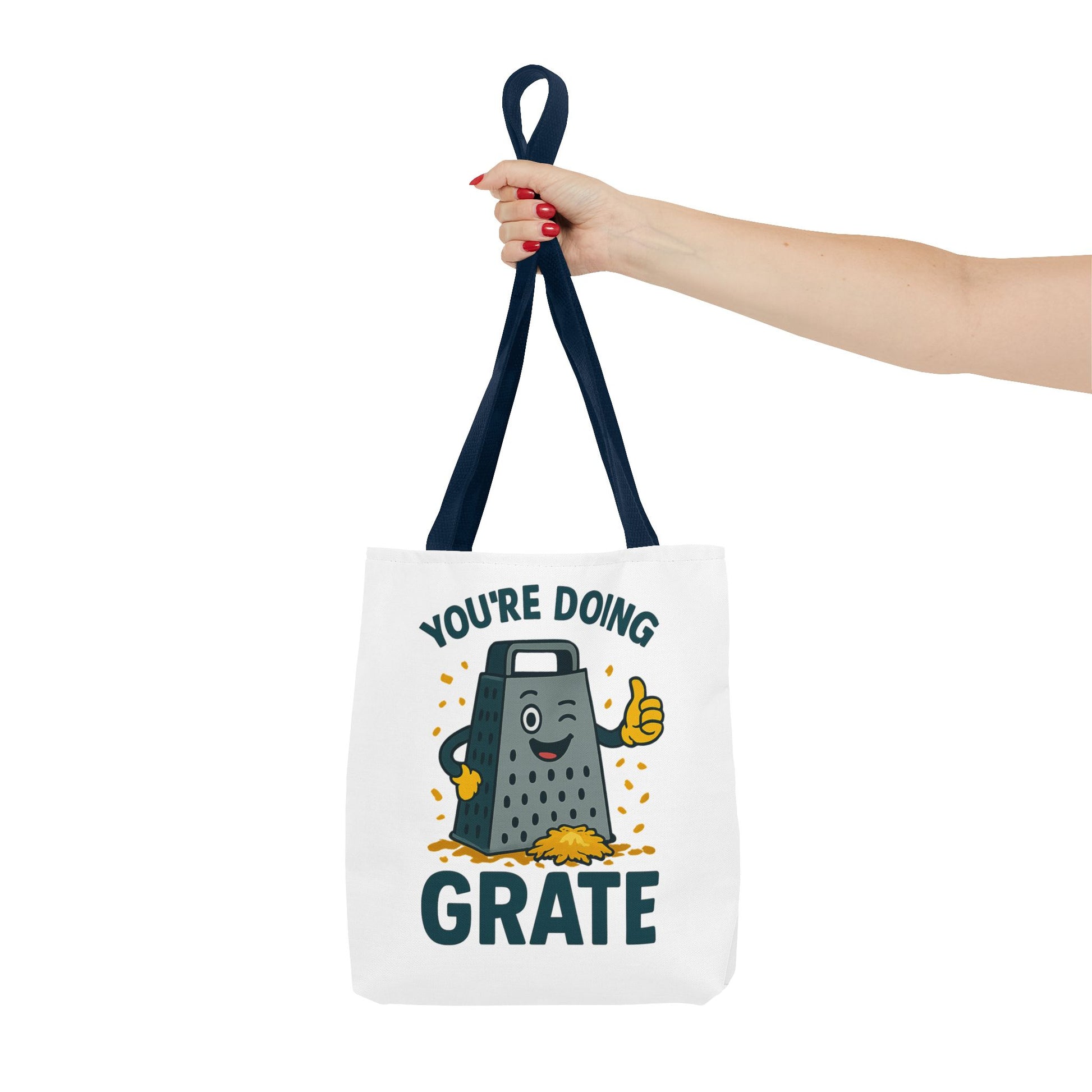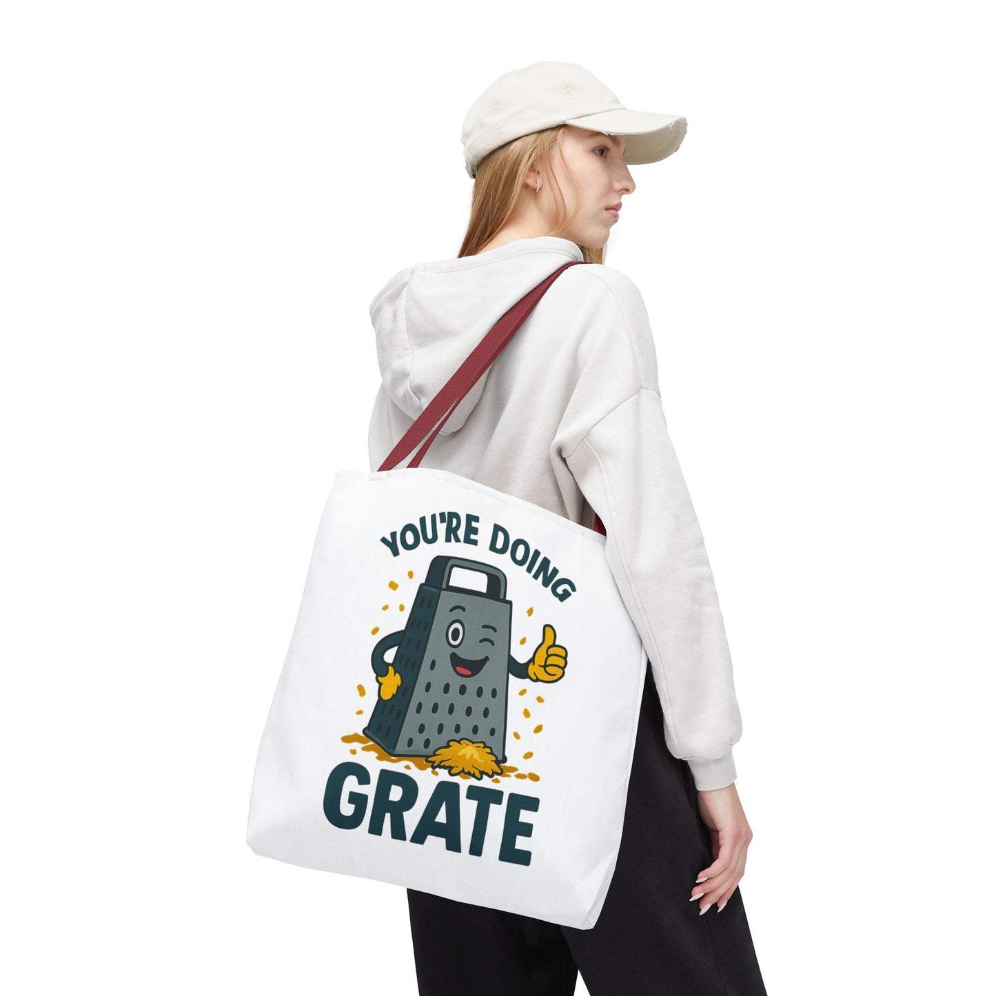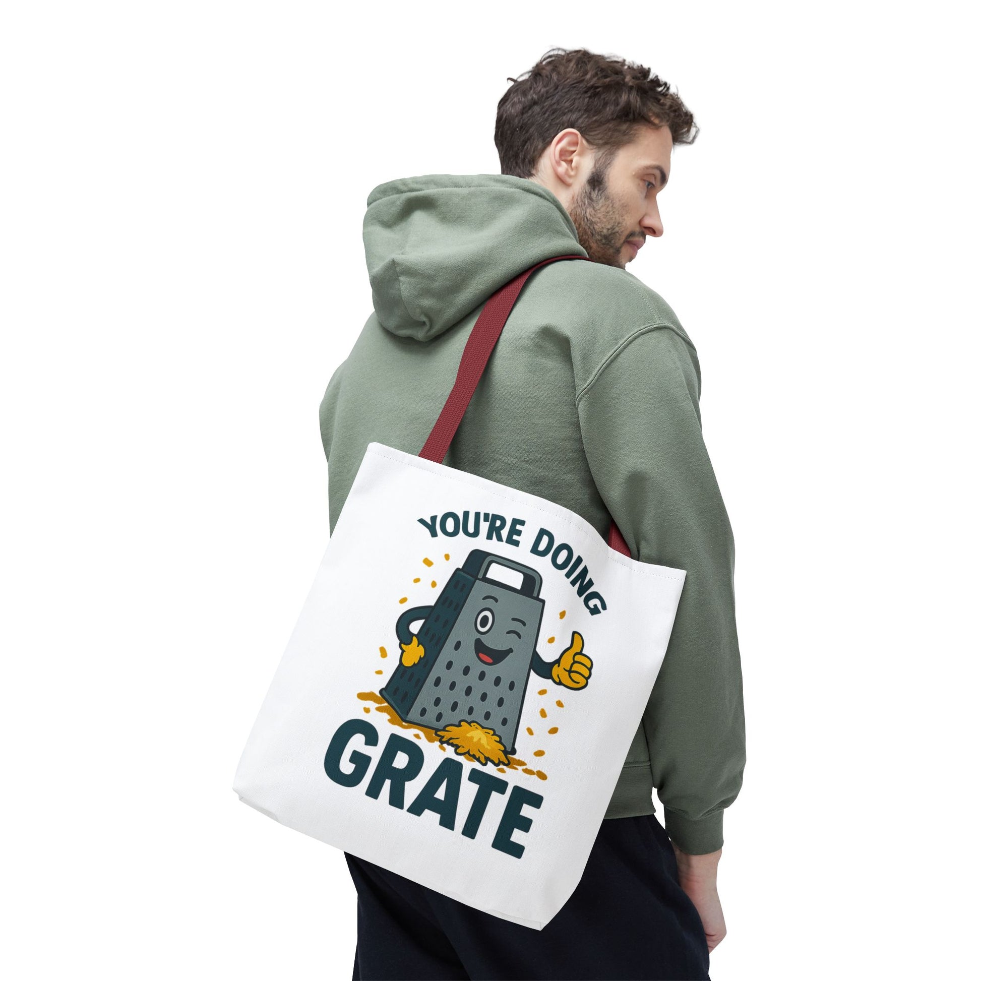 Cheer someone on while carrying all the things with this adorable “You’re Doing Grate” tote bag!