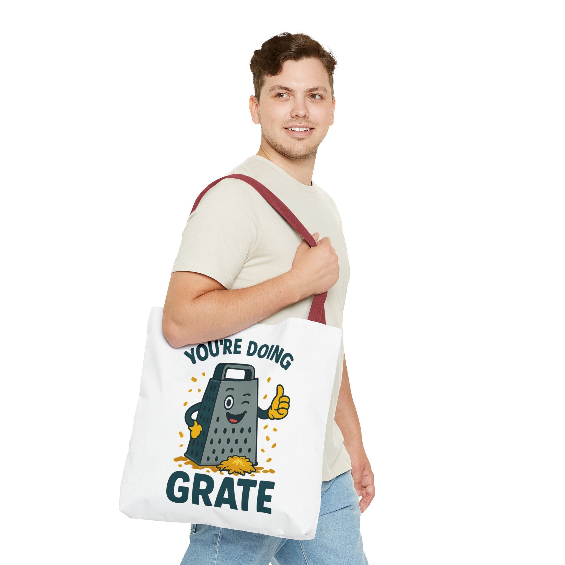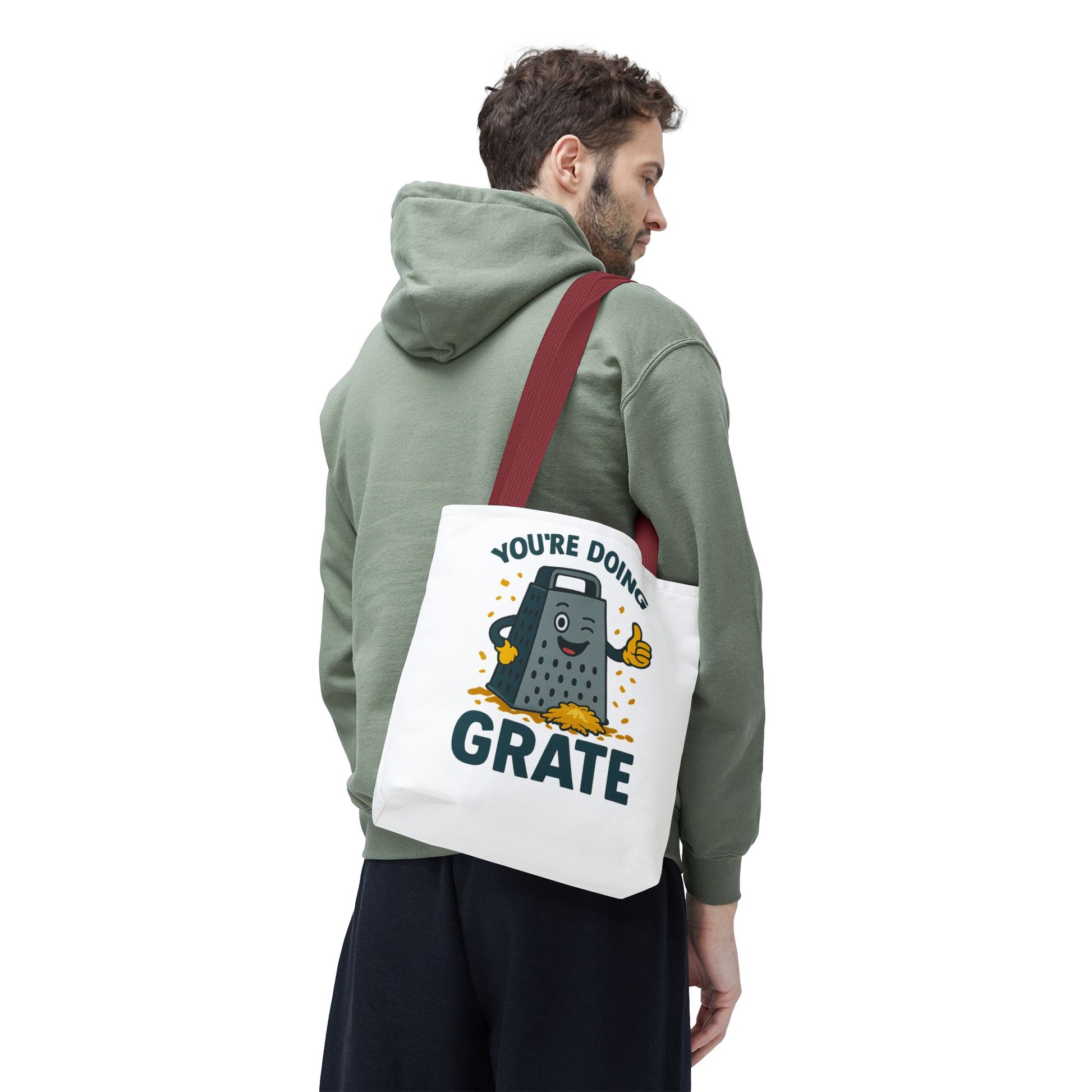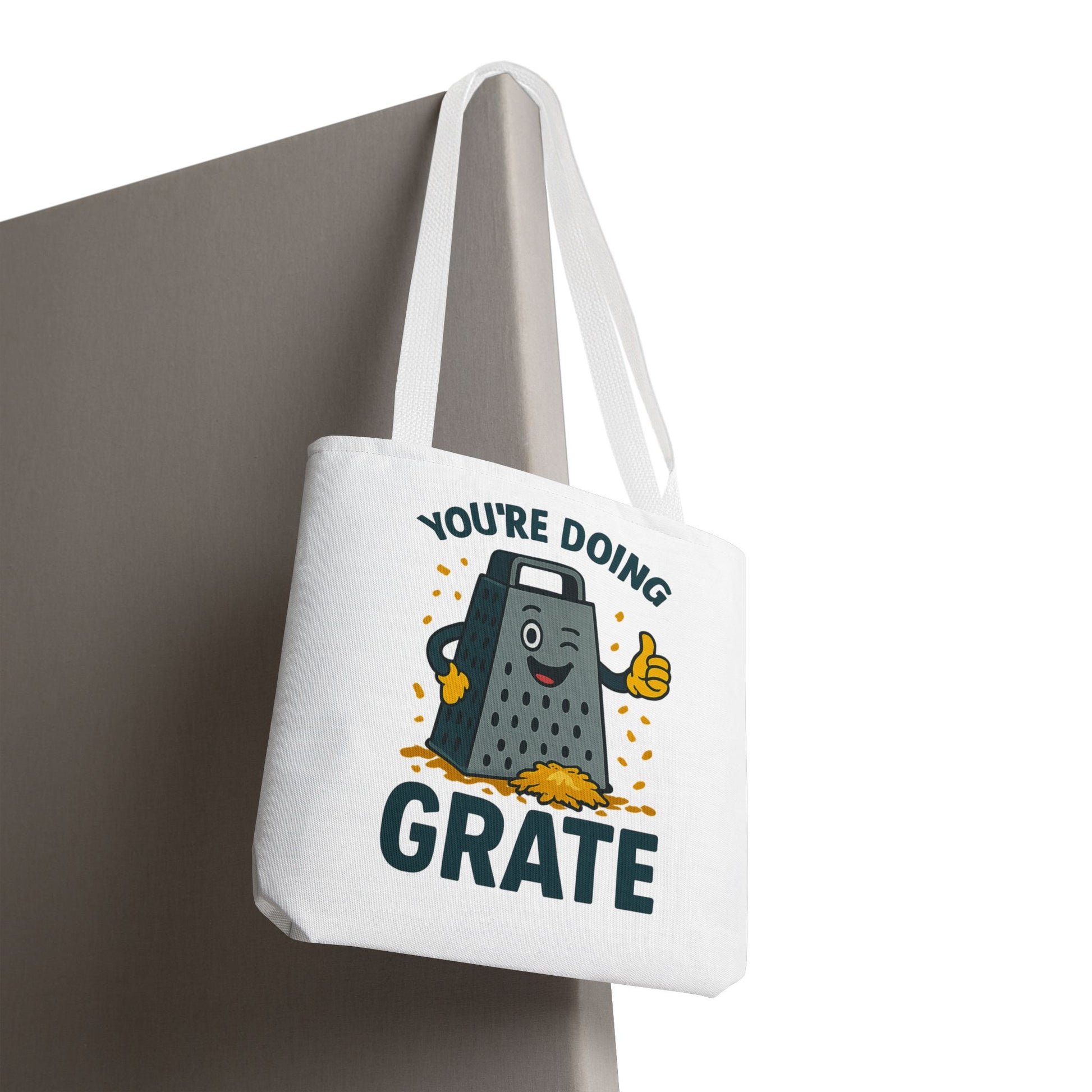 Funny Cheese Pun Tote Bag – “You’re Doing Grate” Grocery Bag | Cute Gift for Coworkers, Teachers, Food Lovers & Everyday Motivation