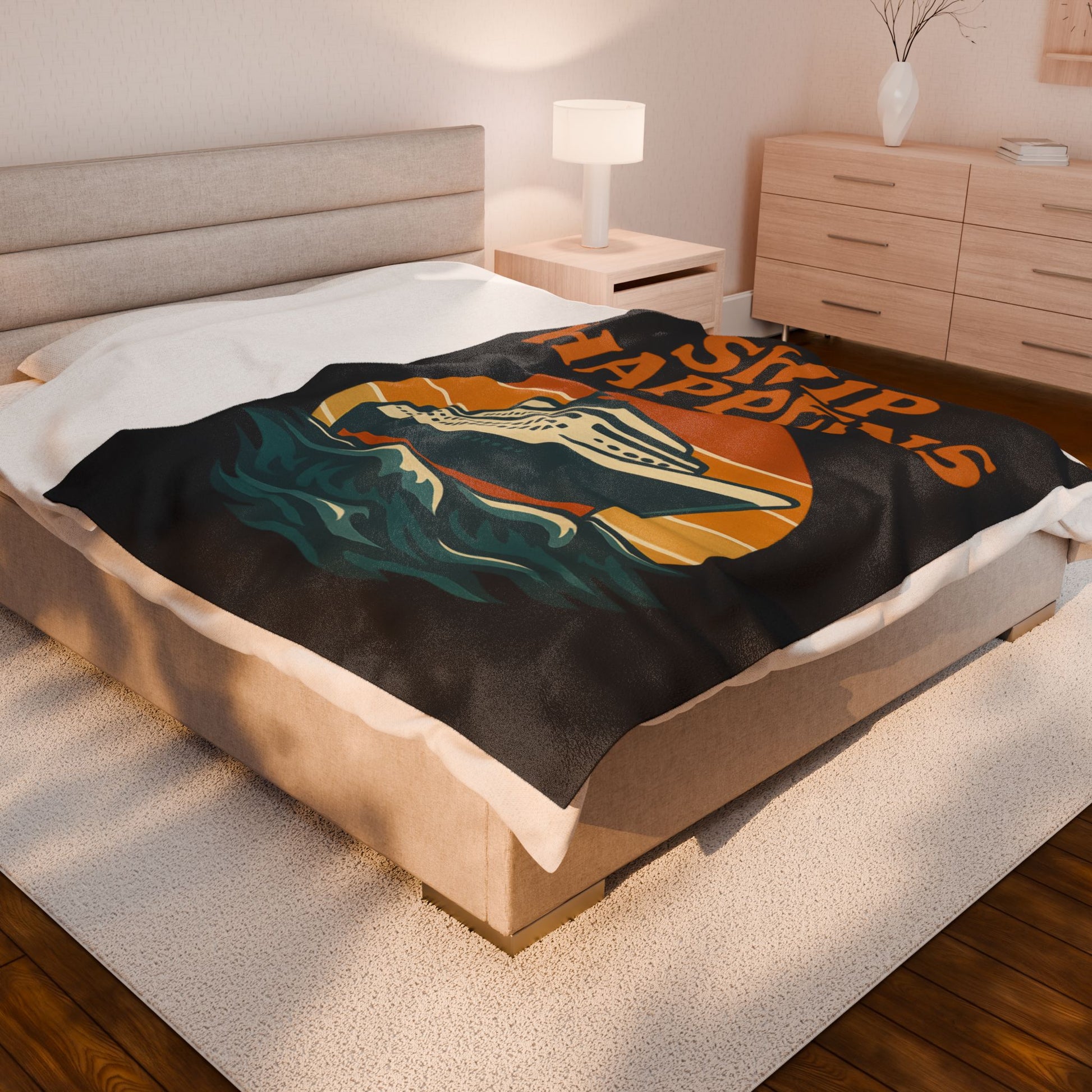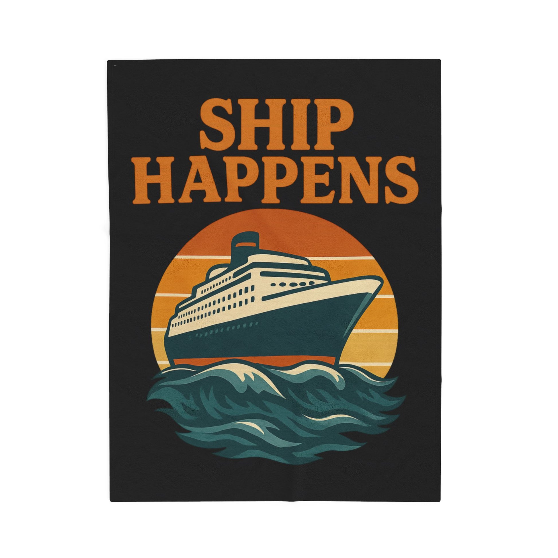Funny Cruise Blanket – “Ship Happens” Throw Blanket, Nautical Gift for Cruise Lover, Travel Pun Blanket, Boat Trip Must-Have
