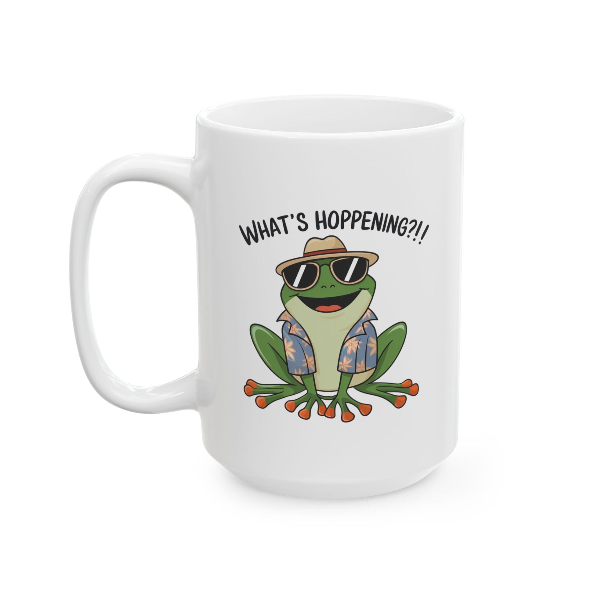 What’s Hoppening?! Frog Mug – Funny Tropical Frog in Hawaiian Shirt Coffee Cup, Cute Animal Ceramic Mug, Funky Gift for Frog Lovers