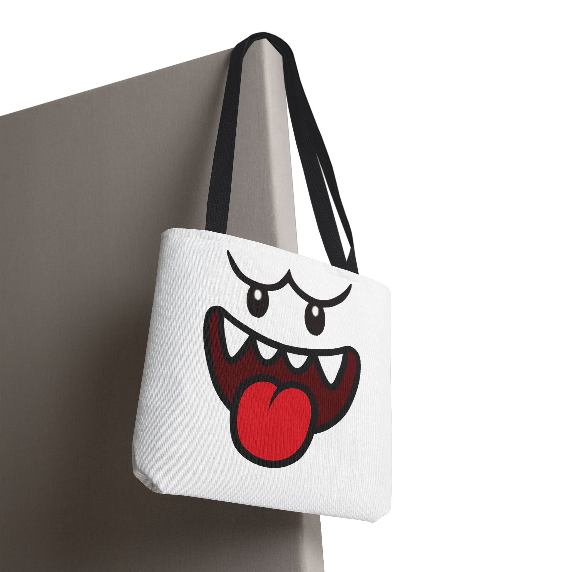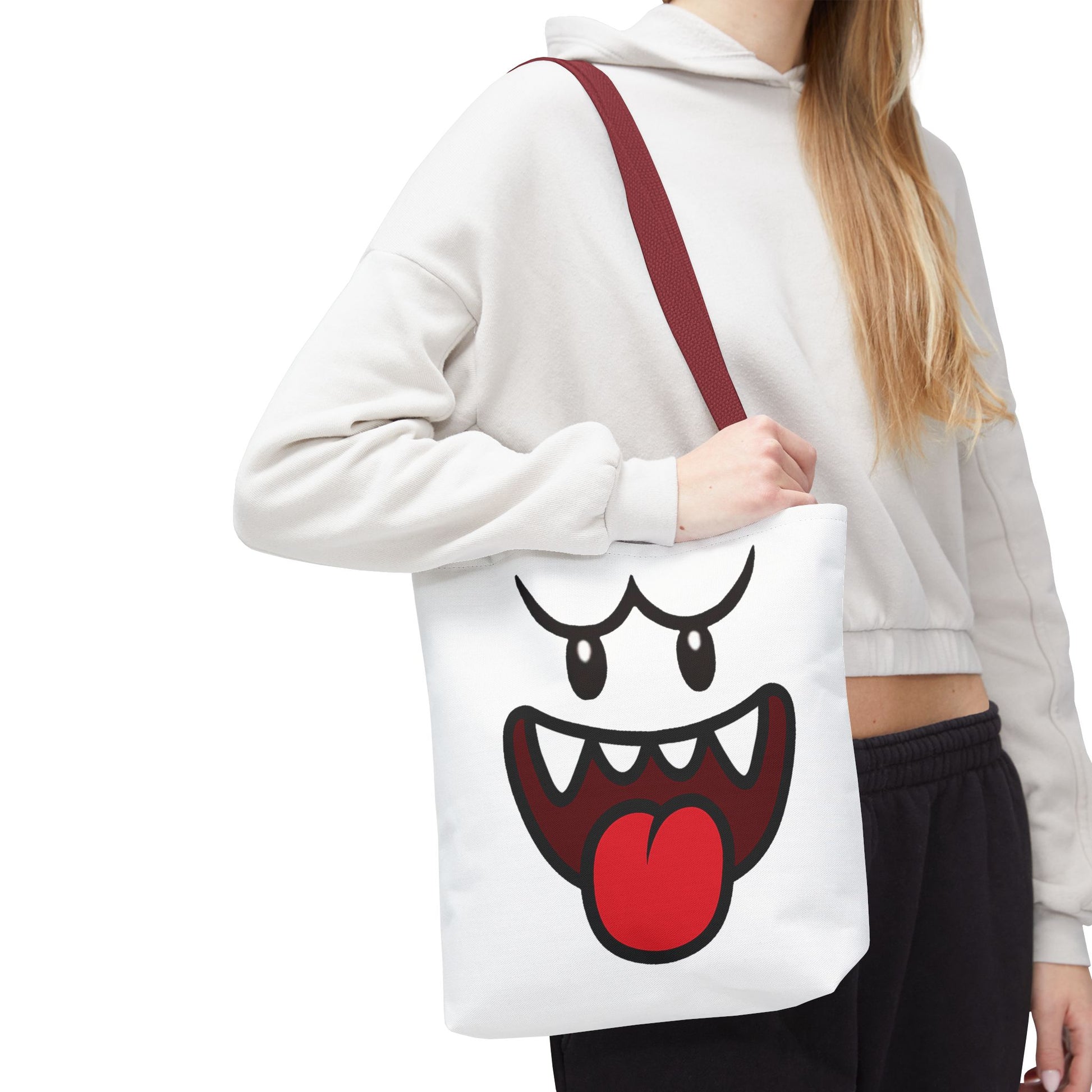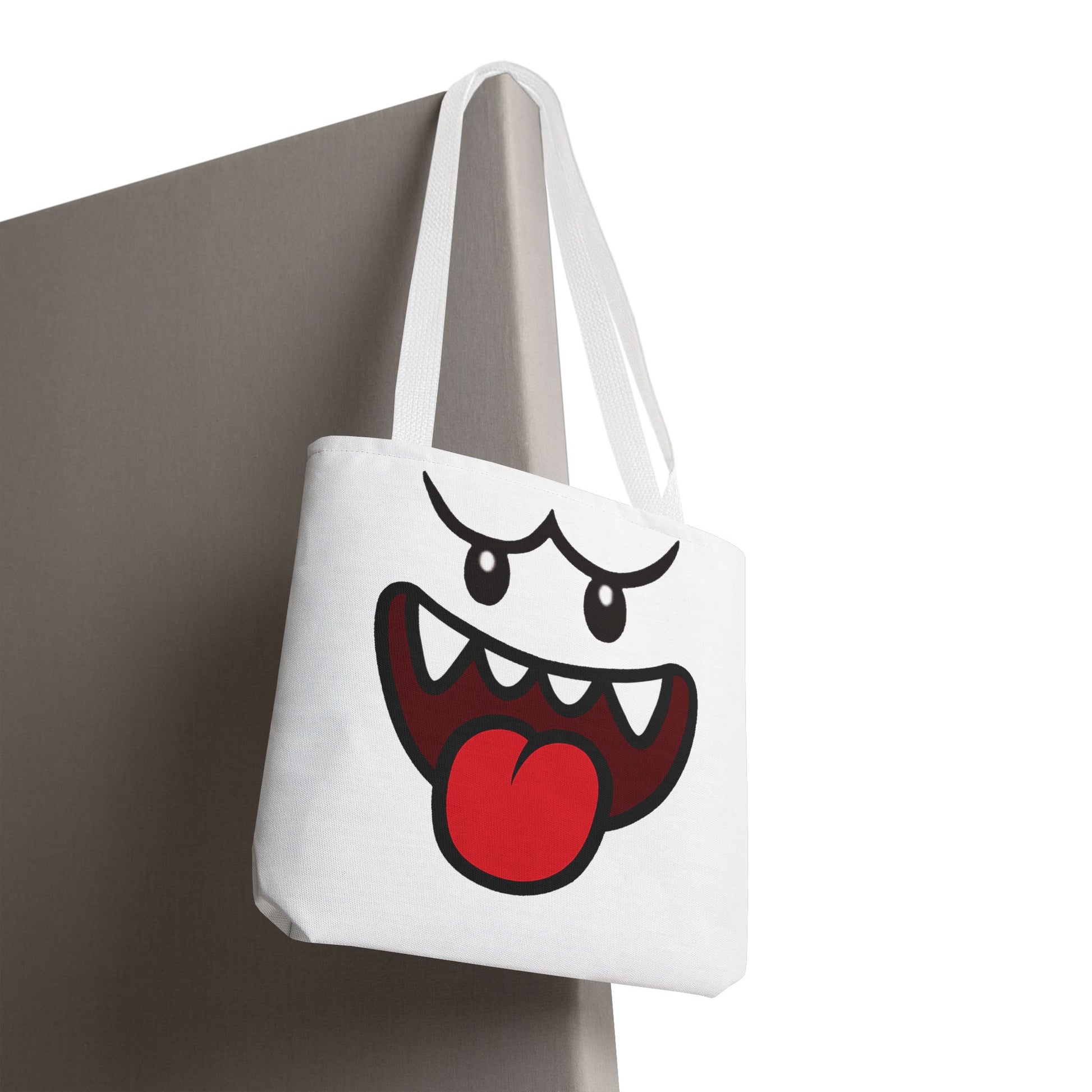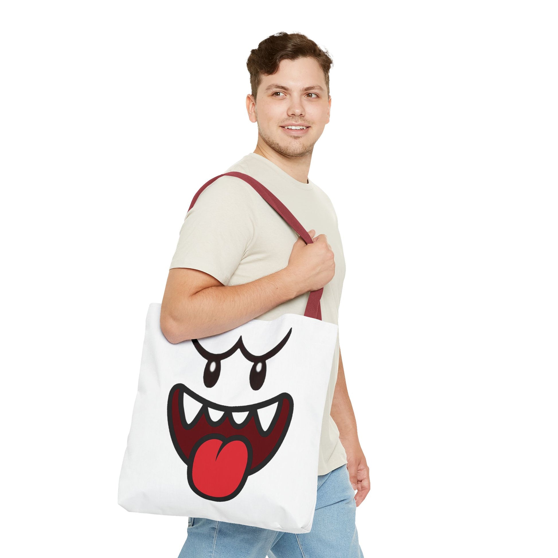 Carry spooky vibes everywhere with this Funny Ghost Face Tote Bag, featuring a creepy-cute design with wide eyes, sharp teeth, and a tongue-out expression. Perfect for Halloween, gaming fans, or anyone who loves novelty accessories.