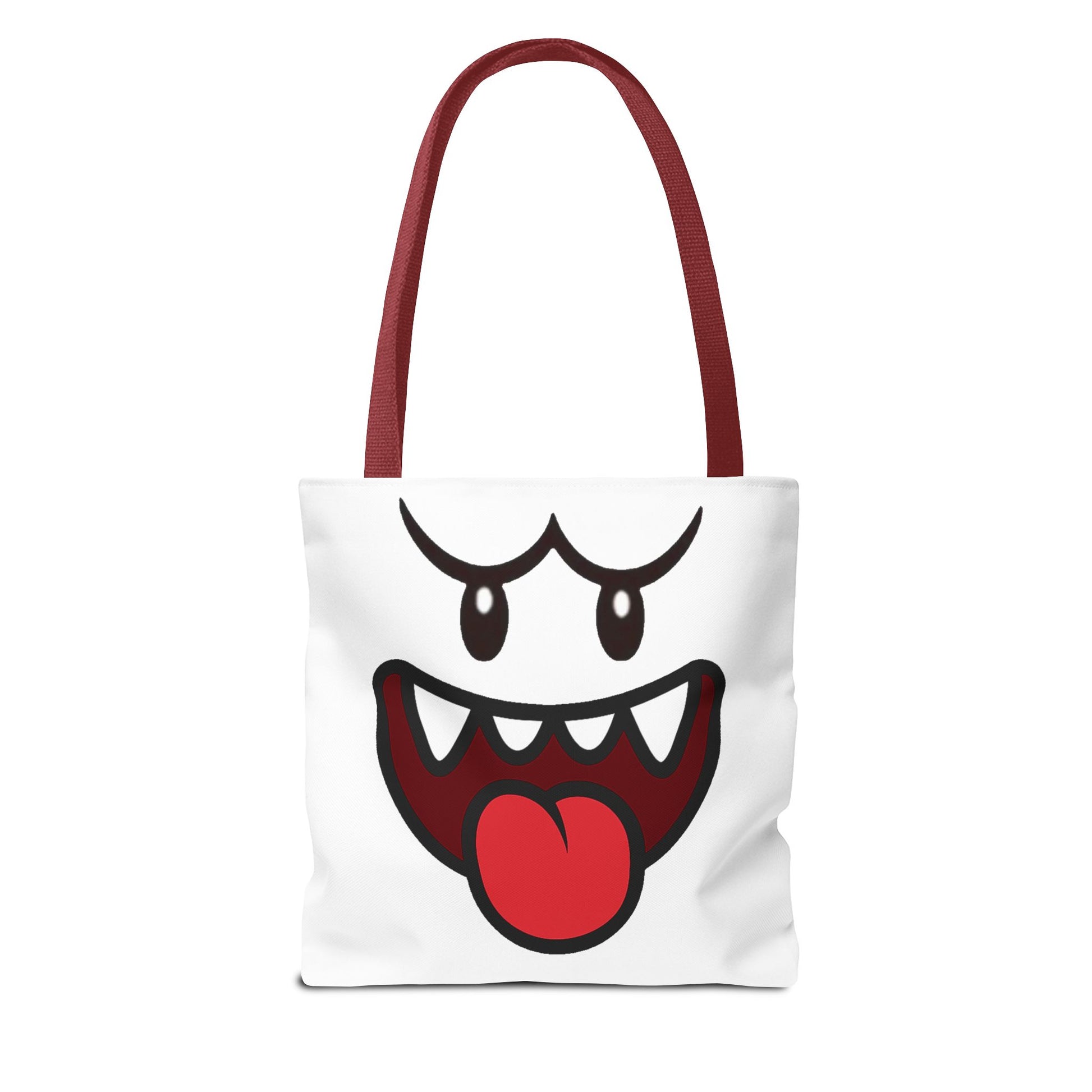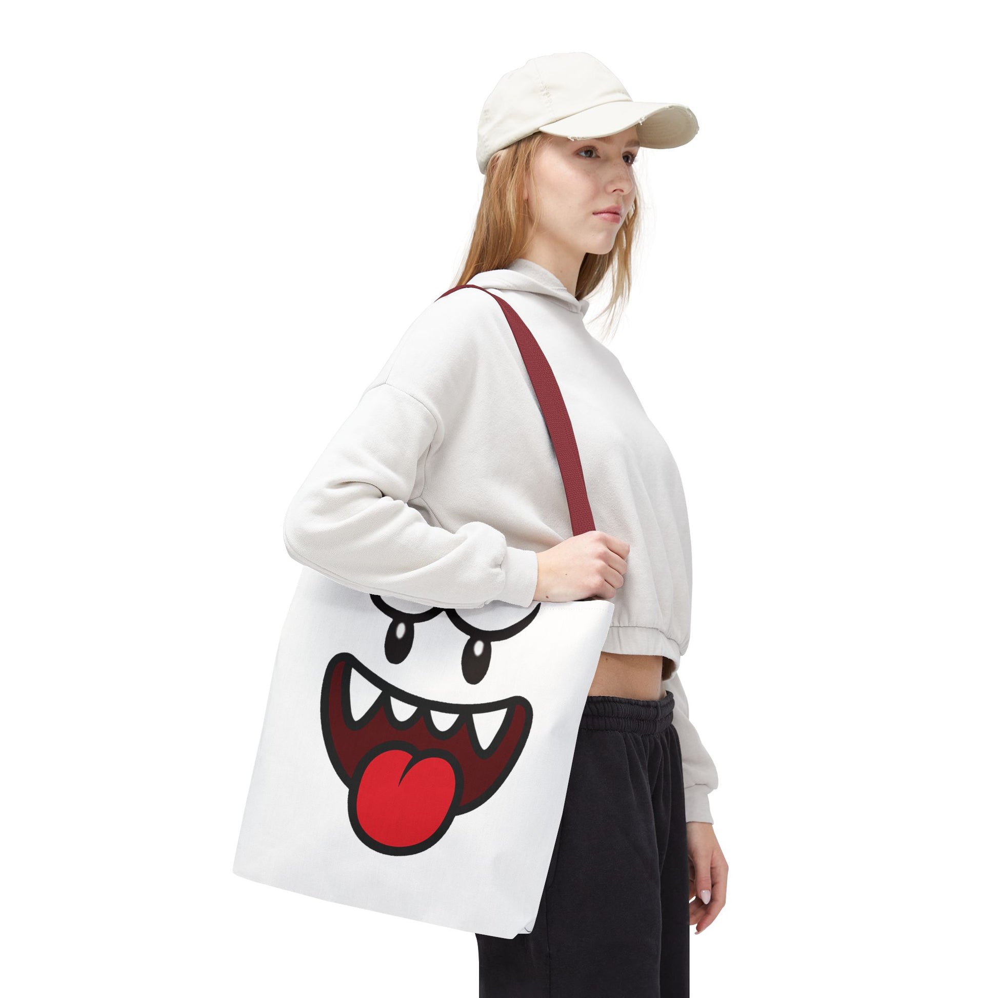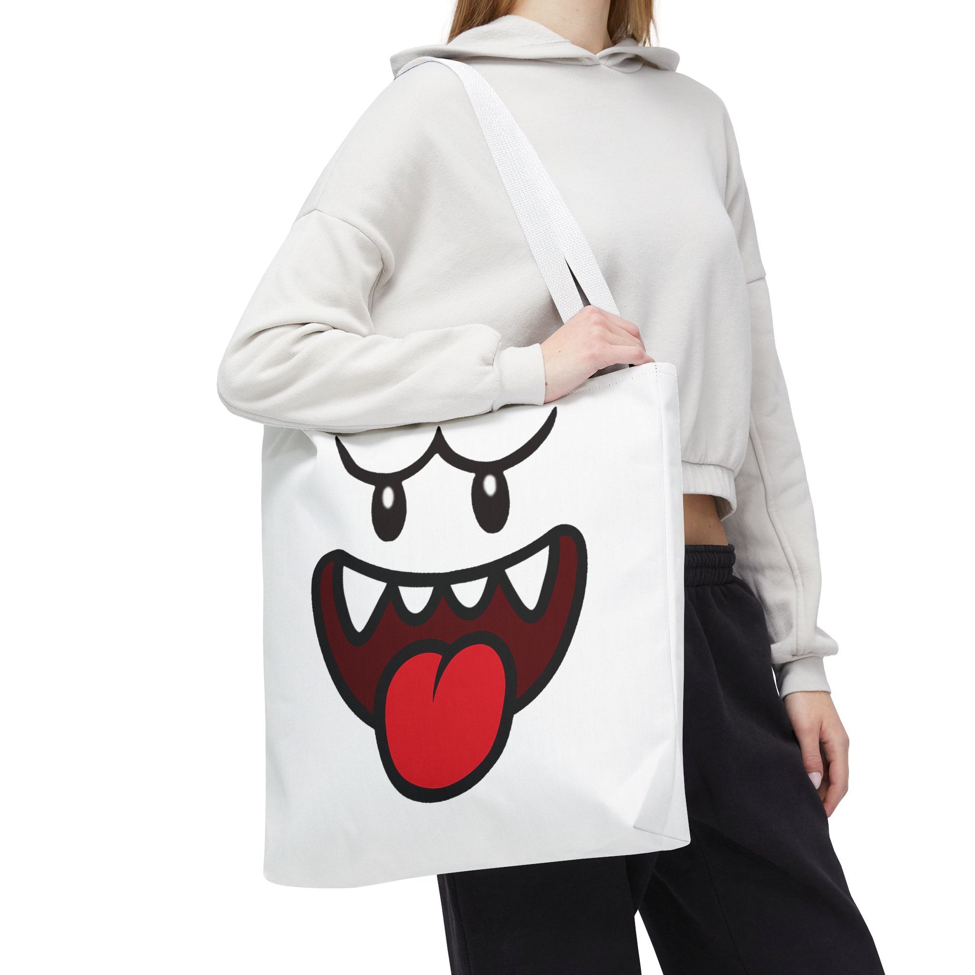 Carry spooky vibes everywhere with this Funny Ghost Face Tote Bag, featuring a creepy-cute design with wide eyes, sharp teeth, and a tongue-out expression. Perfect for Halloween, gaming fans, or anyone who loves novelty accessories.
