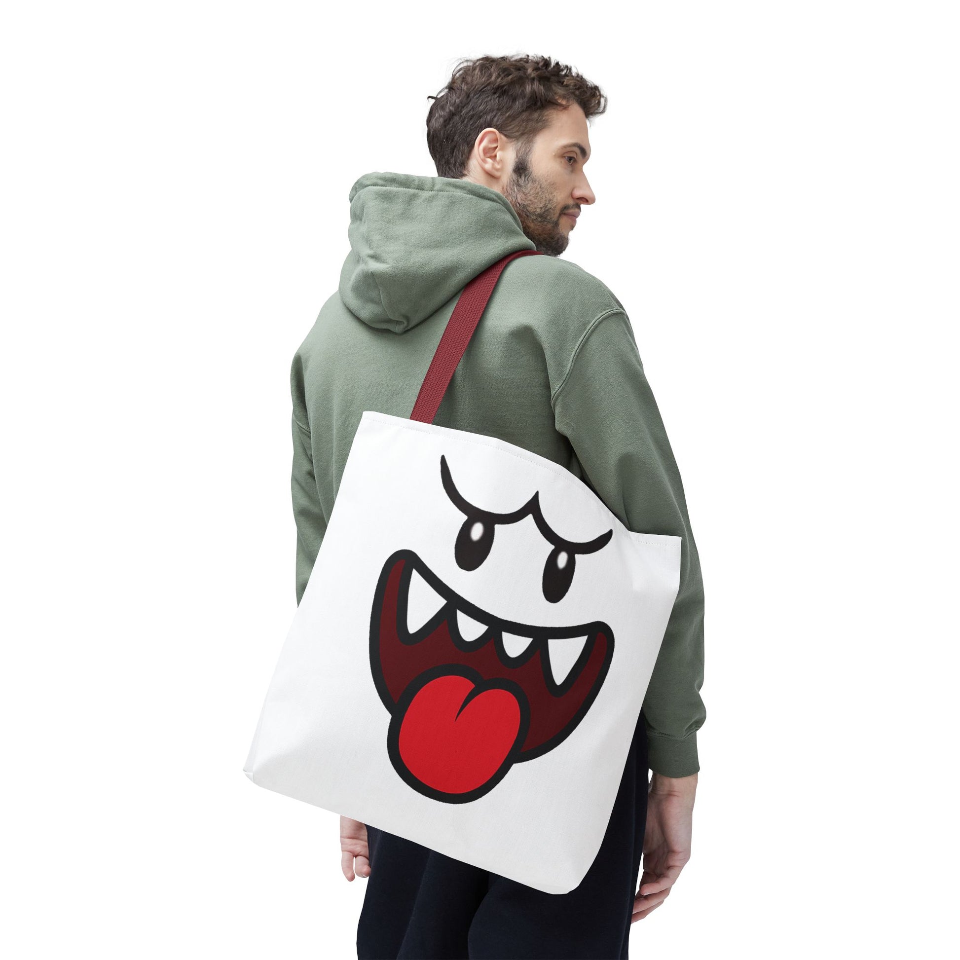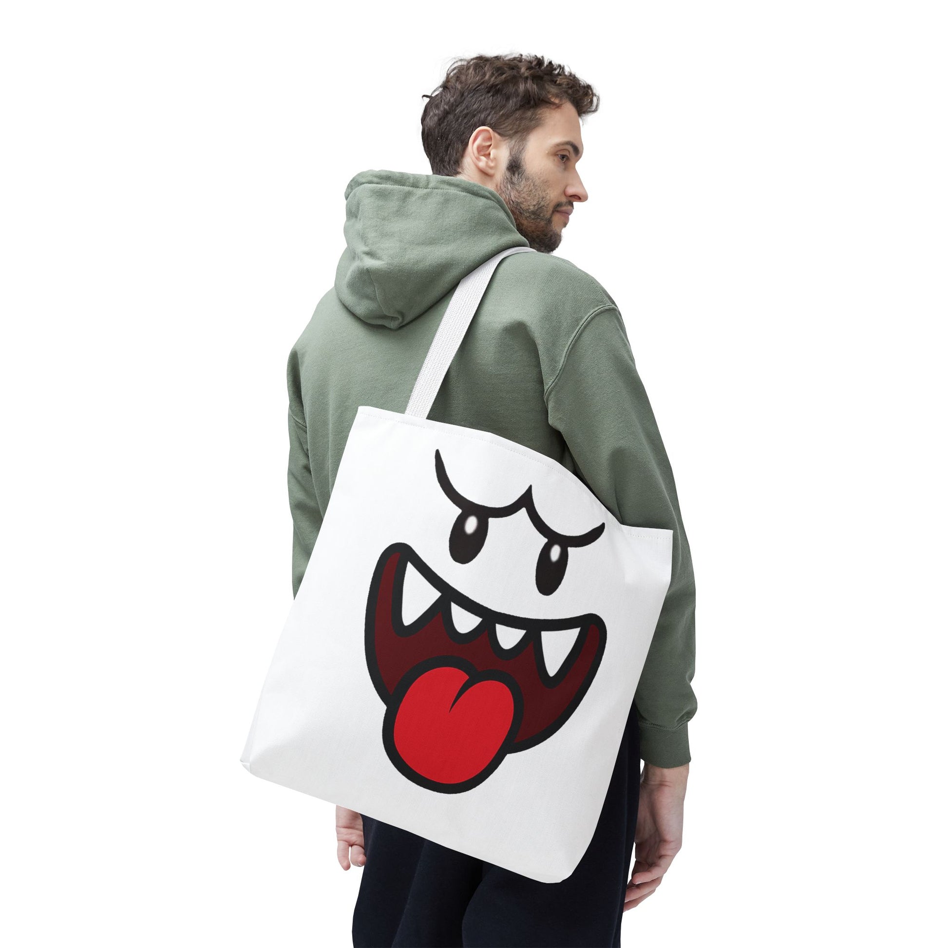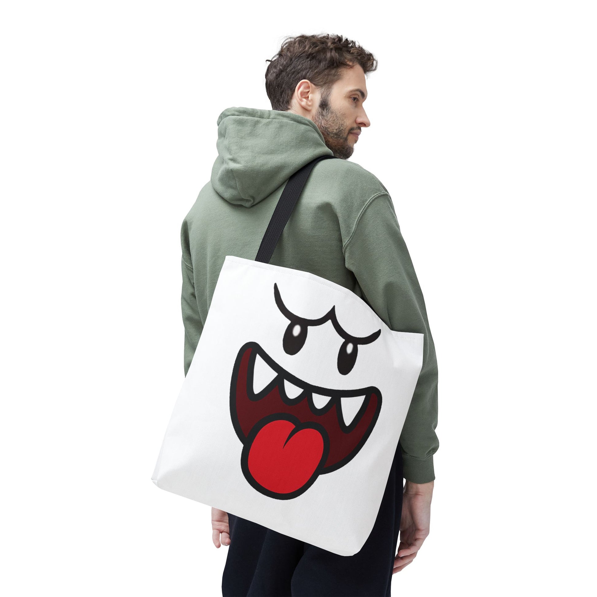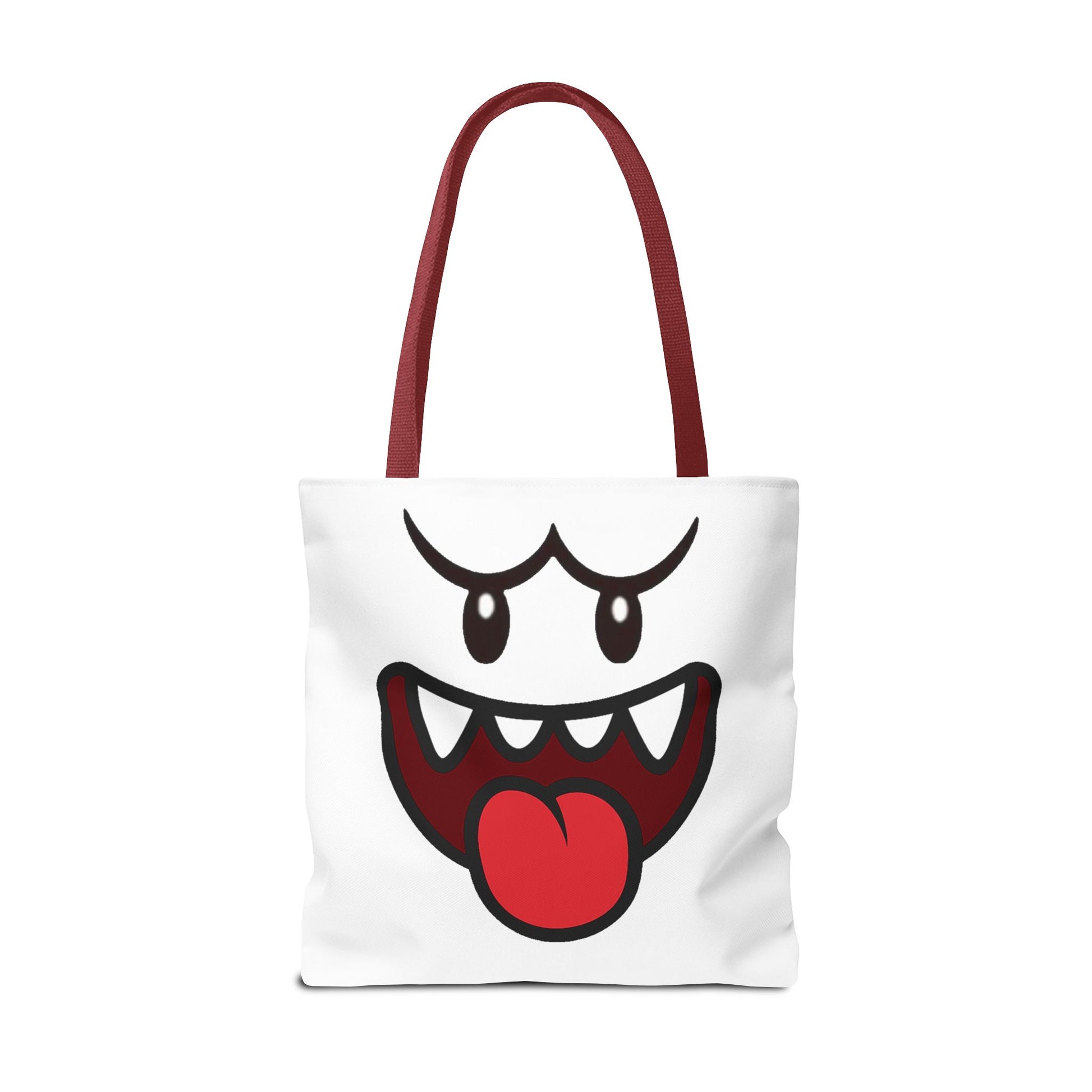 Carry spooky vibes everywhere with this Funny Ghost Face Tote Bag, featuring a creepy-cute design with wide eyes, sharp teeth, and a tongue-out expression. Perfect for Halloween, gaming fans, or anyone who loves novelty accessories.