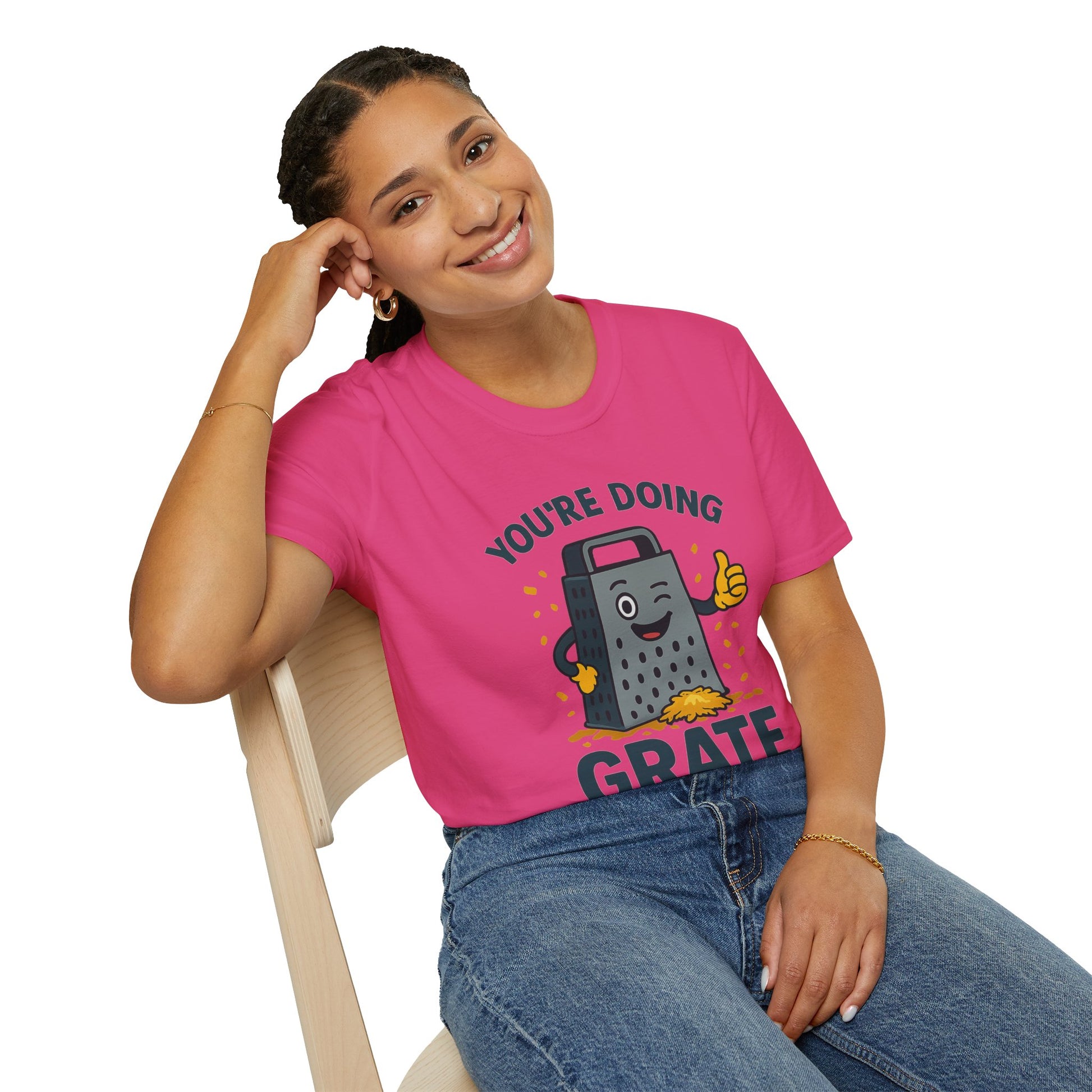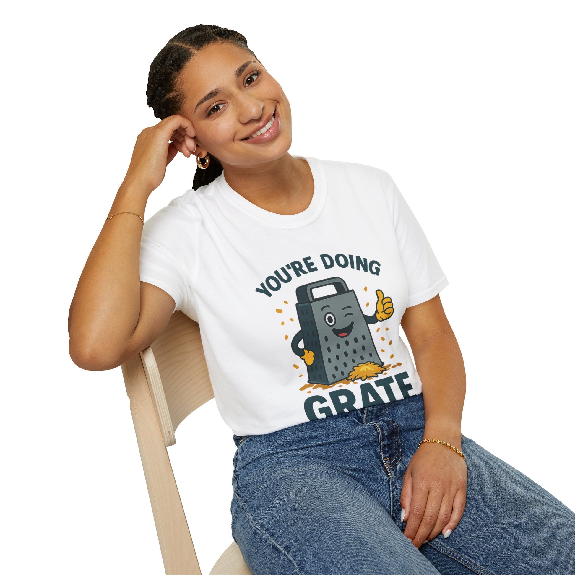 You’re Doing Grate Funny Cheese Grater Pun T-Shirt | Cute Kitchen Humor Graphic Tee | Encouragement Gift for Food & Pun Lovers
