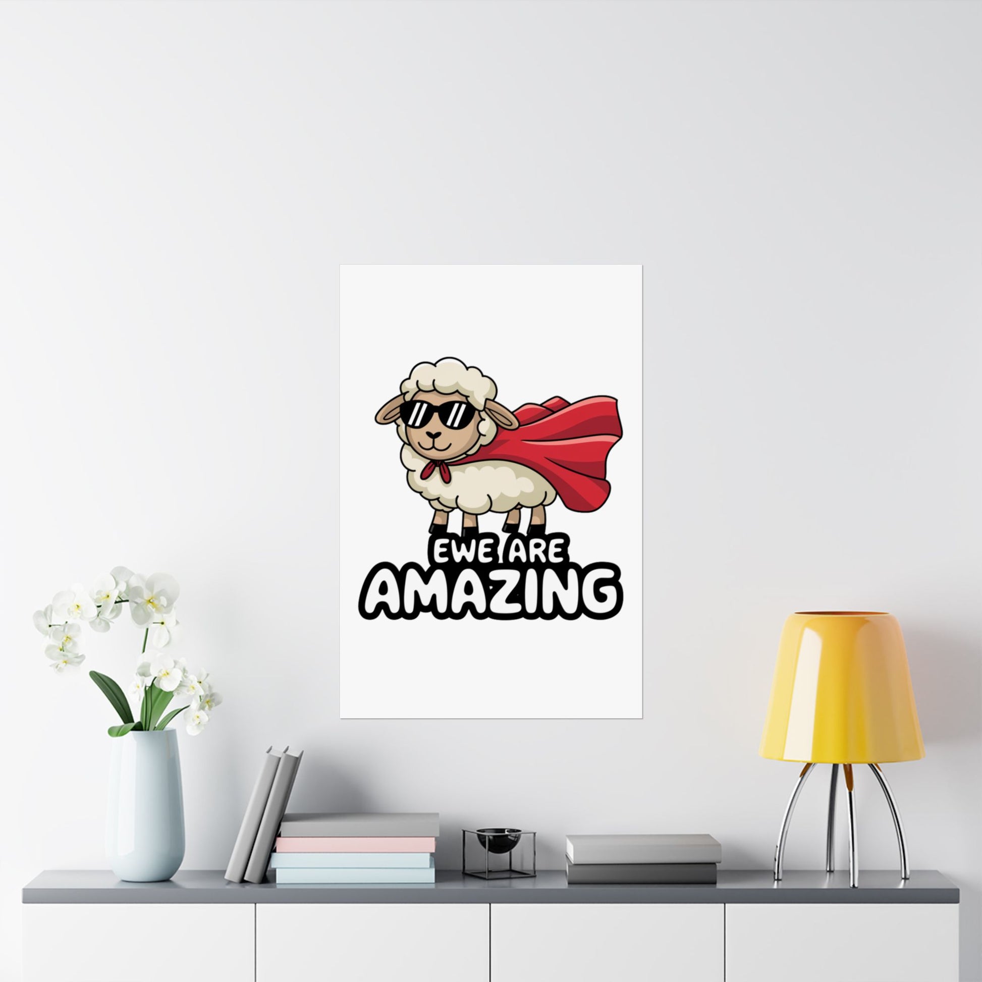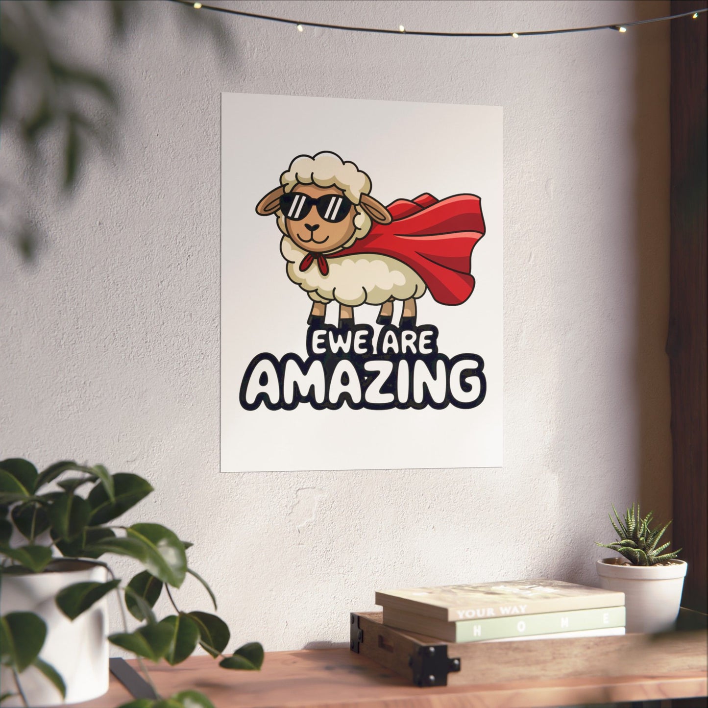 Funny Sheep Poster – “Ewe Are Amazing” Wall Art, Cute Animal Pun Print for Classroom, Kids Room, or Office Decor