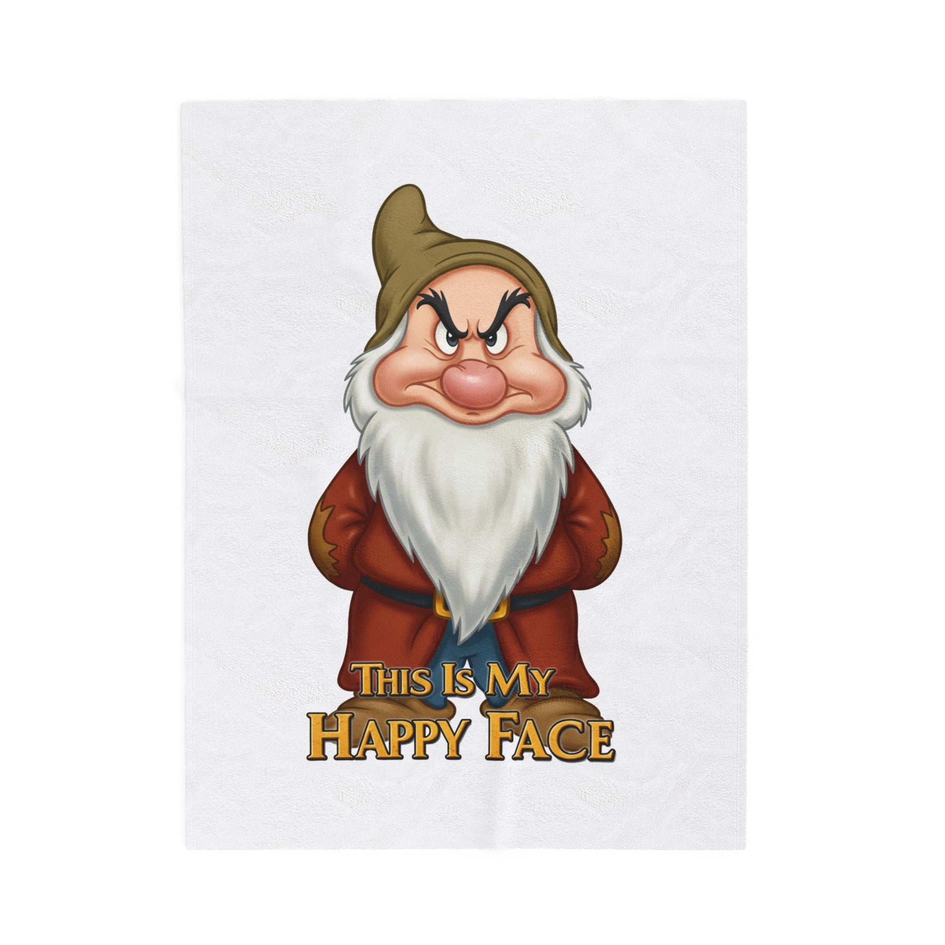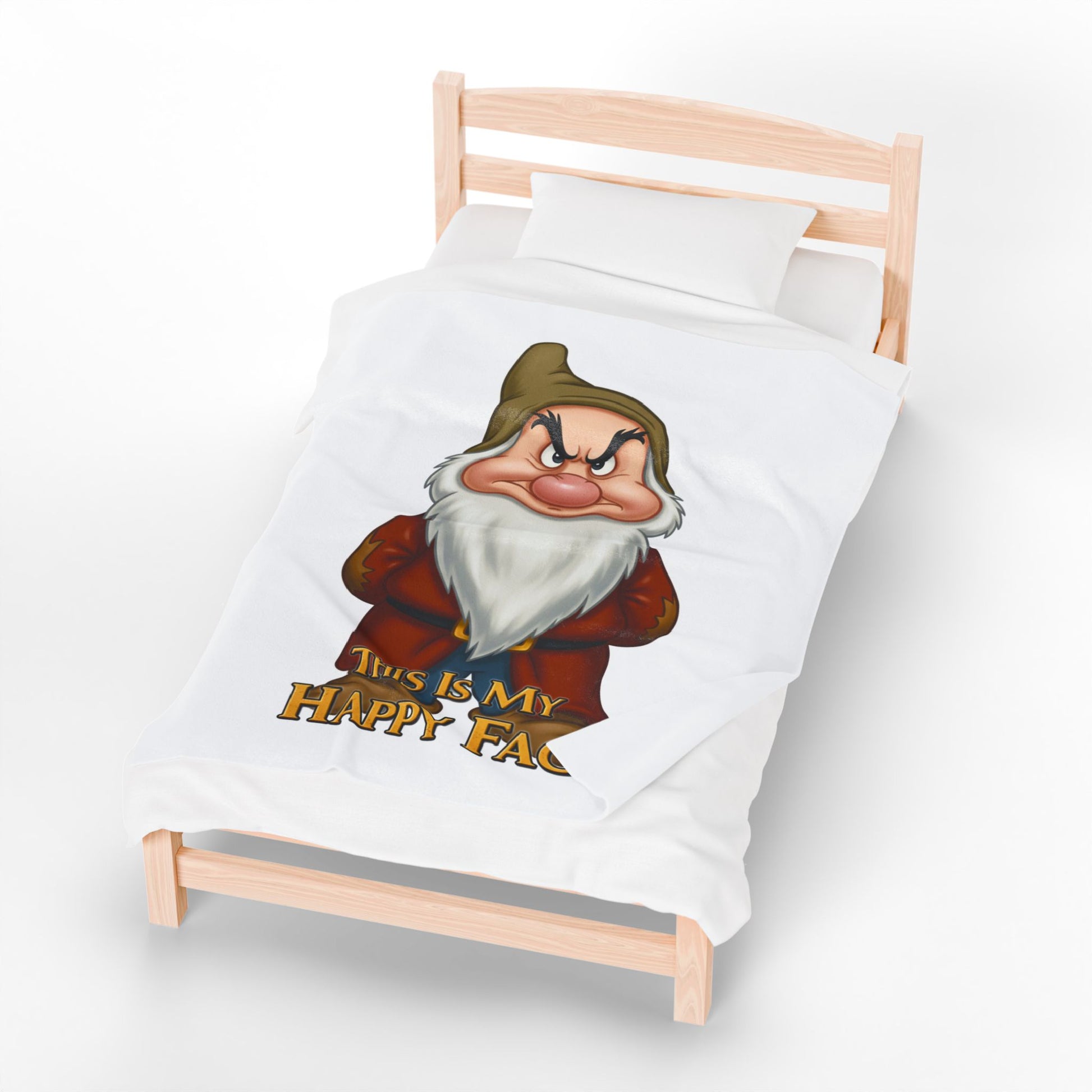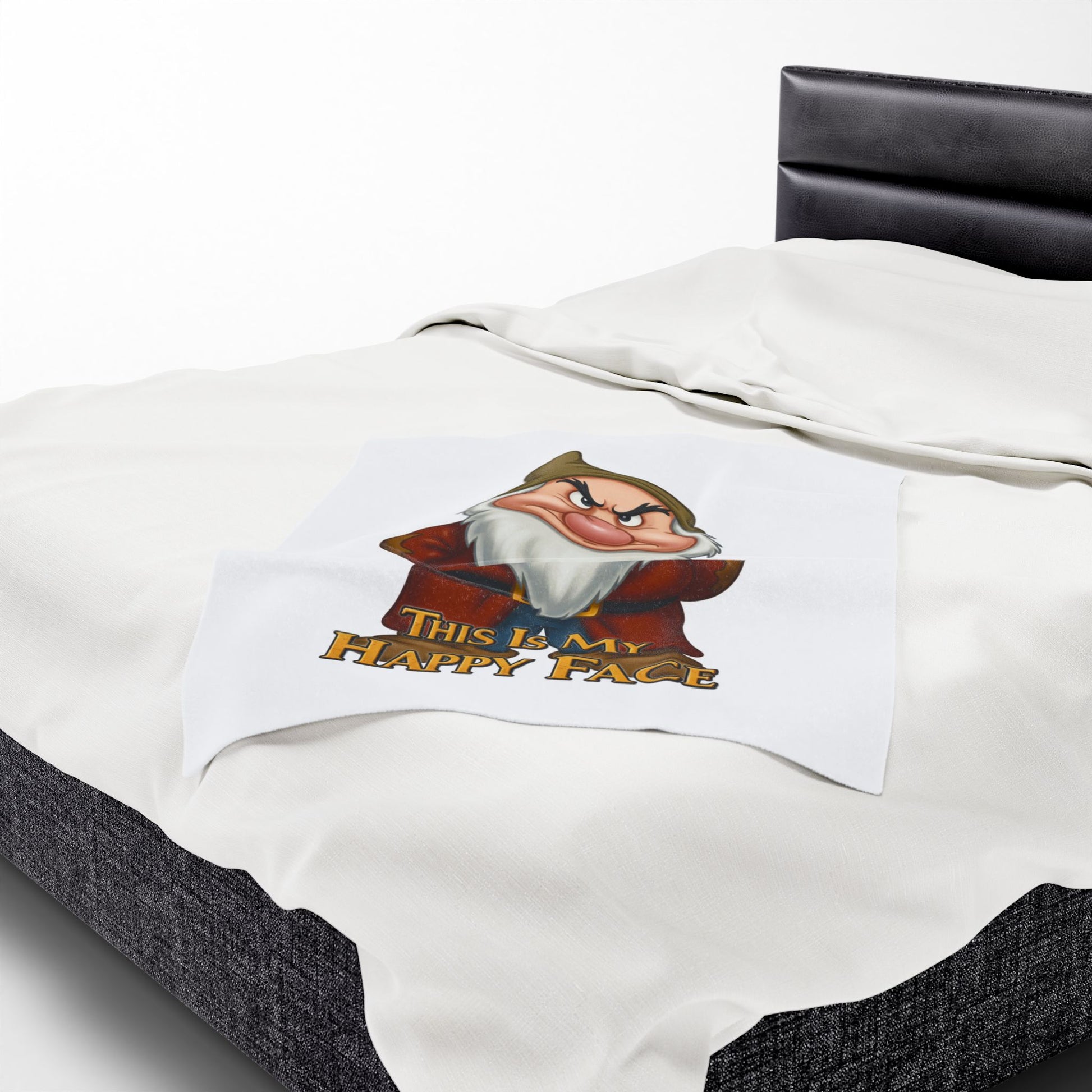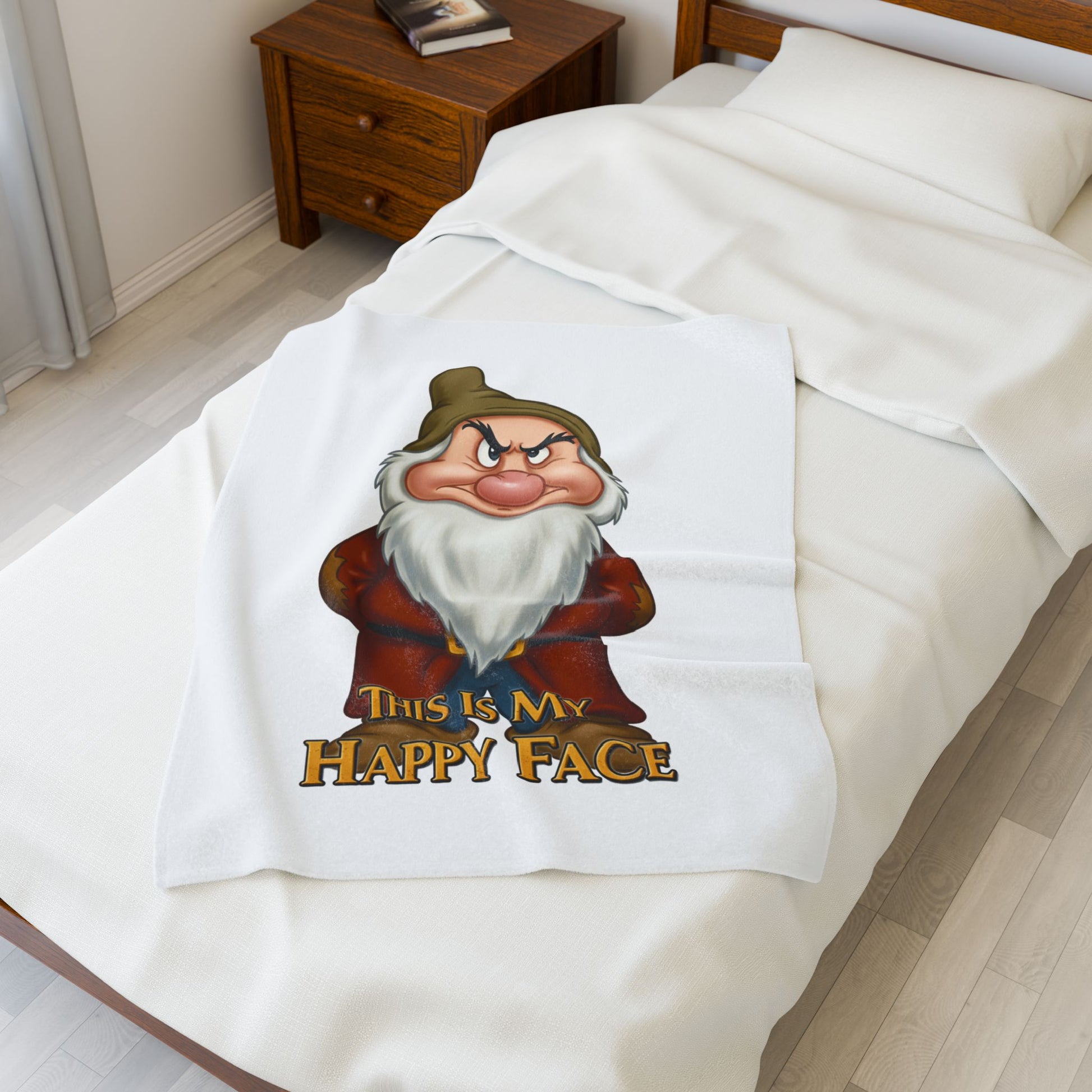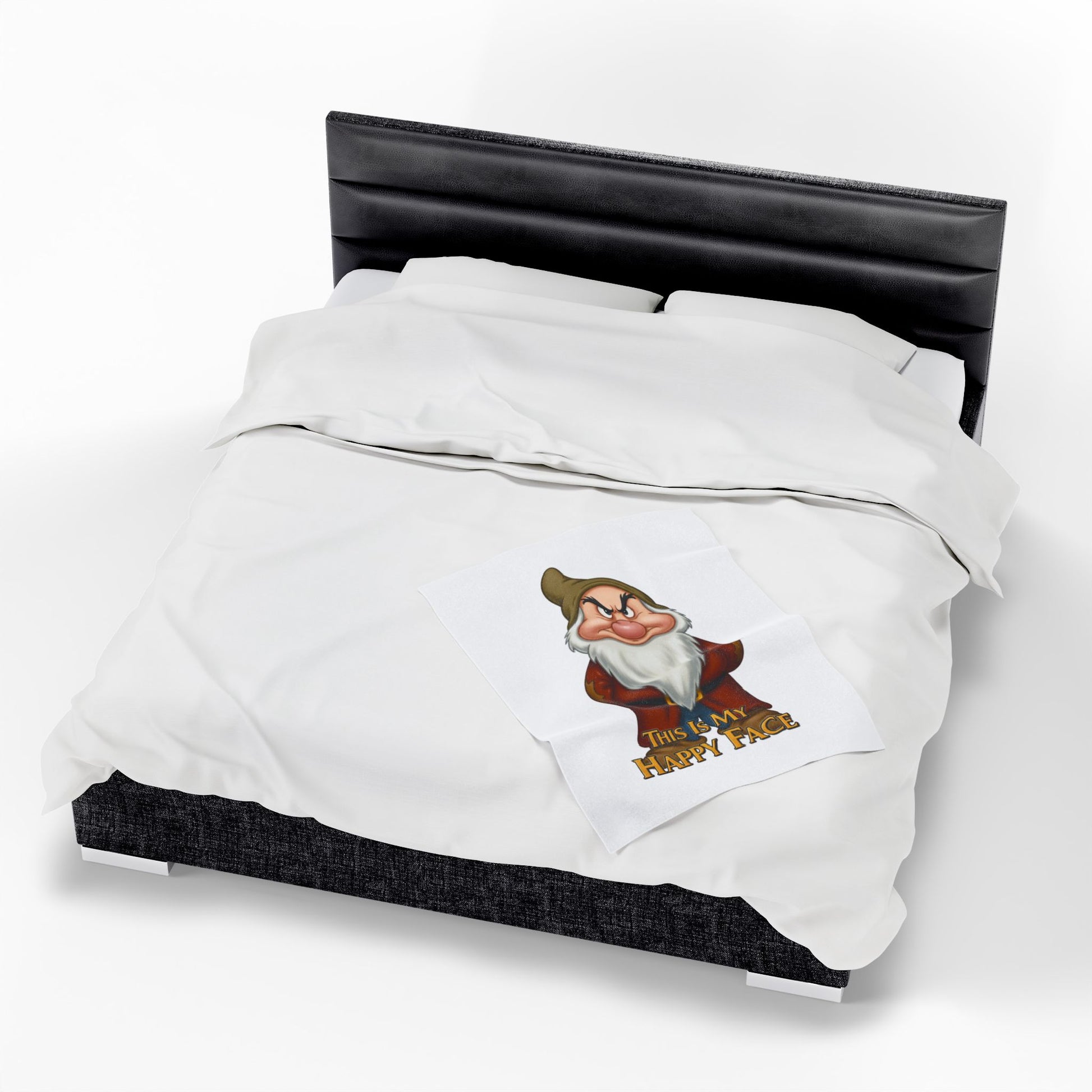 Funny Velveteen Plush Blanket with a Grumpy Dwarf - "This is My Happy Face"