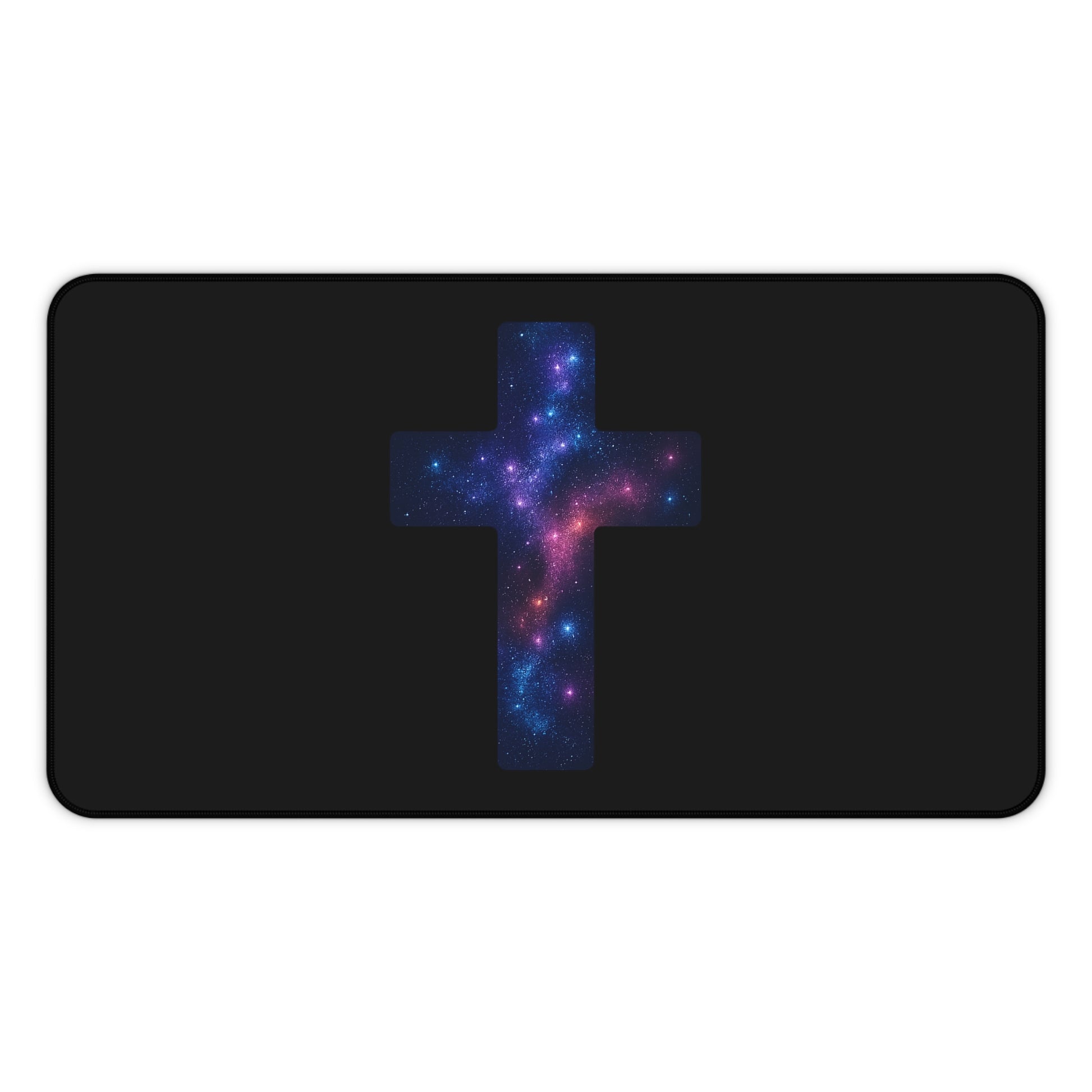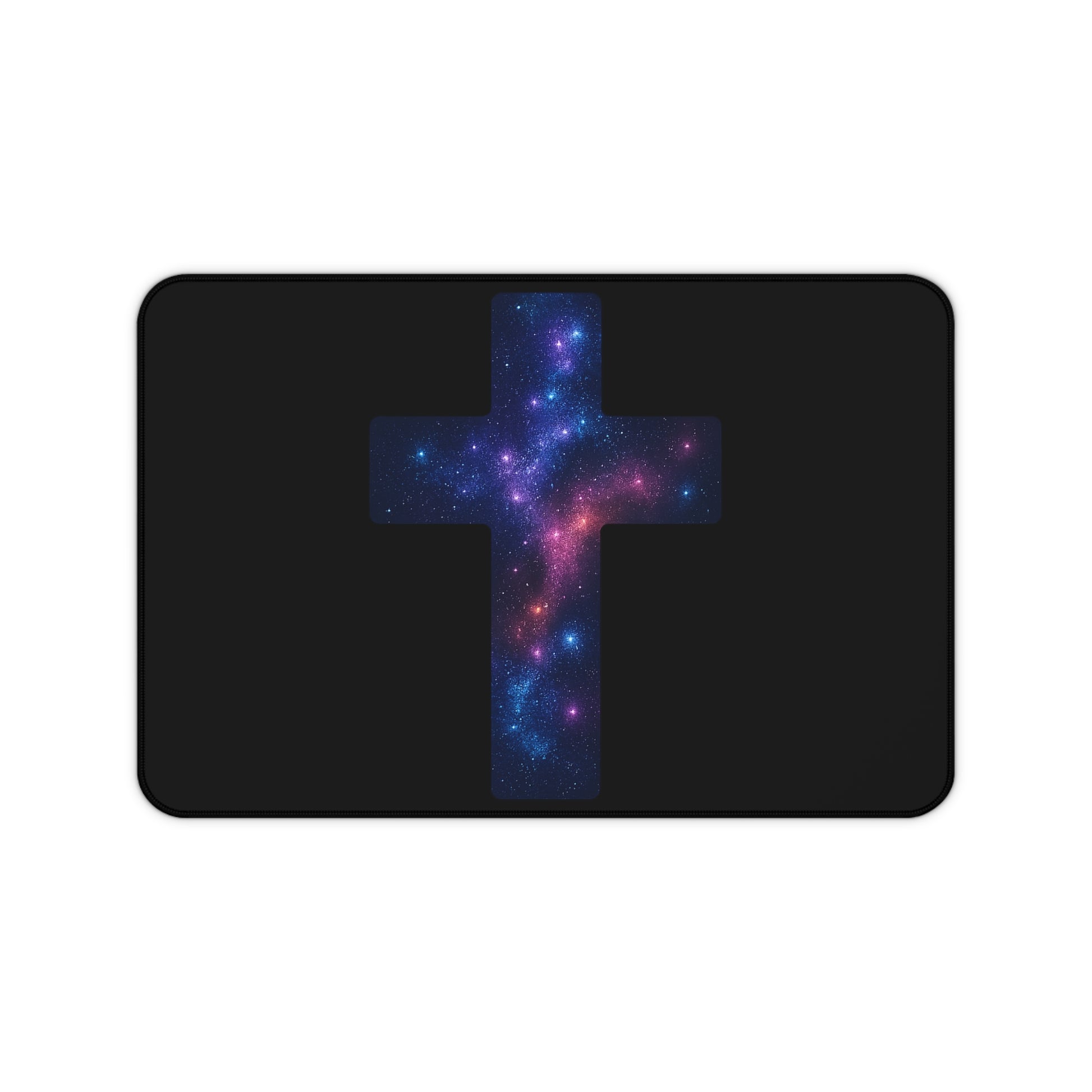 Galactic Desk Mat/Mouse Pad Cross Decor Christian Mouse Pad Spiritual Accessory Religious Desk Mat Gift for Believer