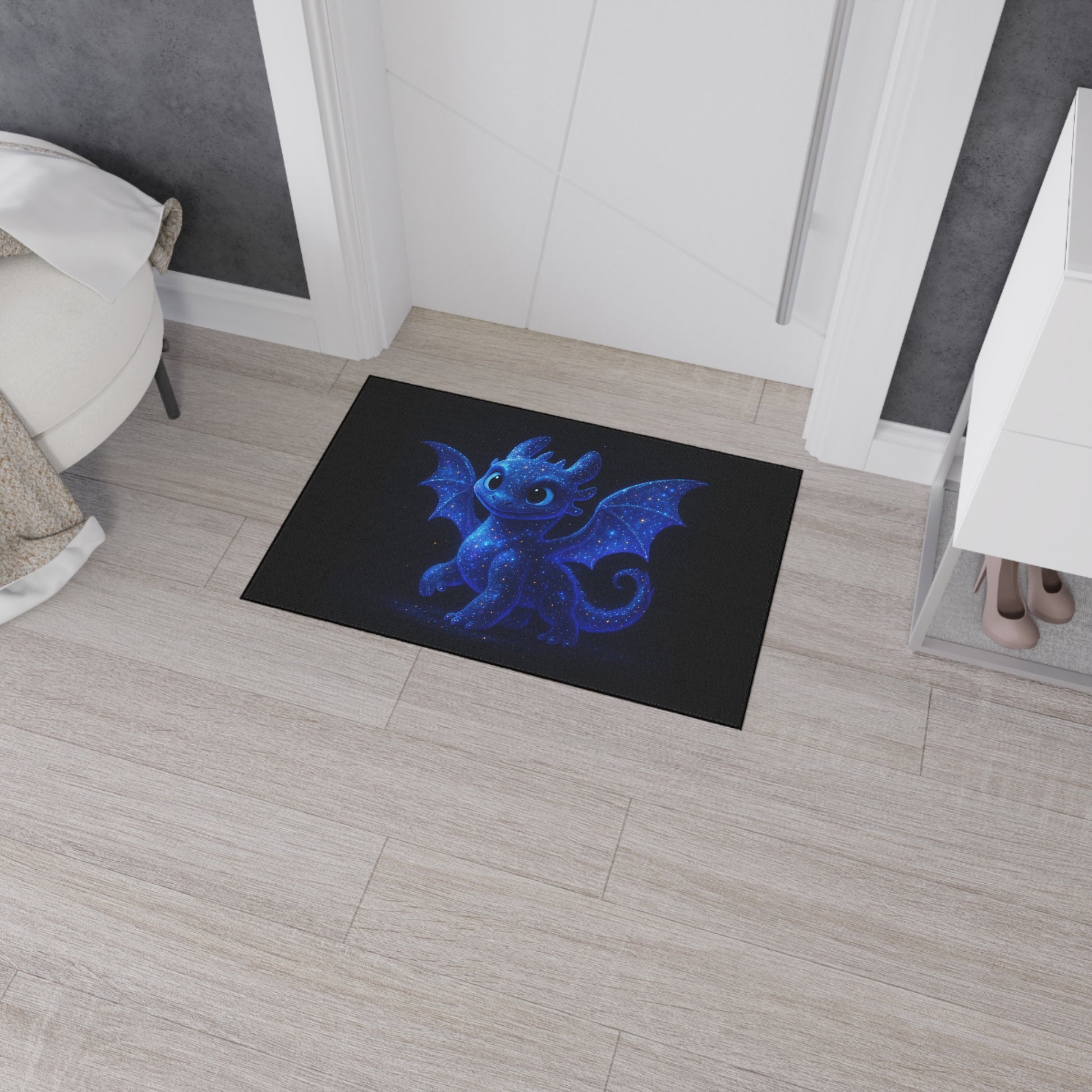 Perfect for fans of fantasy and whimsy, this soft and durable floor mat features an adorable baby dragon glowing with galaxy-inspired stars. Whether it’s for a child’s bedroom, a gamer’s hideaway, or a magical entryway, this enchanting rug adds a cozy and playful vibe wherever it’s placed.