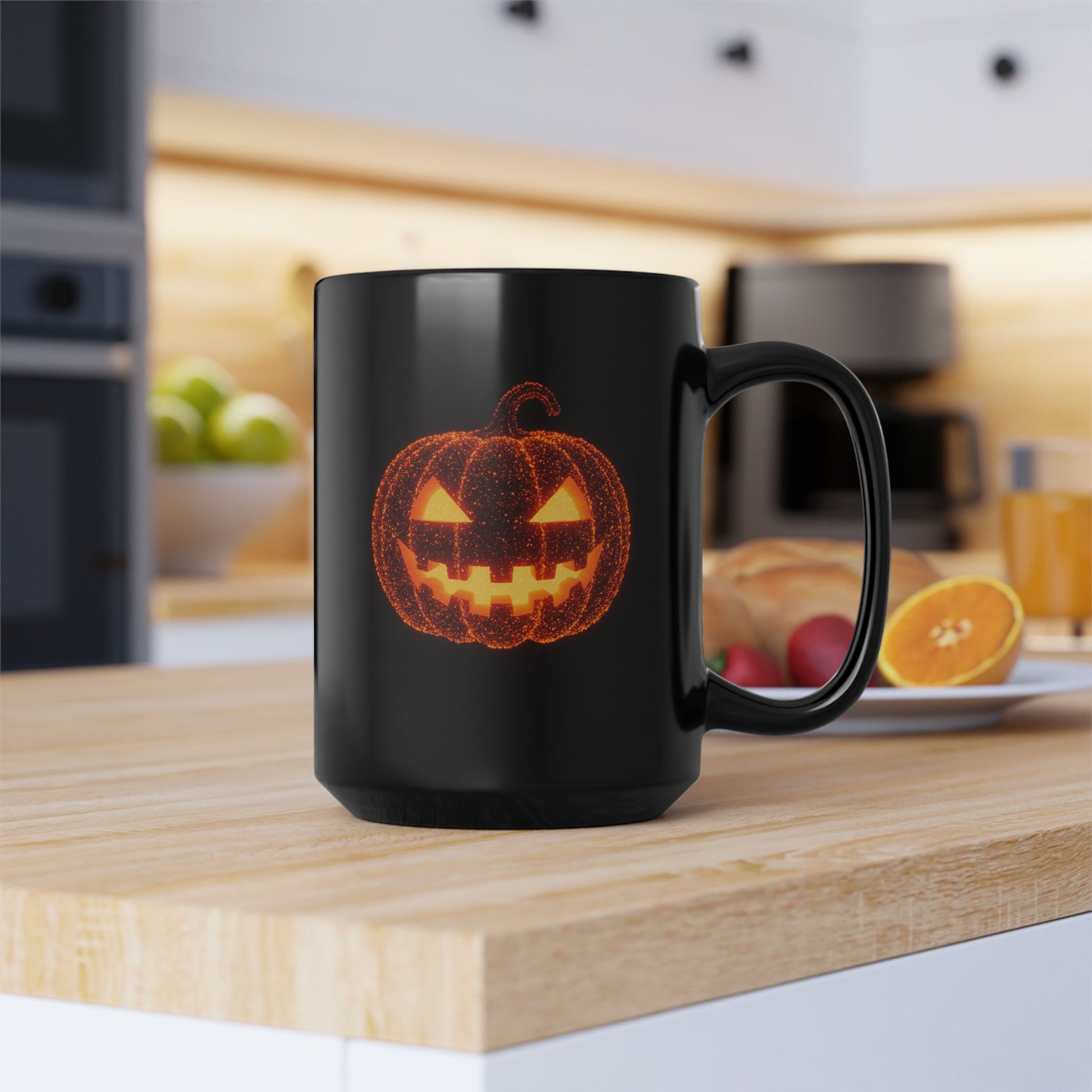 Add a spark of spooky magic to your coffee routine with this eye-catching Halloween mug! Featuring a vibrant jack-o'-lantern composed of tiny, glowing particle-inspired details, this design captures the bioluminescent glow of Halloween without actually glowing in the dark. The high-contrast orange on deep black makes the pumpkin face pop—perfect for spooky season lovers, gothic kitchenware collectors, or anyone who adores a little autumn mischief with their morning brew.