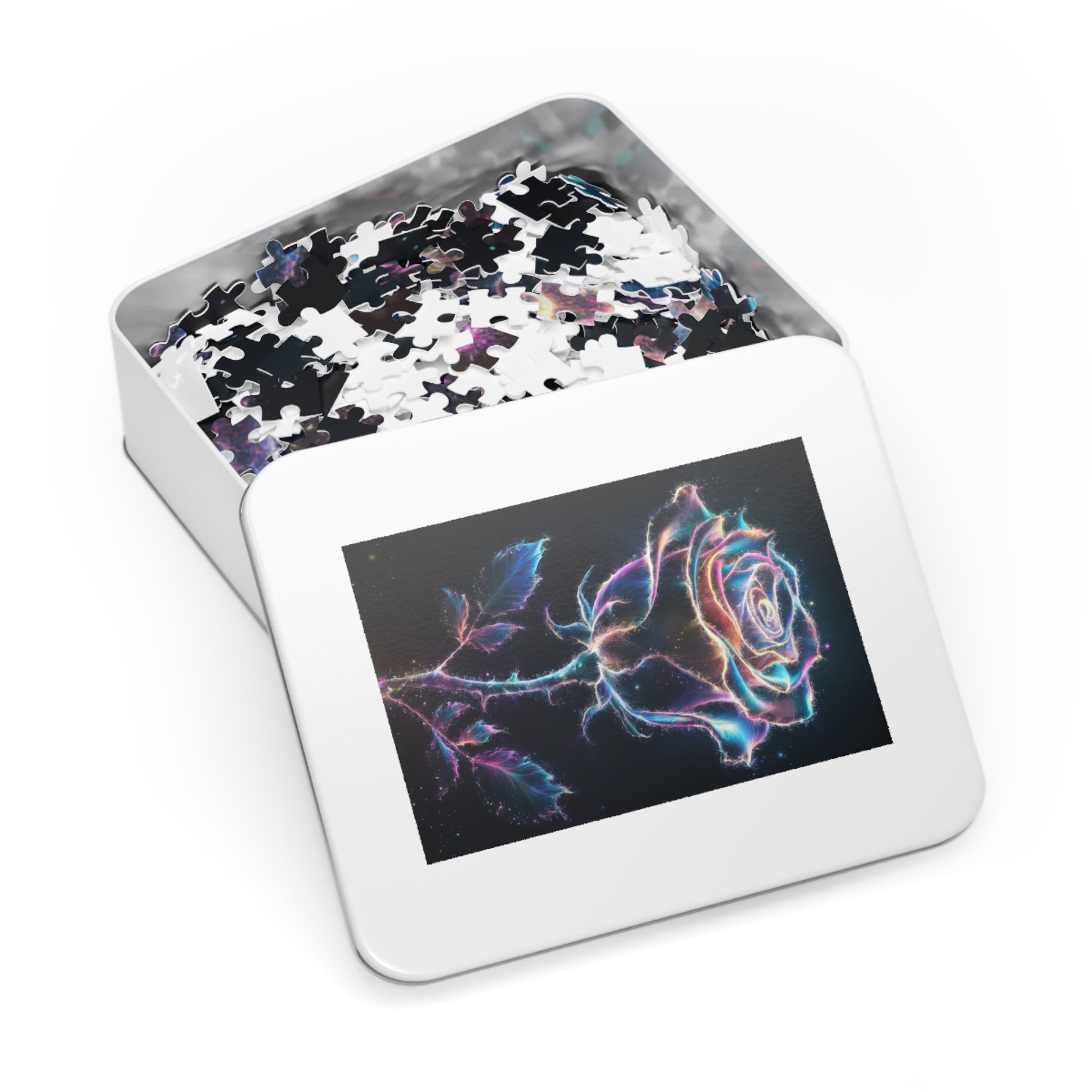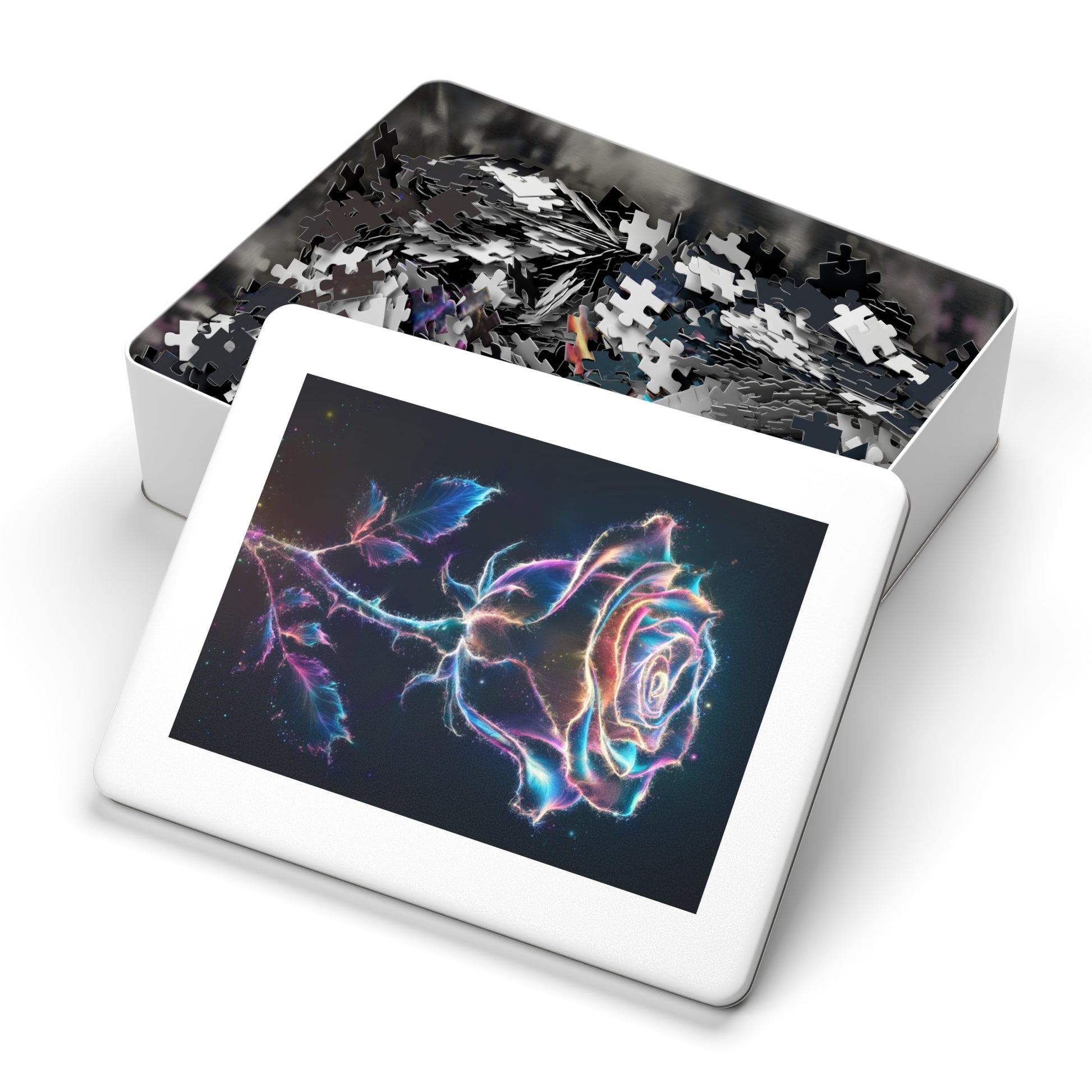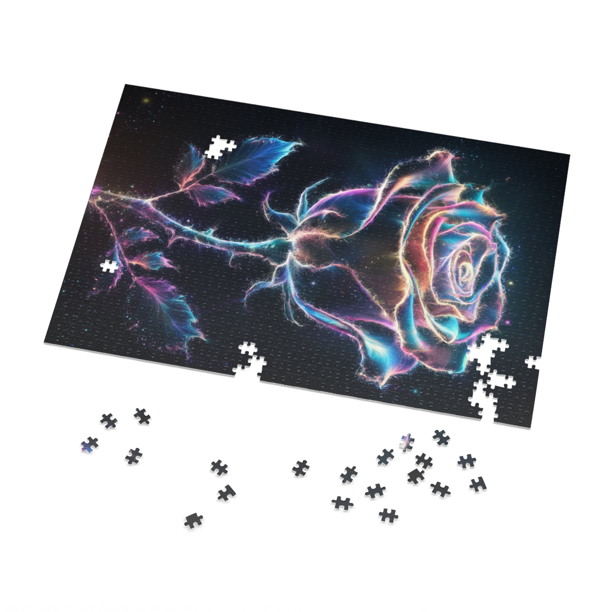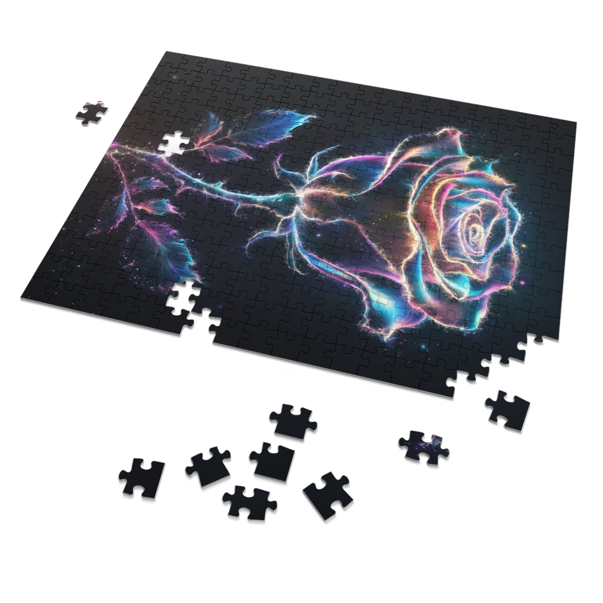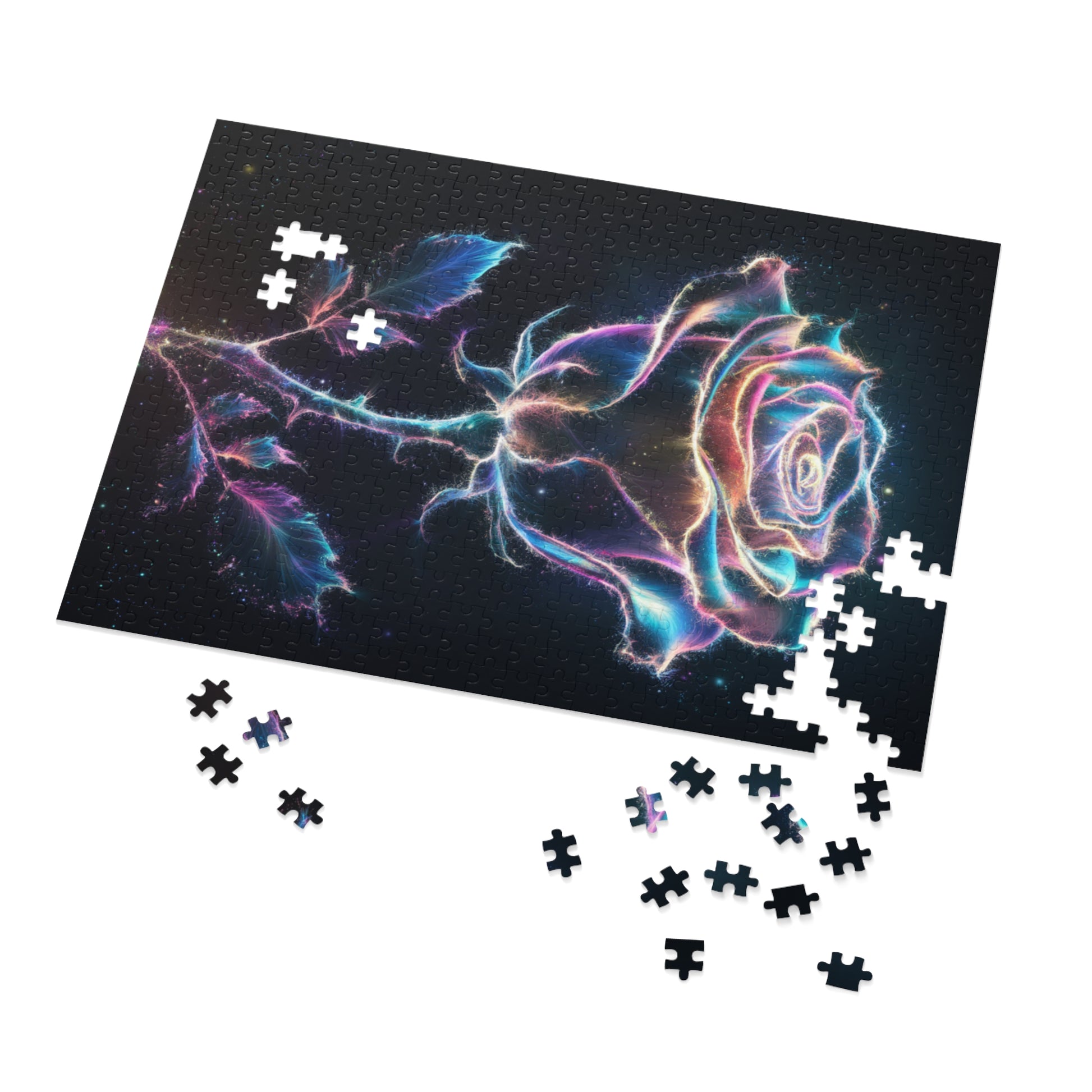 Unwind and indulge in a soothing puzzle experience with our custom Glowing Rose Jigsaw Puzzle. This stunning puzzle features a mesmerizing rose radiating a soft glow, perfect for sparking relaxation and creativity.