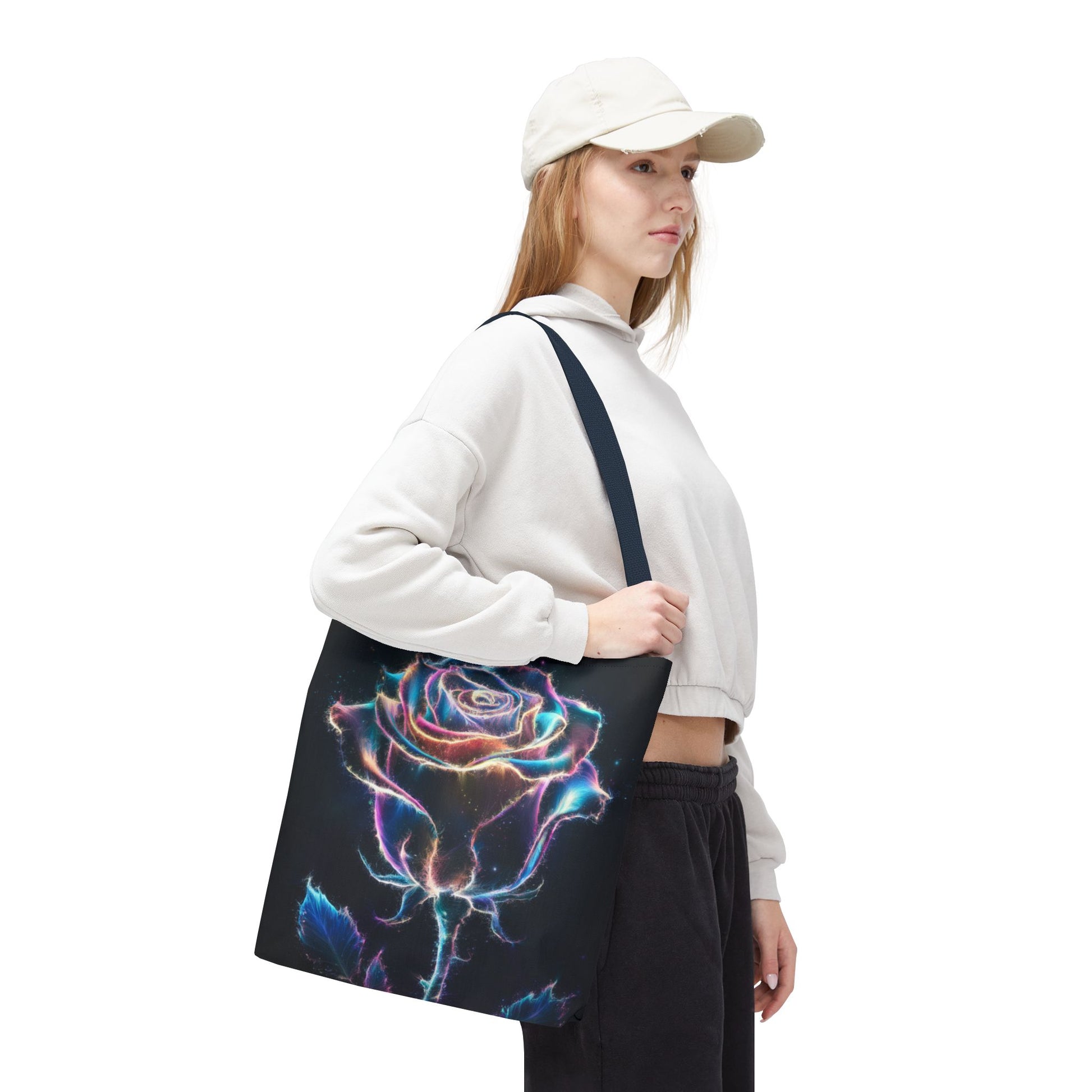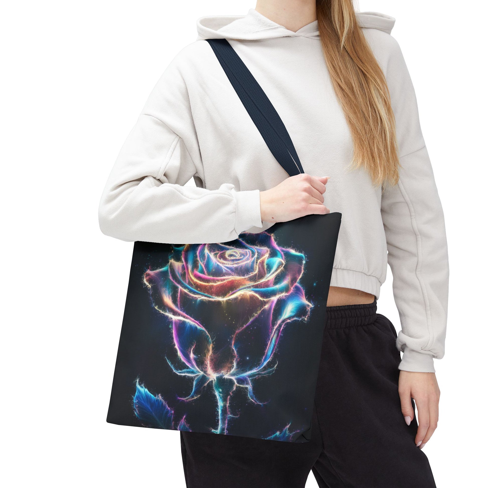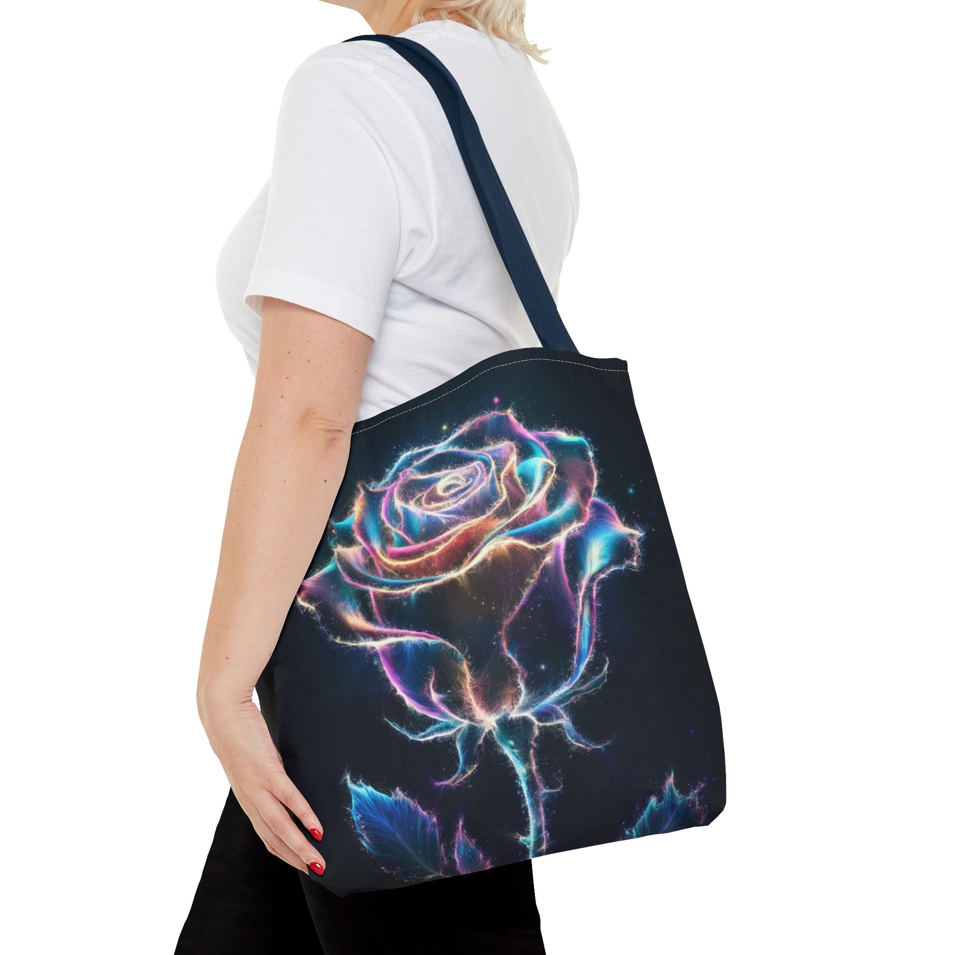 Add a touch of elegance and whimsy to your daily routine with this beautiful glowing rose tote bag!