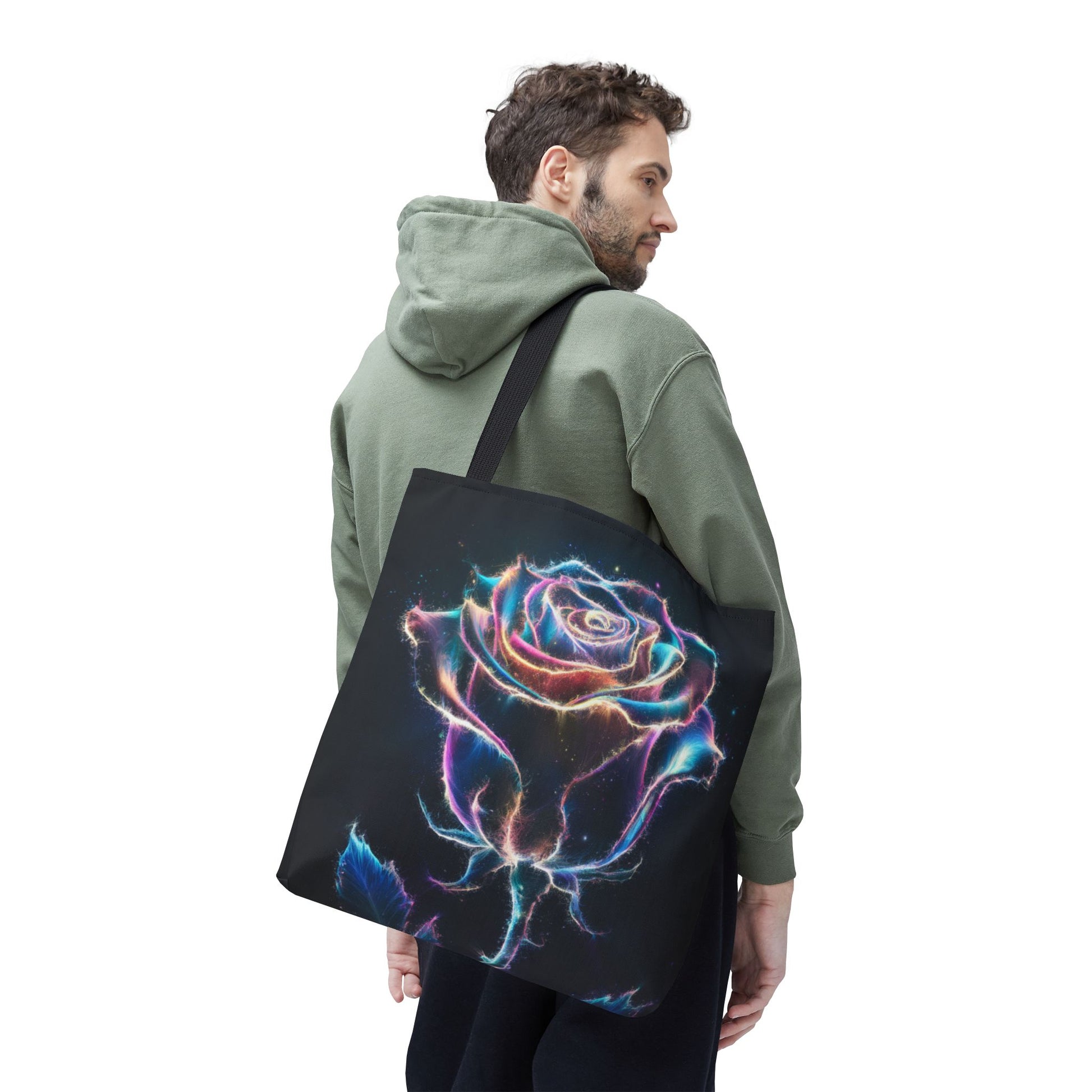 Carry your essentials in style with our stunning "Glowing Rose" tote bag, featuring a vibrant and colorful glowing rose design. This unique bag is perfect for adding a pop of color and personality to your daily routine.