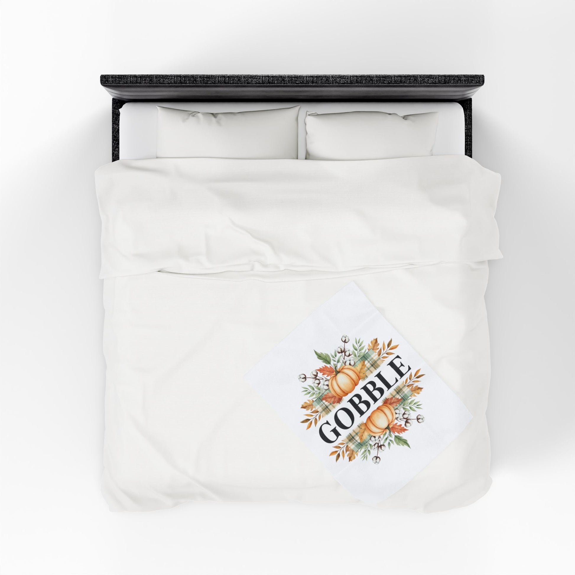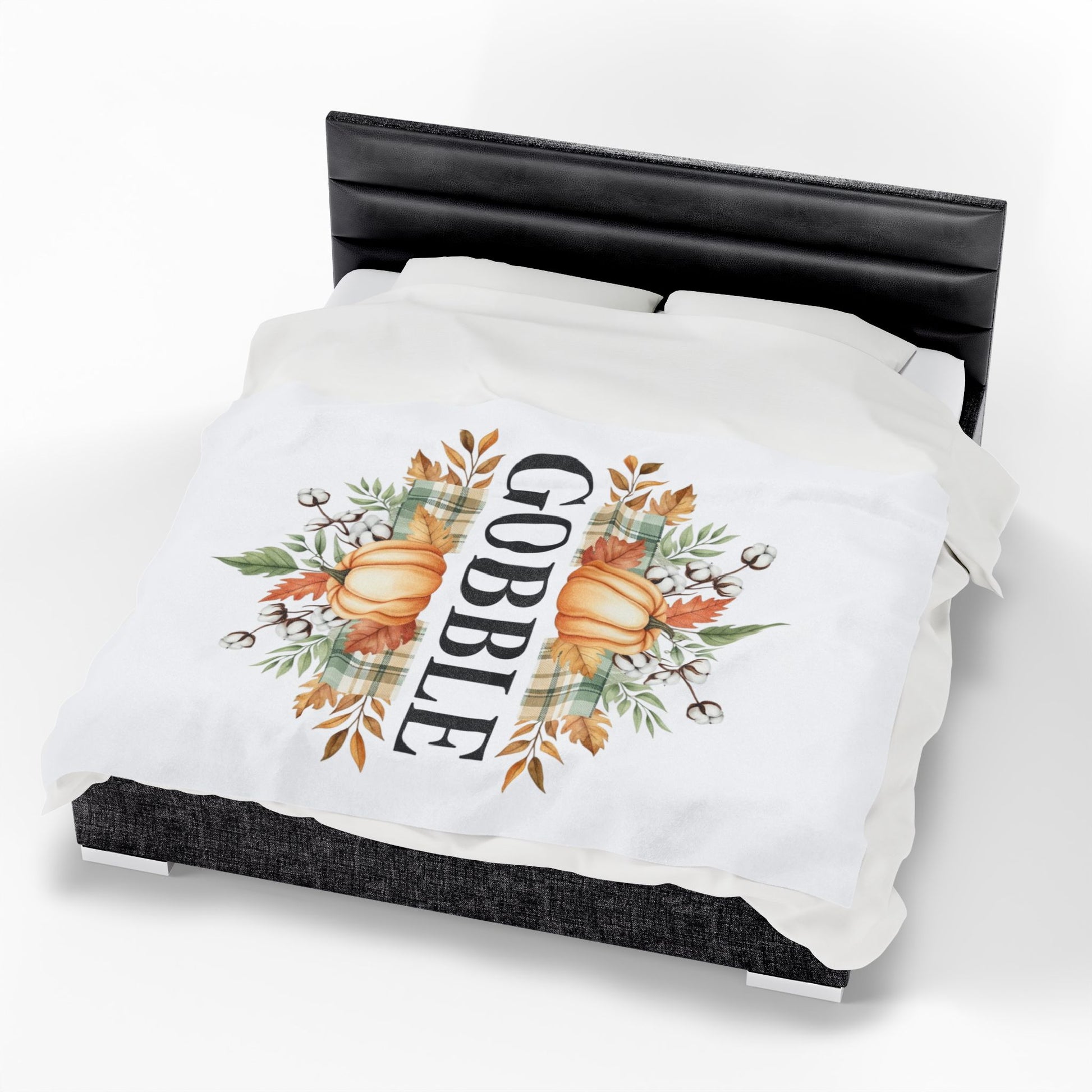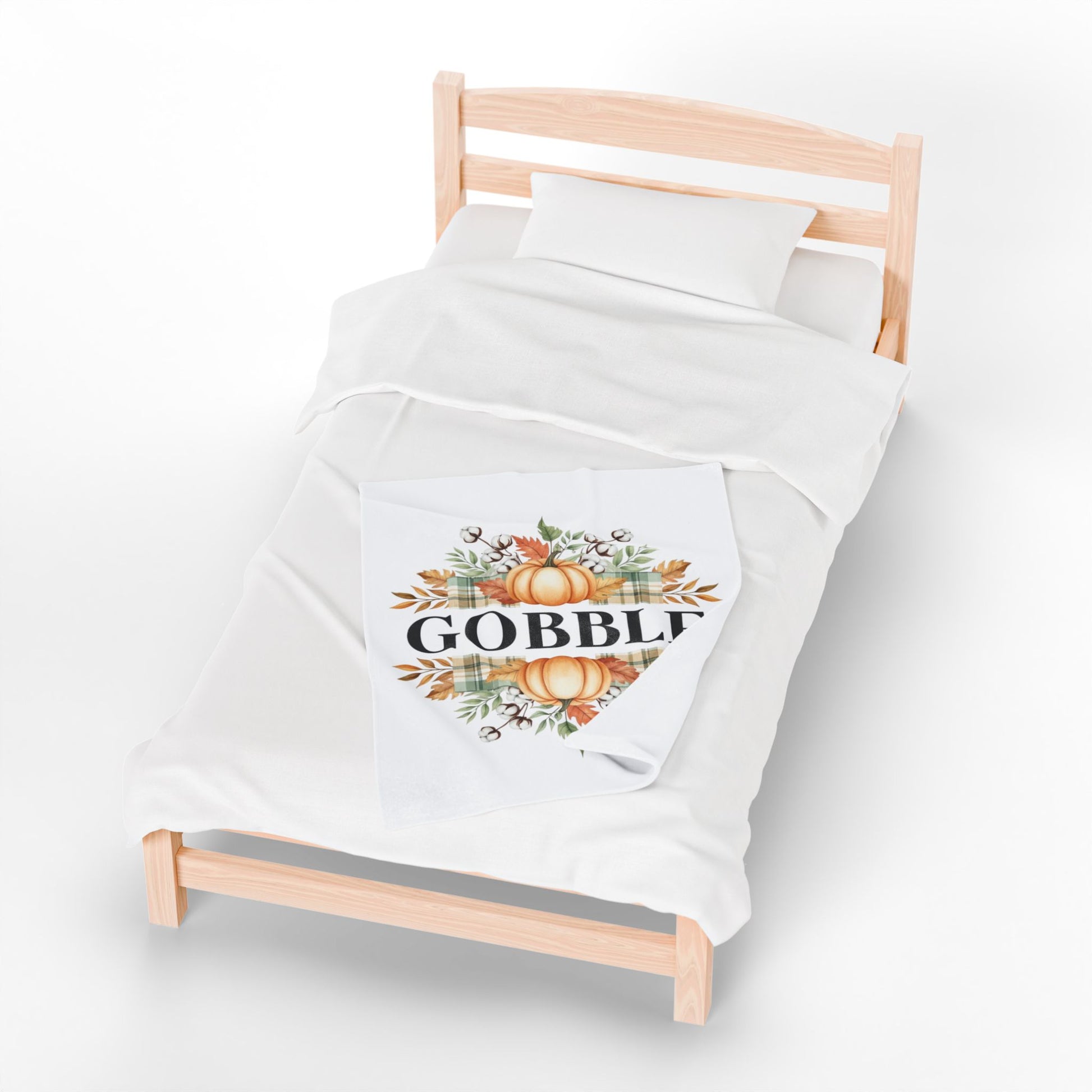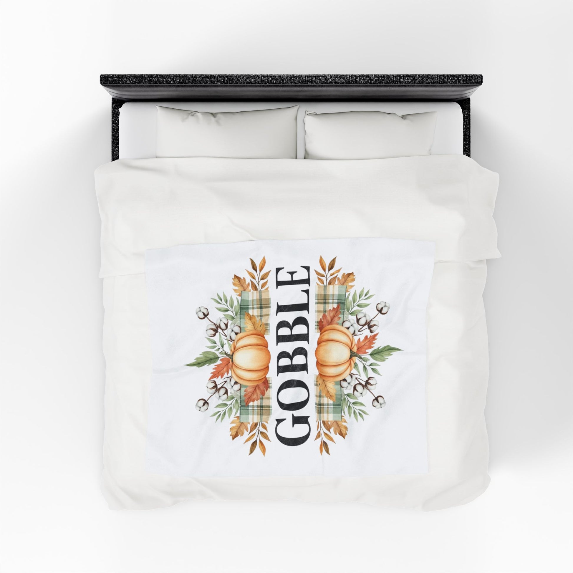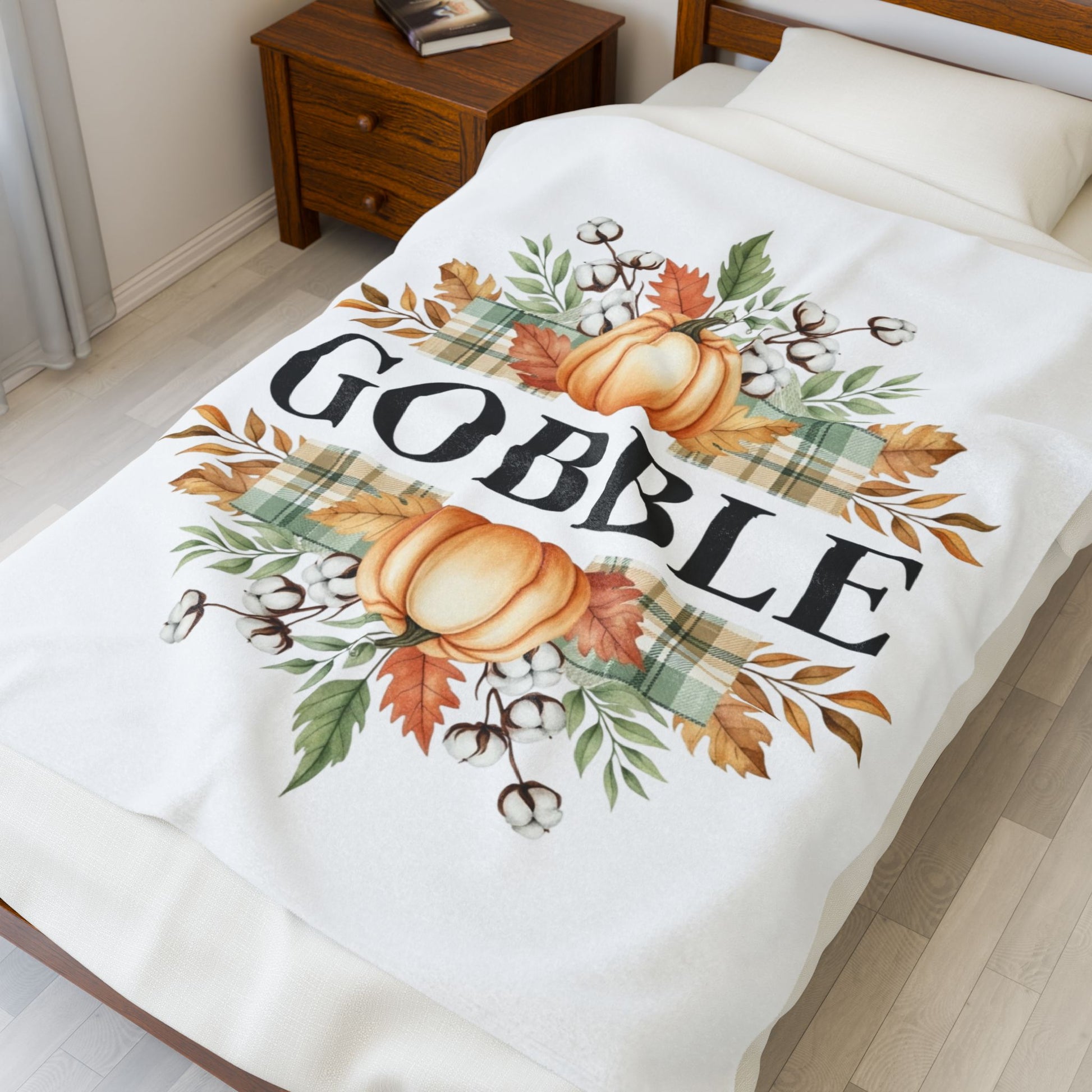 Gobble Fall Blanket, Thanksgiving Throw Blanket With Pumpkins And Leaves, Cozy Autumn Decor, Soft Fleece Blanket Gift For Family Gatherings