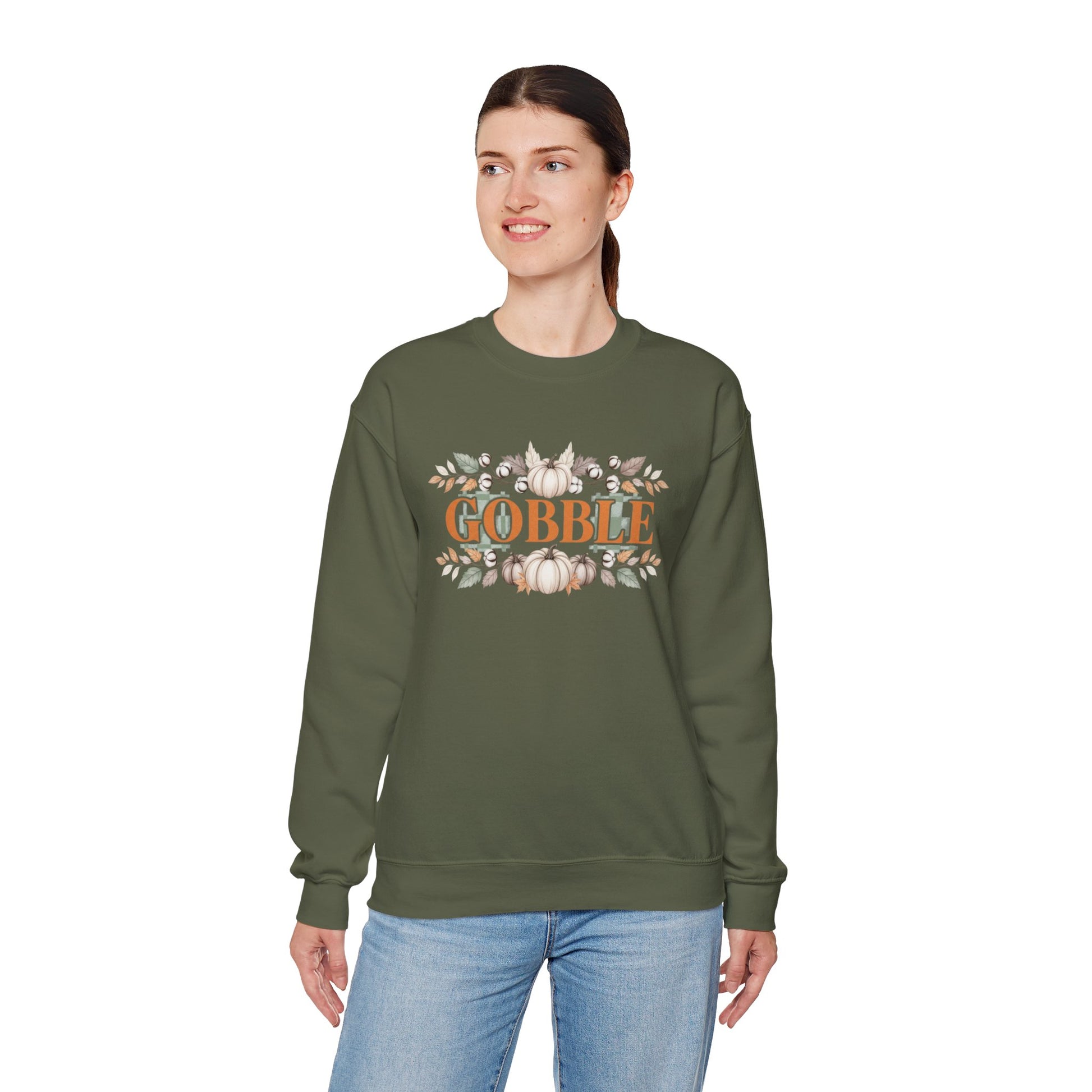 Celebrate Thanksgiving in style with this Gobble Thanksgiving Sweatshirt, designed with rustic pumpkins, cotton stems, and autumn leaves in warm, neutral tones. This cozy fall pullover makes the perfect Thanksgiving outfit or fall fashion staple.