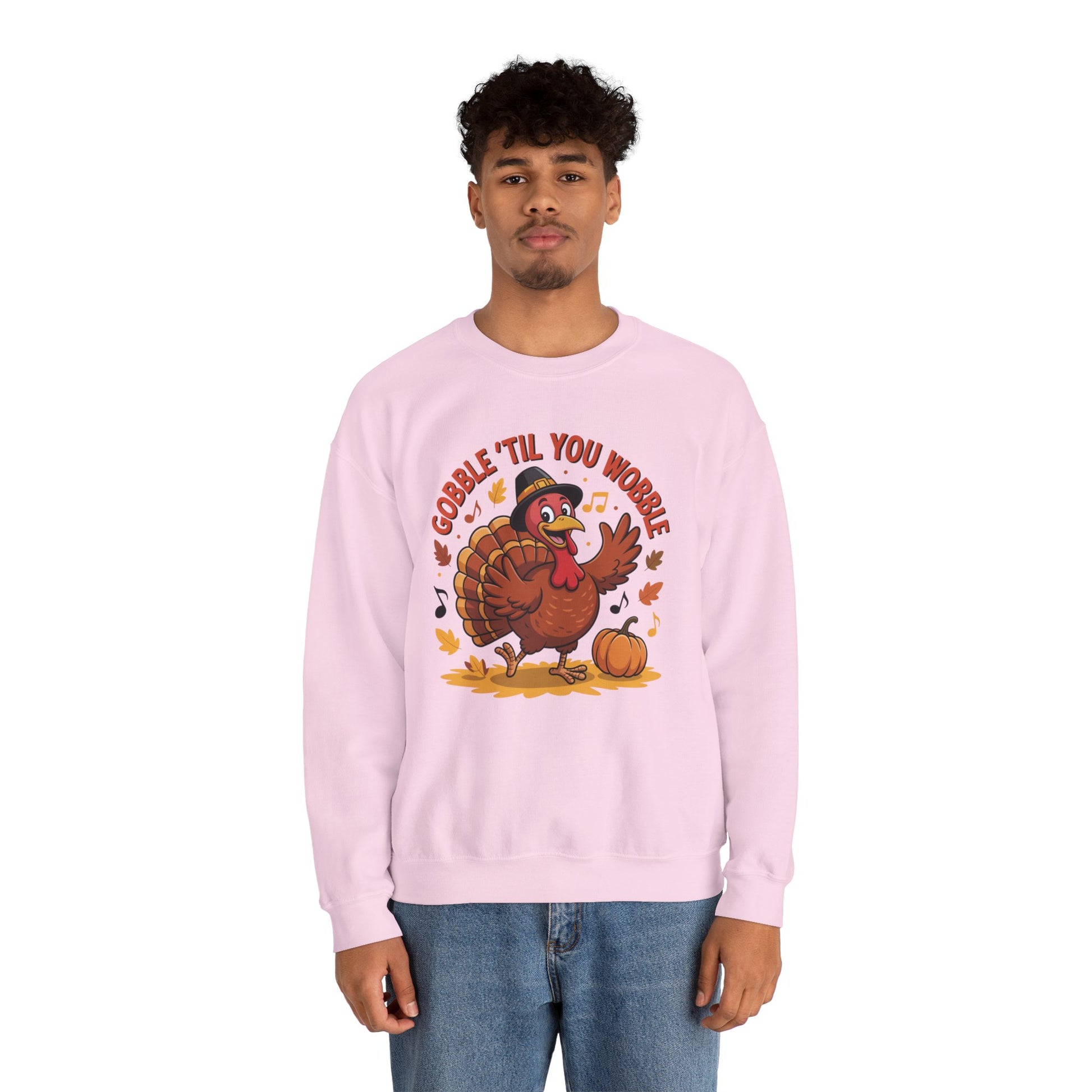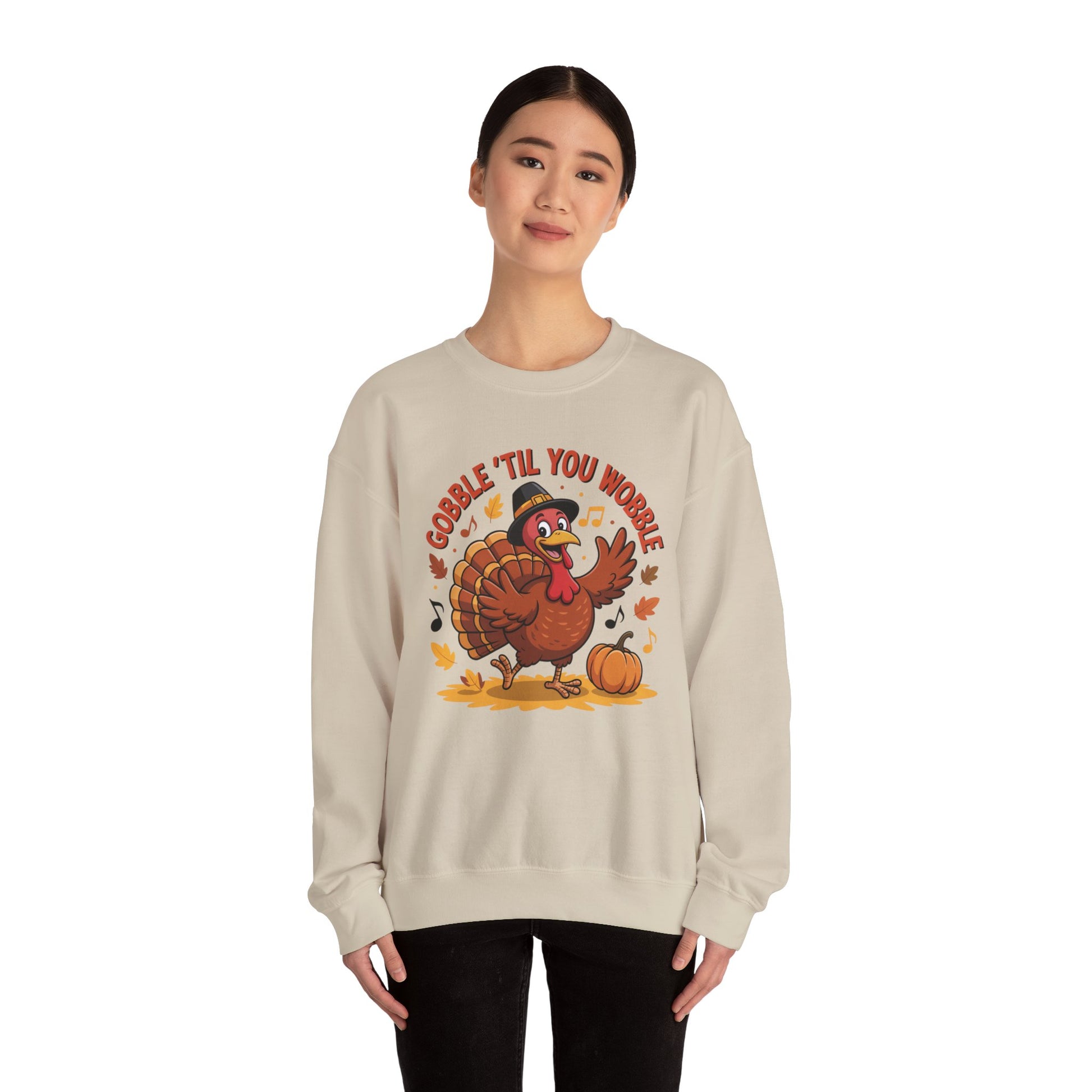 Gobble Til You Wobble Sweatshirt, Funny Cartoon Turkey Thanksgiving Crewneck, Dancing Turkey Fall Pullover, Cozy Friendsgiving Holiday Top