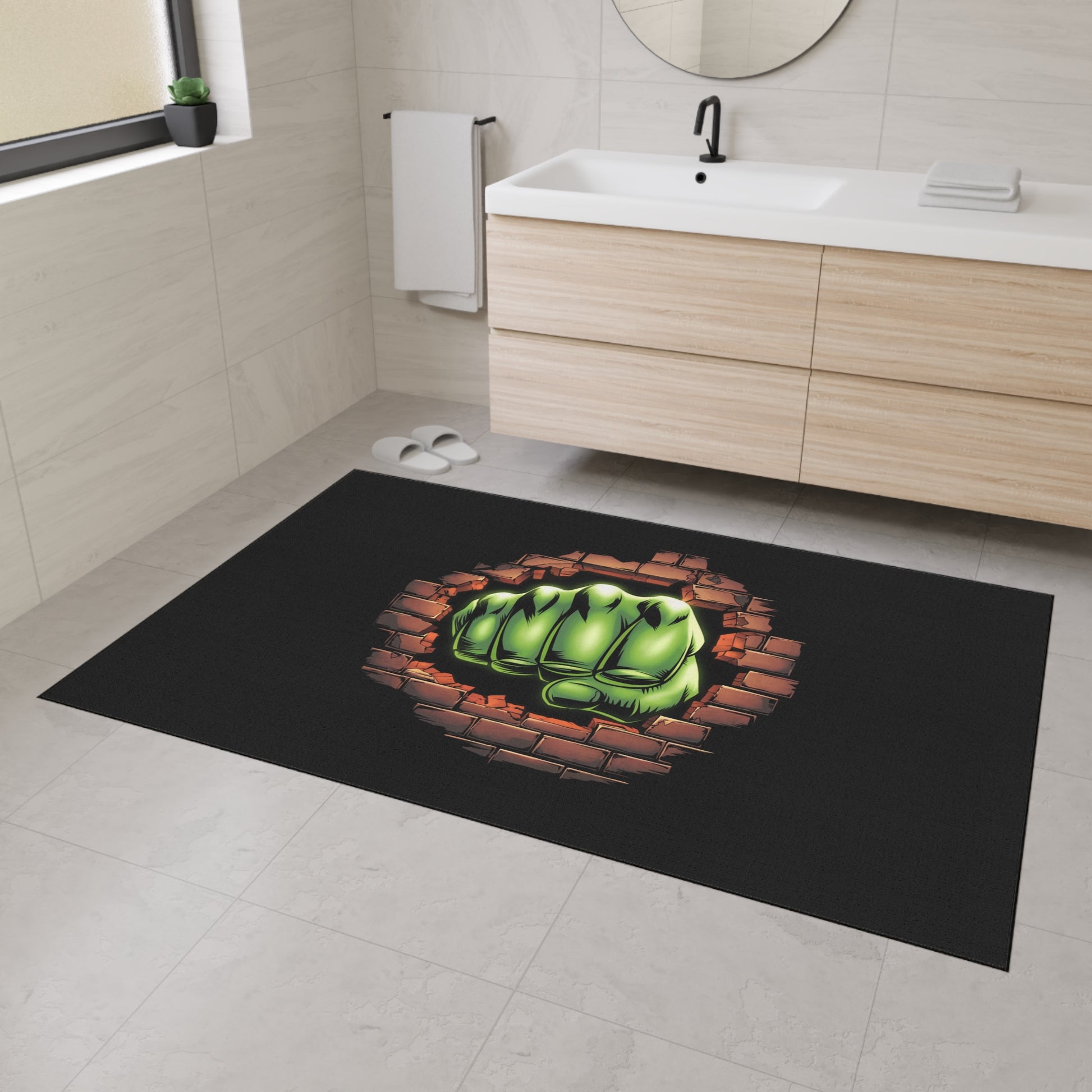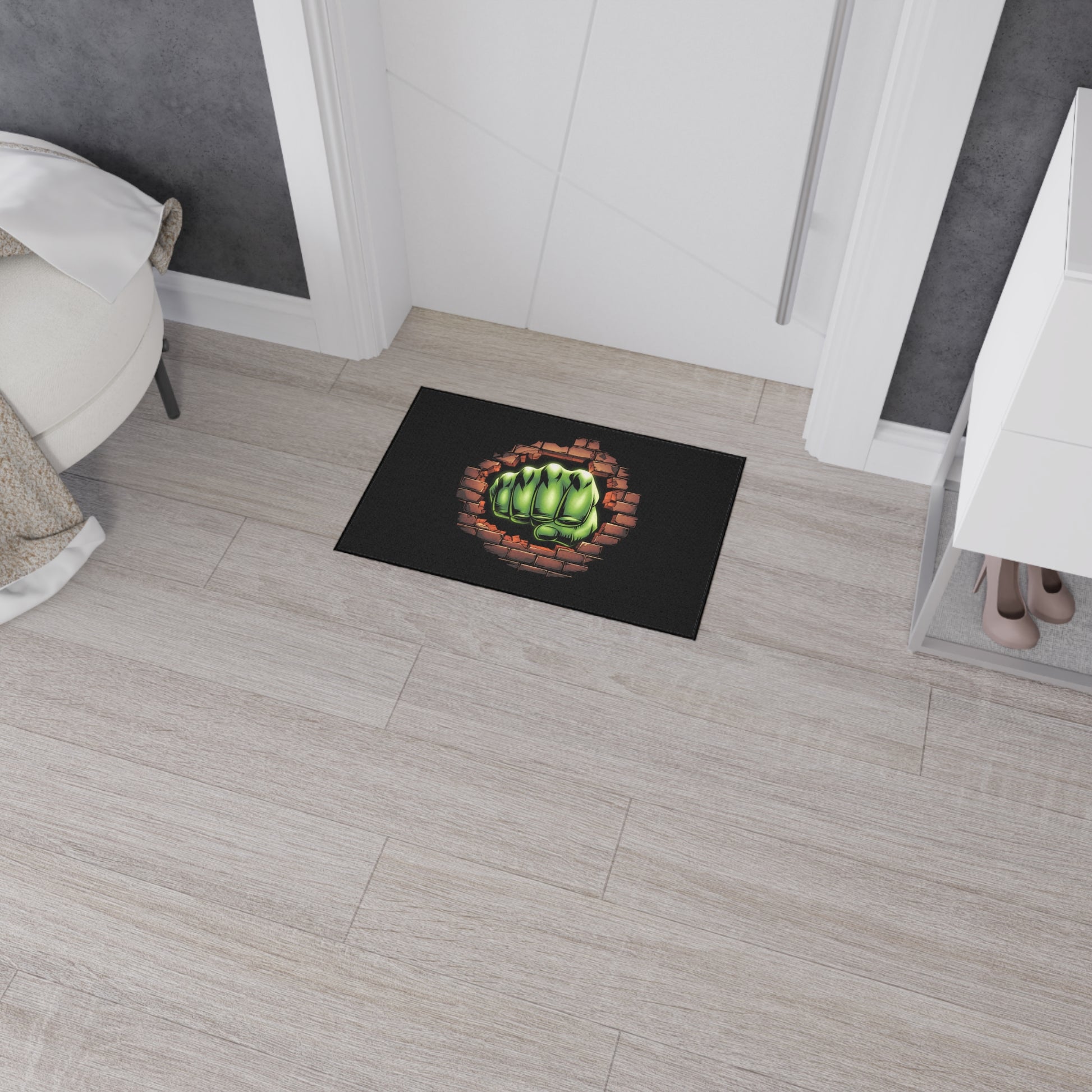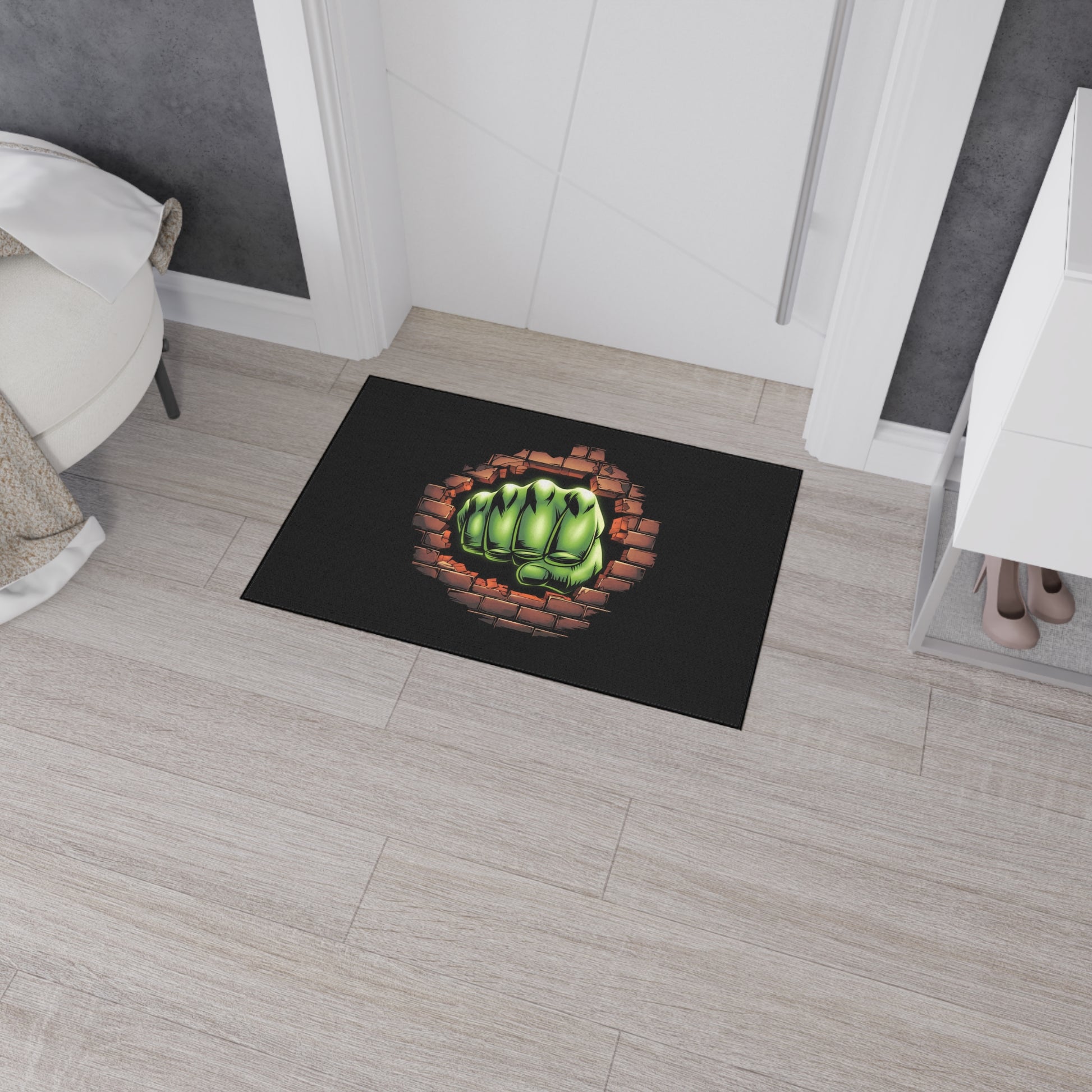 Transform your space with this Superhero Heavy-Duty Floor Mat, perfect for adding a bold and fun touch to kids' playrooms, man caves, or home gyms. Featuring a striking design of the green fist breaking through a brick wall, this durable mat combines style and functionality. Its high-quality materials ensure long-lasting use, while the vibrant print makes it an eye-catching centerpiece for any room. Whether you're creating a superhero-themed space or simply want to make a statement, this floor mat is the ideal choice for comic fans! 💪🟢