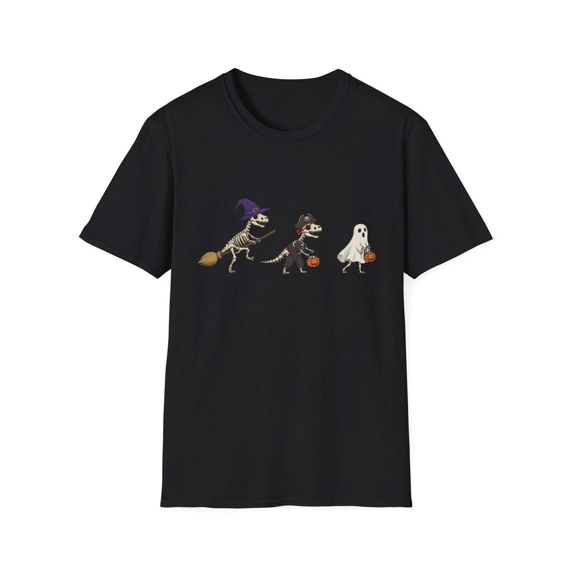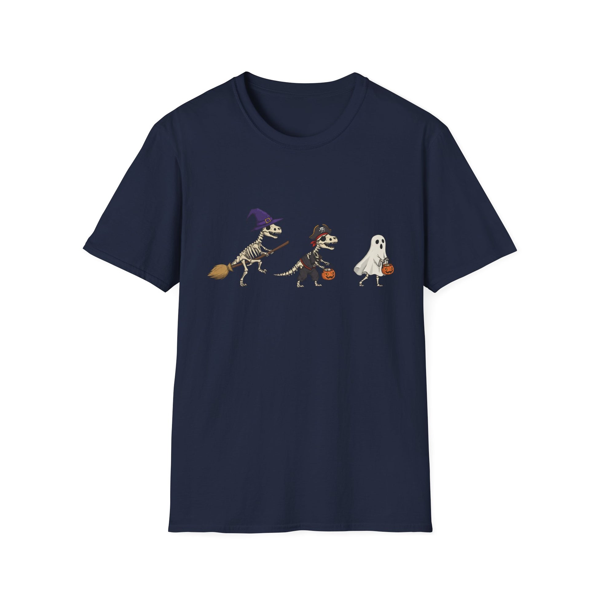 Halloween Dinosaur Skeleton Shirt - Trick-or-Treat Dino Tee, Funny T-Rex Ghost and Witch Costume Shirt, Spooky Cute Skeleton Tee, Unisex