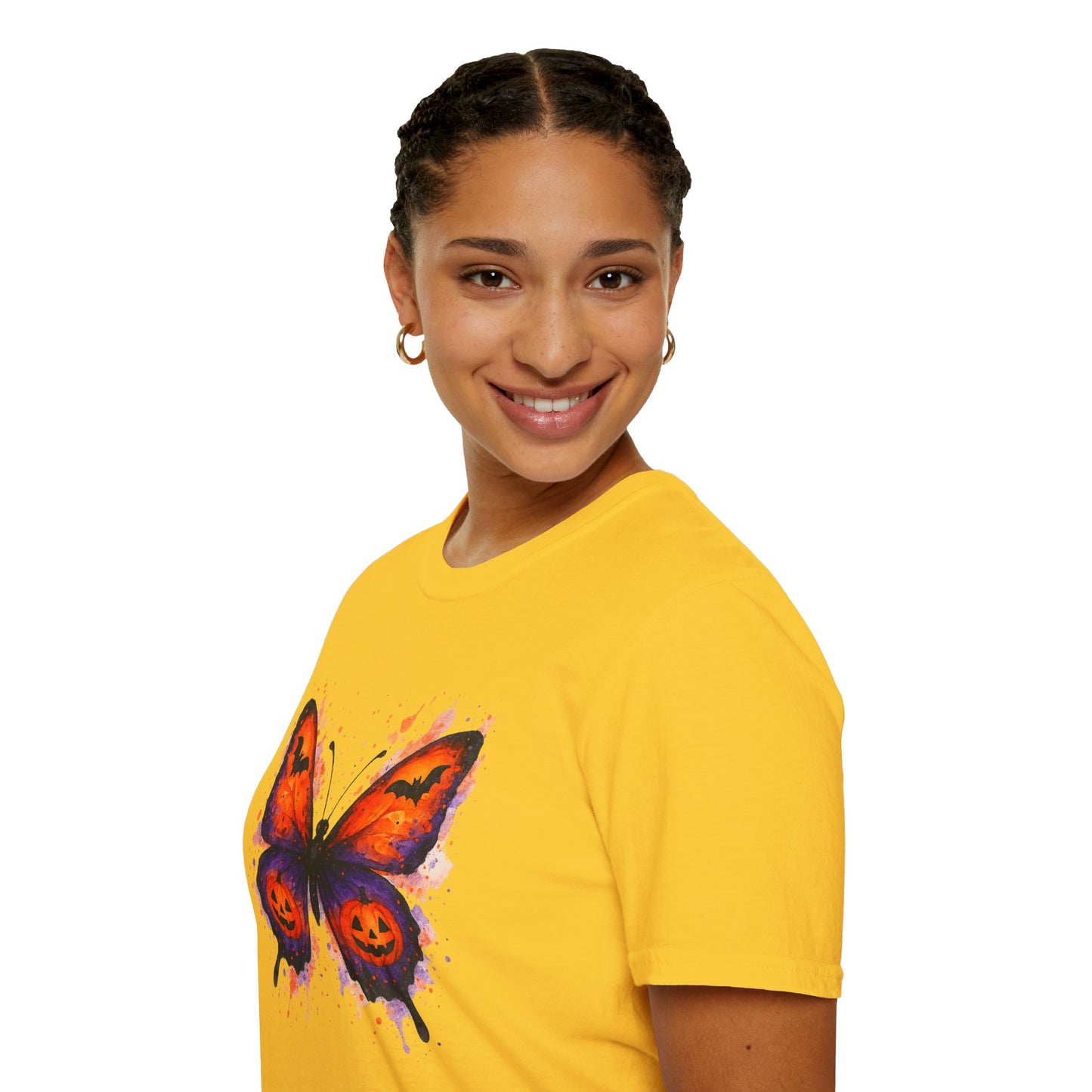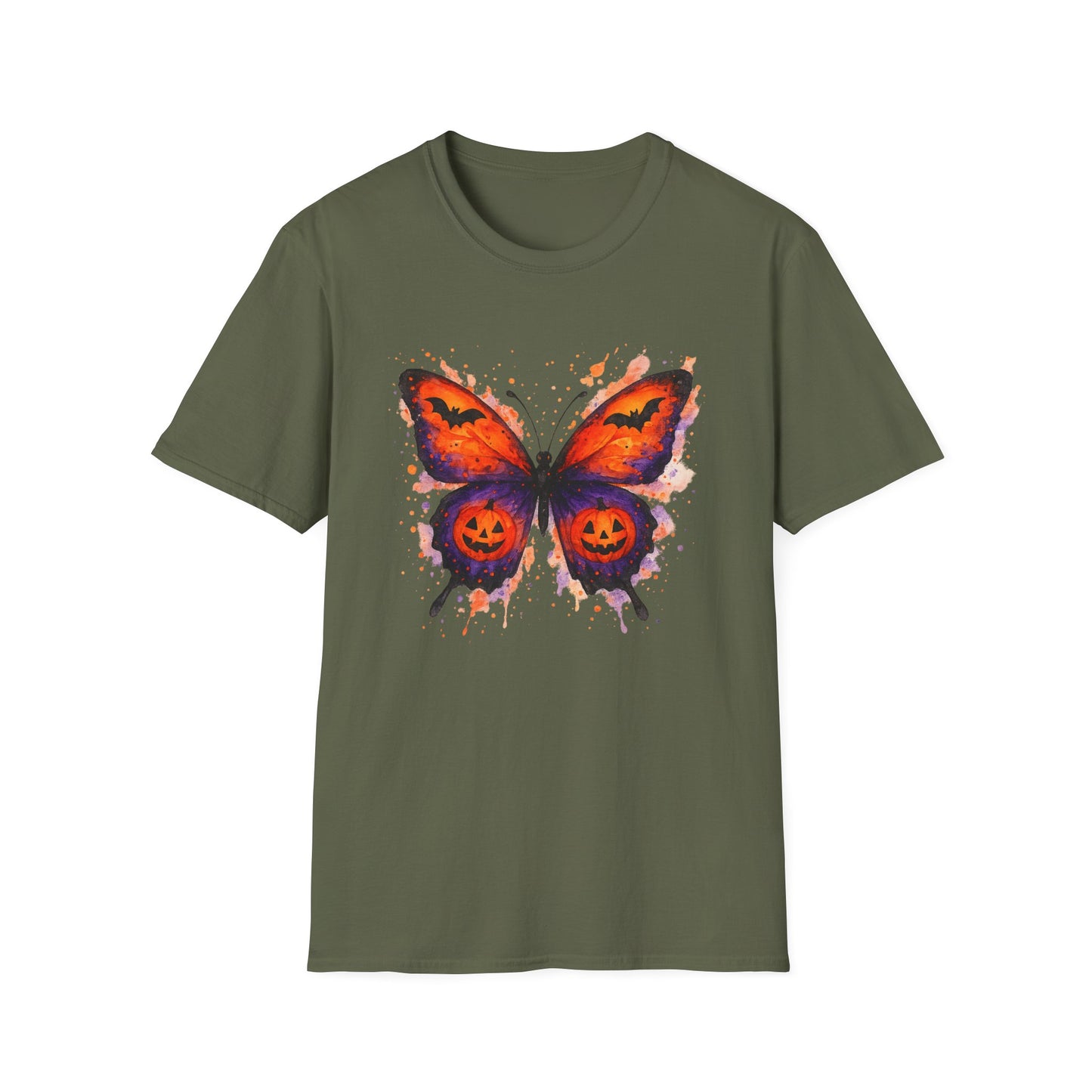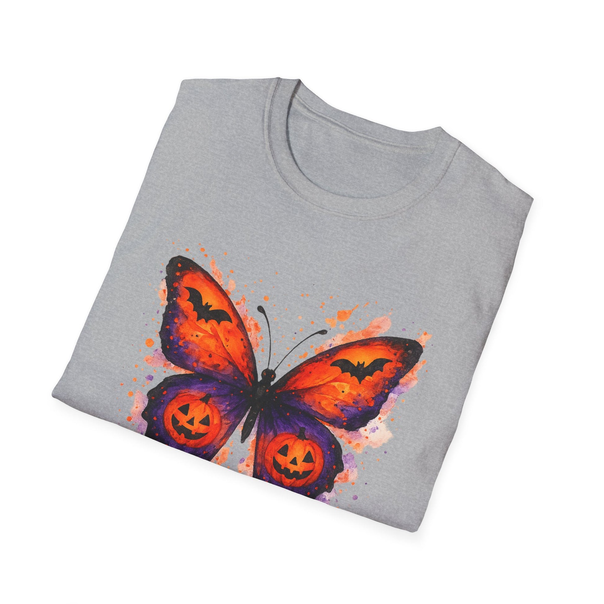 Halloween Watercolor Butterfly T-Shirt - Pumpkin Butterfly Tee, Spooky Butterfly Shirt, Bat and Jack-O'Lantern Wings, Fall Aesthetic Tee