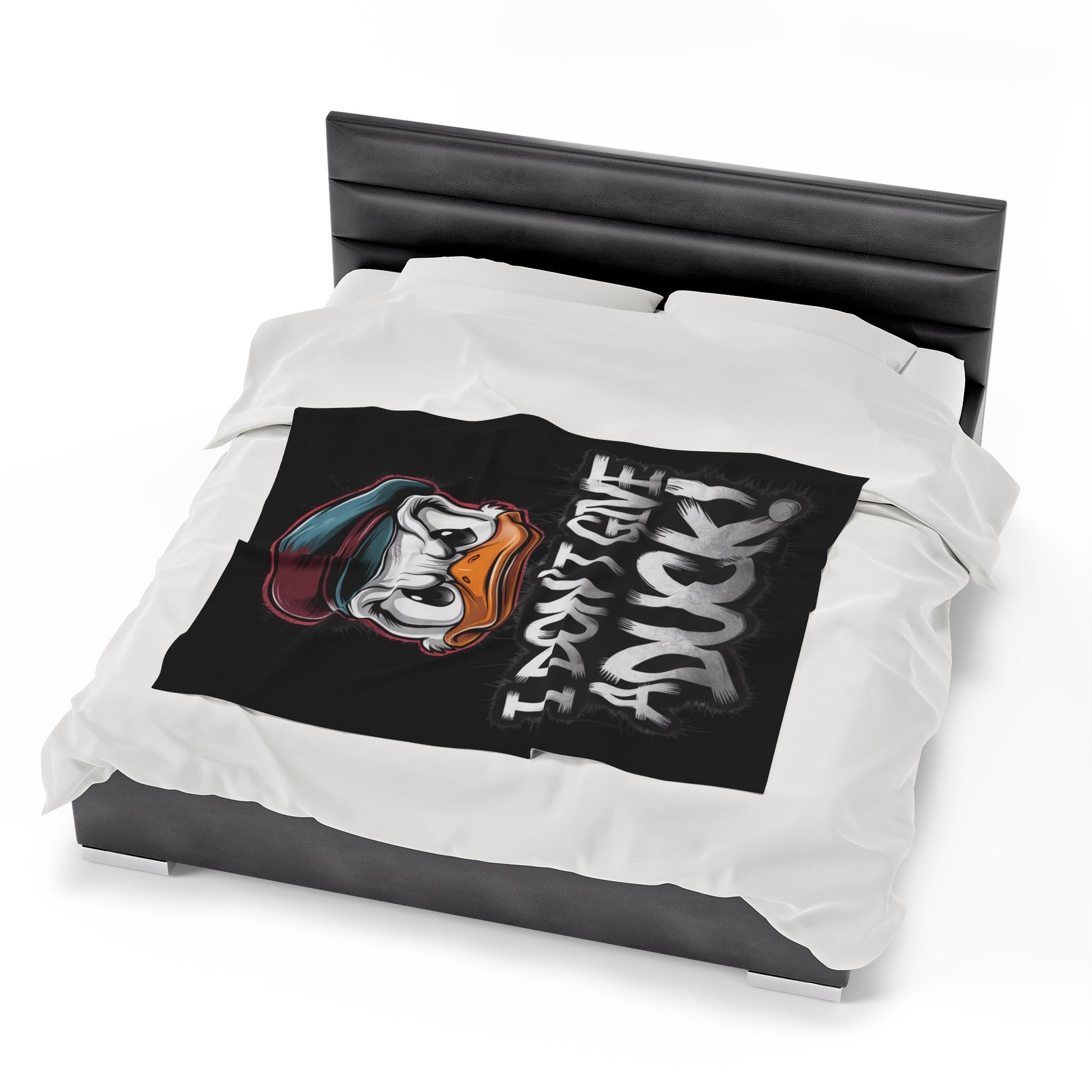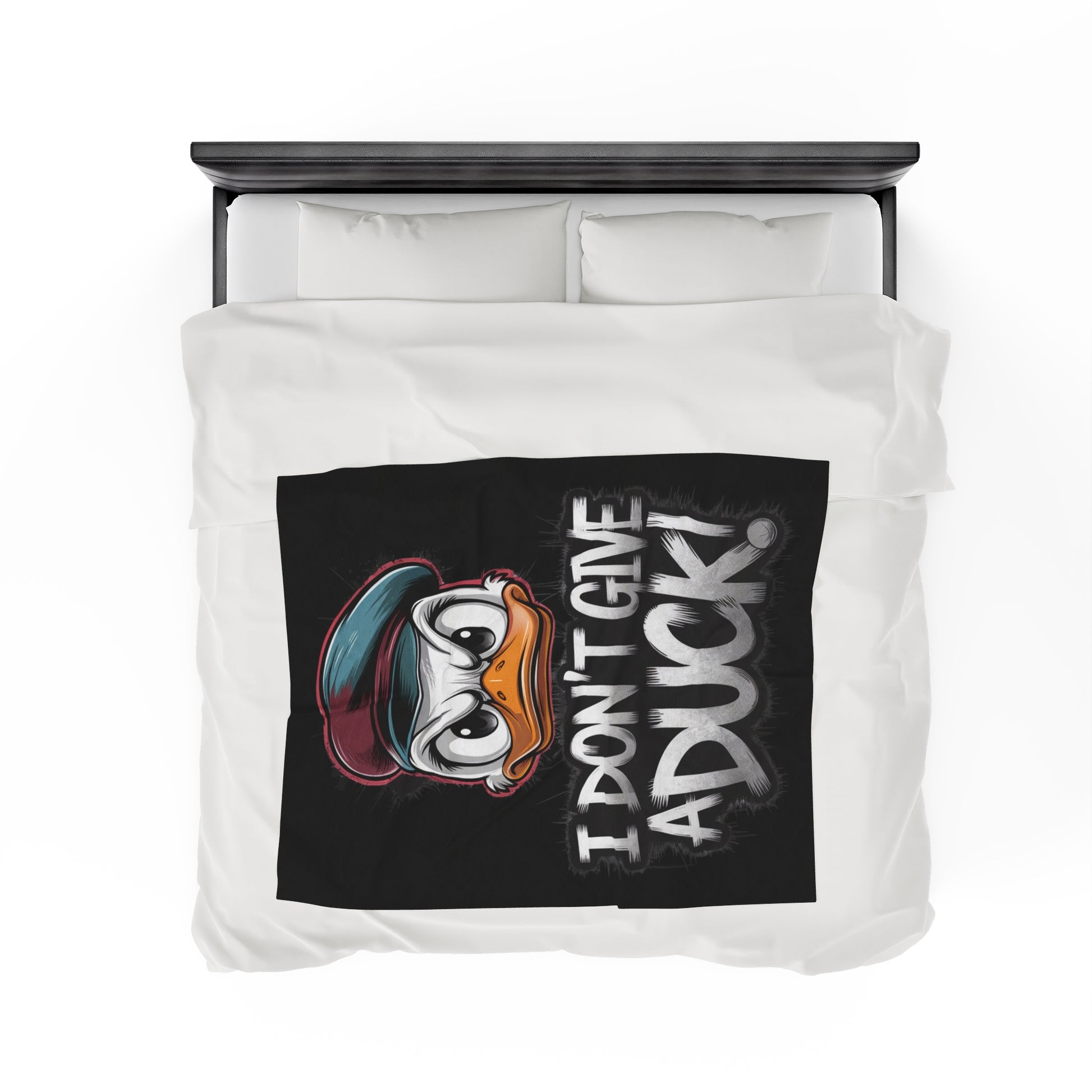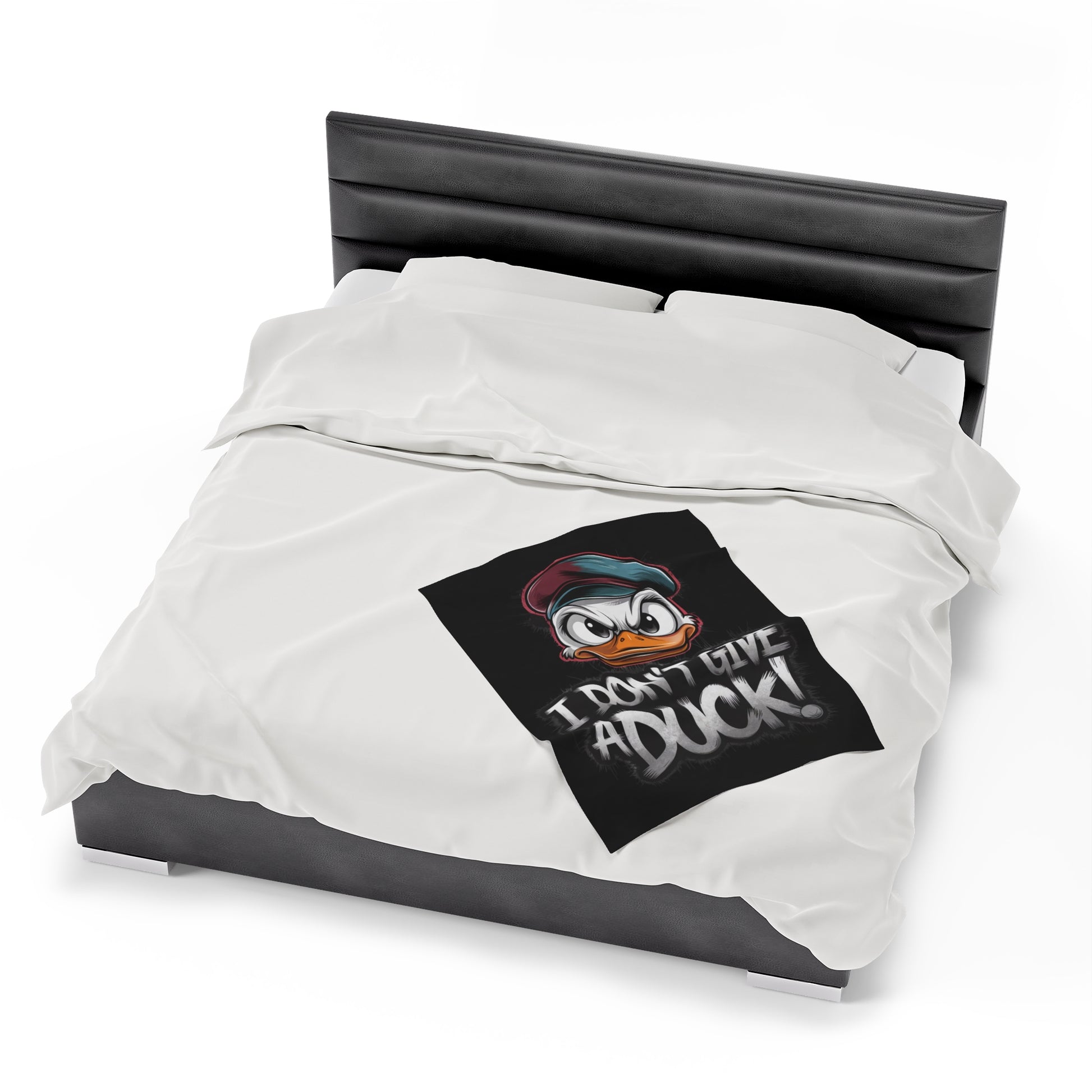Snuggle up with a dash of sass and attitude with our "I Don't Give a Duck!" plush blanket, featuring an adorable yet angry duck. Perfect for adding a touch of humor and whimsy to your home decor.