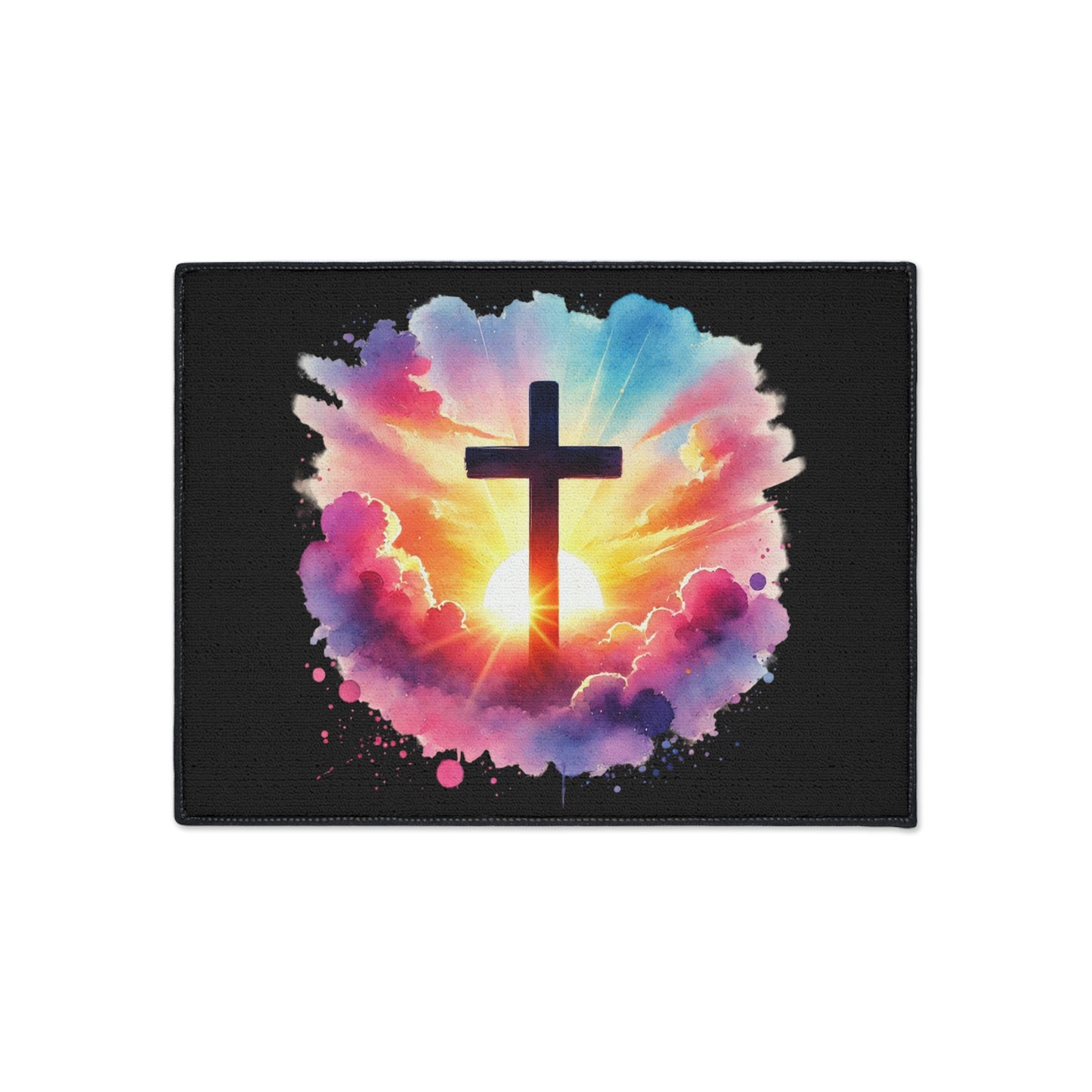 Inspirational Christian Heavy Duty Floor Mat - Sunrise Cross Design