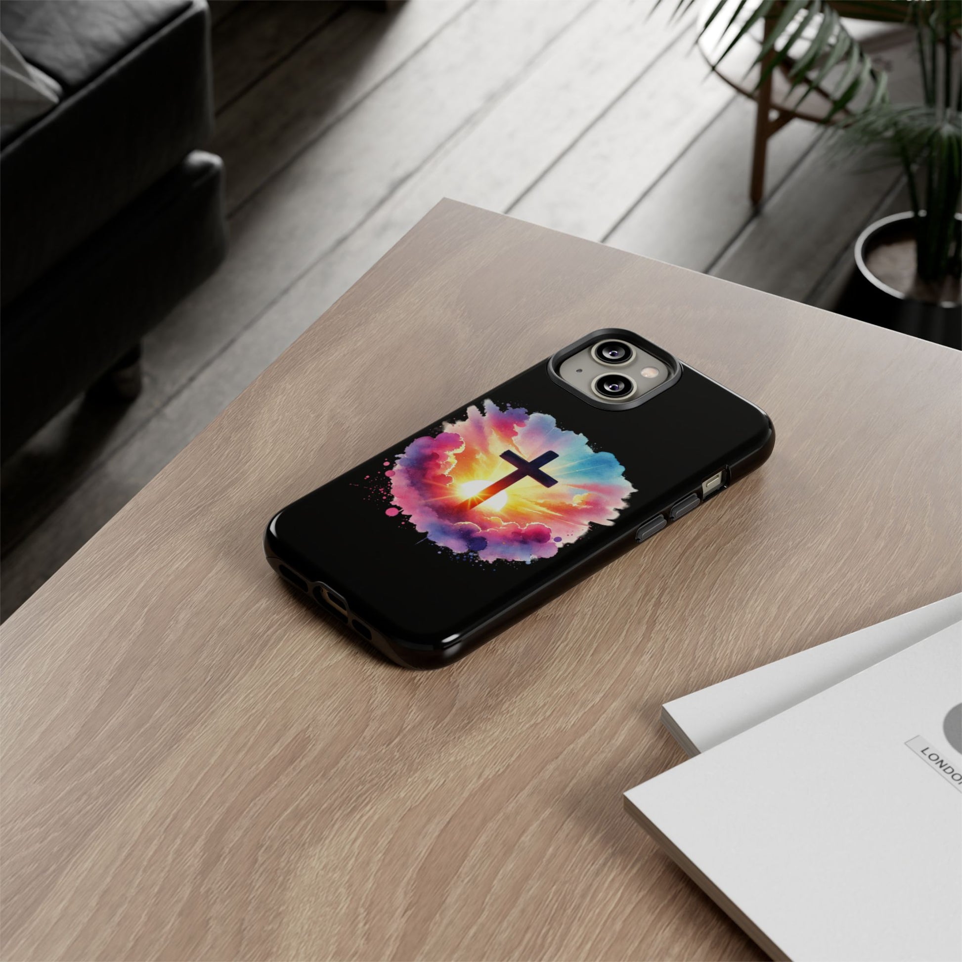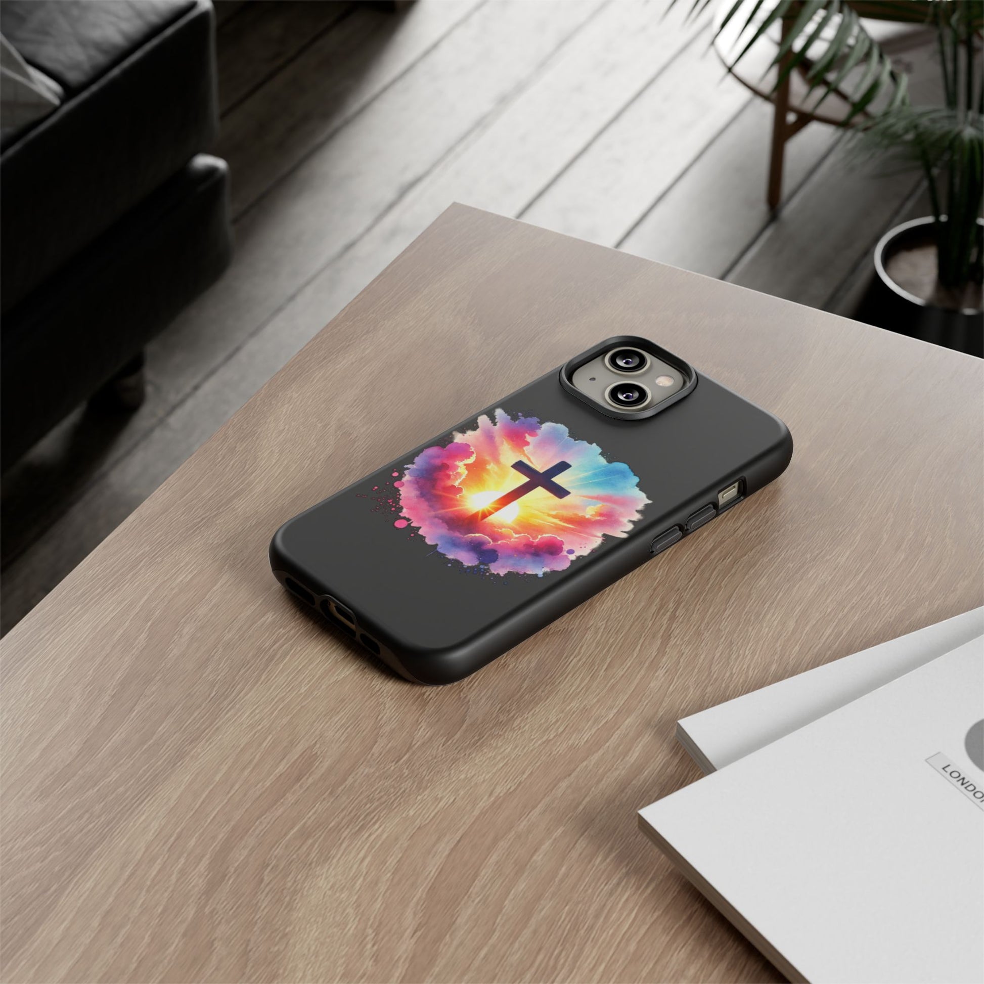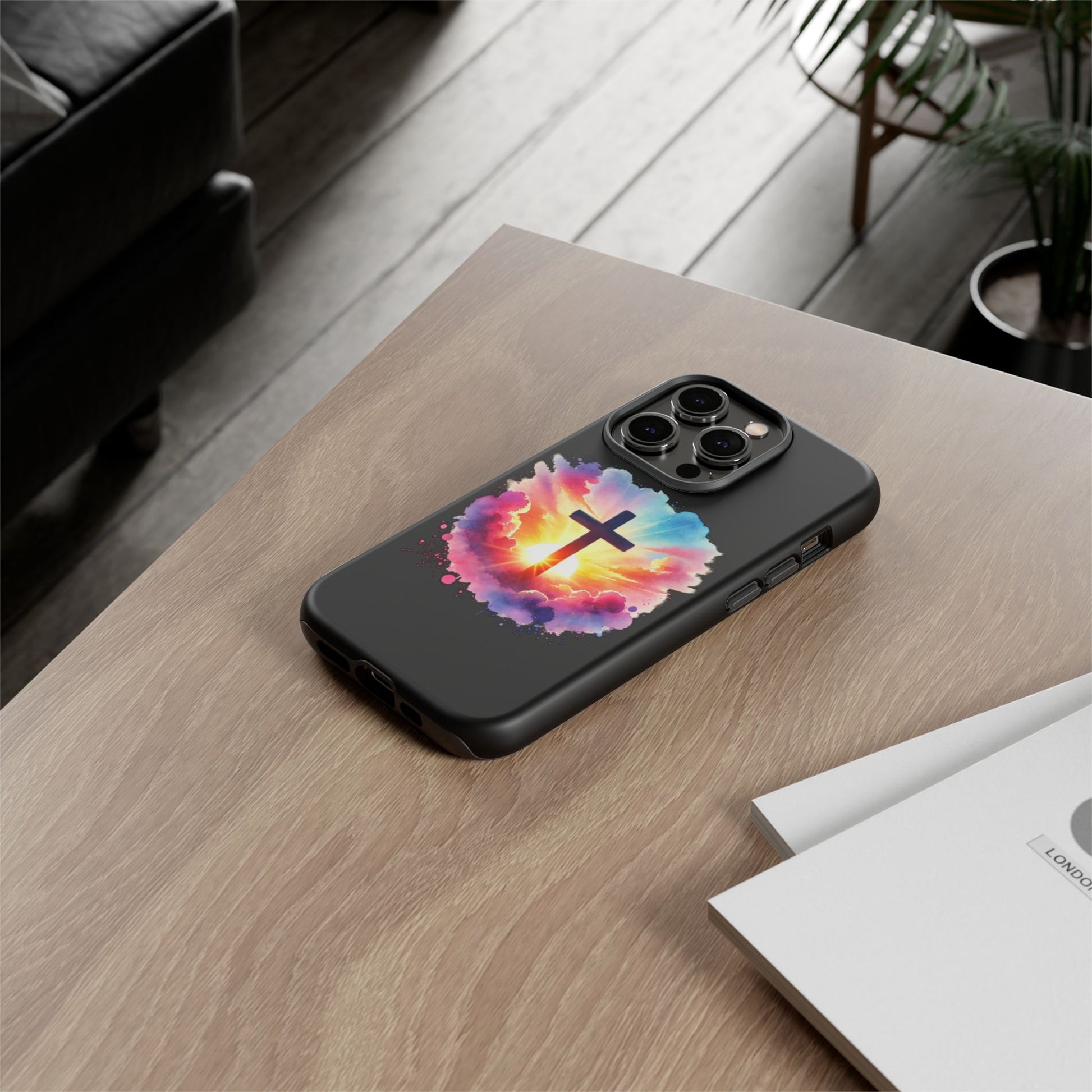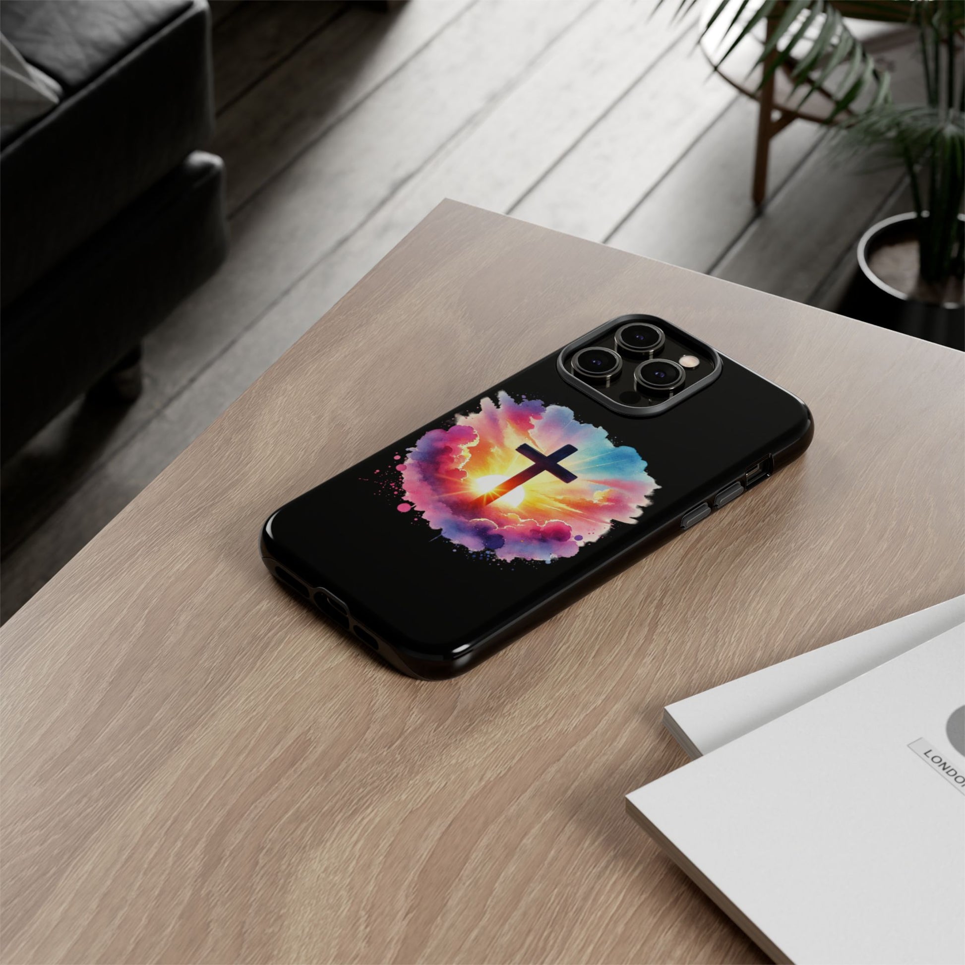 This inspirational iPhone case features a stunning watercolor design centered around a bold cross, symbolizing faith, hope, and spiritual strength. Crafted for durability and style, this case is perfect for those who want to carry their beliefs with them while protecting their device. Its vibrant colors and artistic composition make it a meaningful accessory that stands out in any setting.