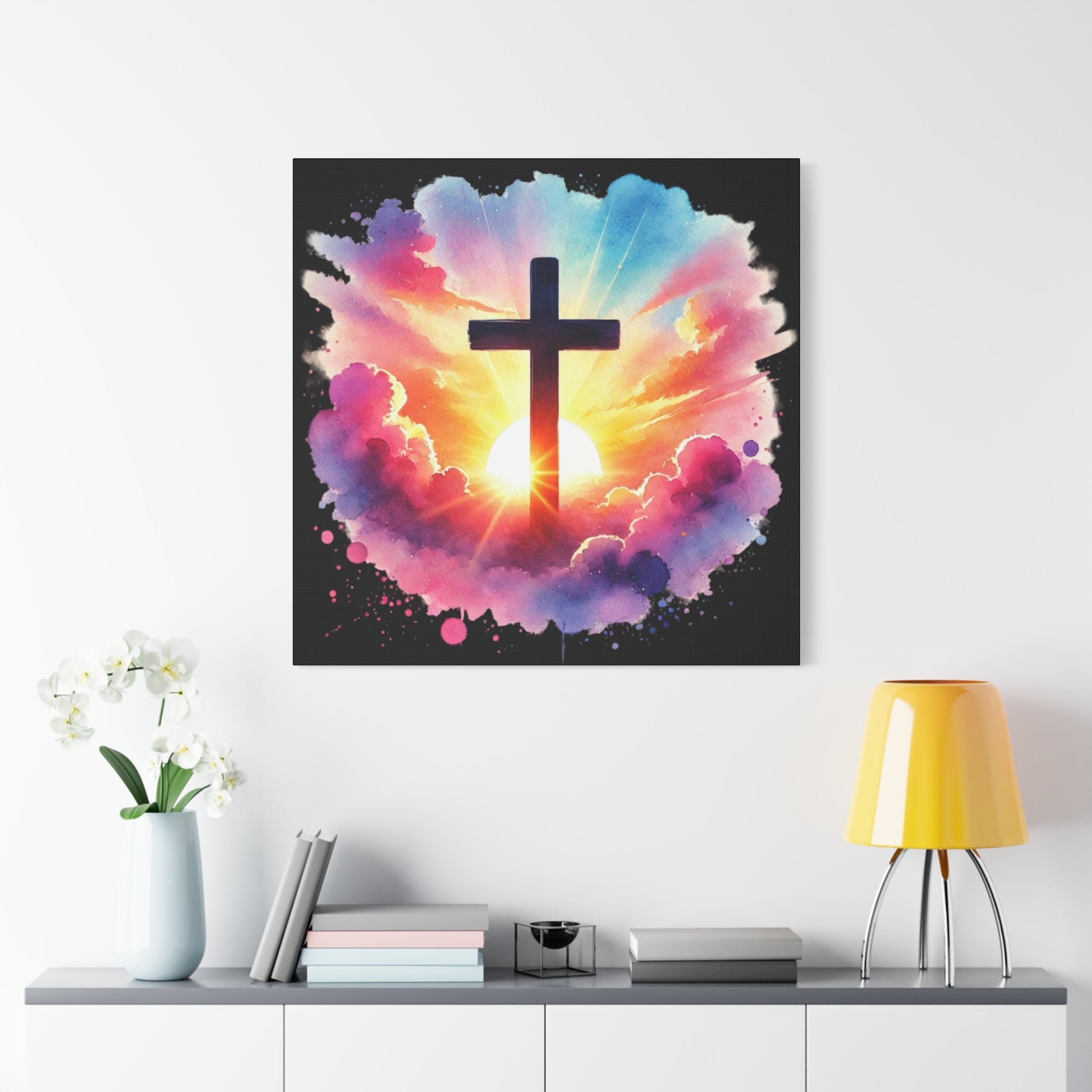 Elevate your home decor with this stunning Cross Watercolor Canvas Art. Featuring a vibrant blend of colors and a bold silhouette of the cross, this piece symbolizes hope, faith, and serenity. Perfect for living rooms, bedrooms, or prayer spaces, this artwork adds a touch of inspiration and modern elegance to any wall.